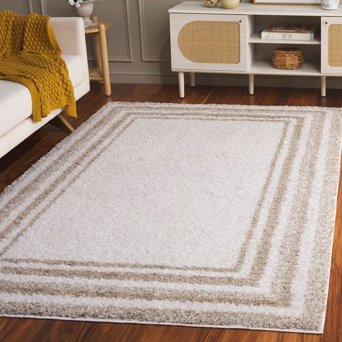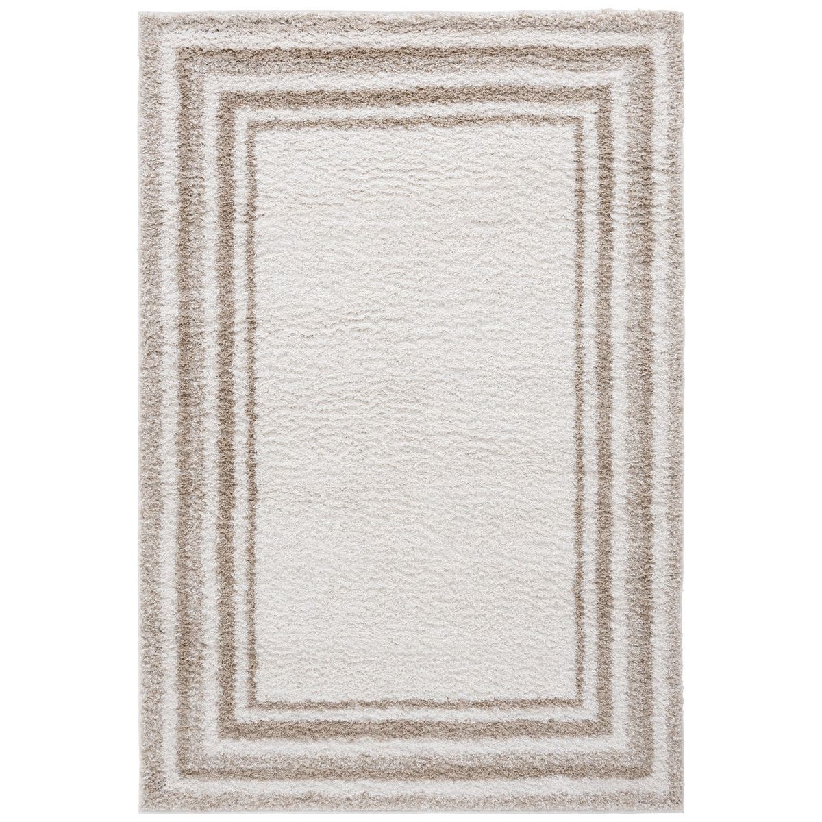Border Stripe Shag BSP251A Ivory Beige rug from our exclusive collection. Elevate your living space with this modern and luxurious piece that boasts a velvety pile height. Crafted with precision machine weaving, these shag rugs are designed to minimize shedding, ensuring easy maintenance for long-term enjoyment.