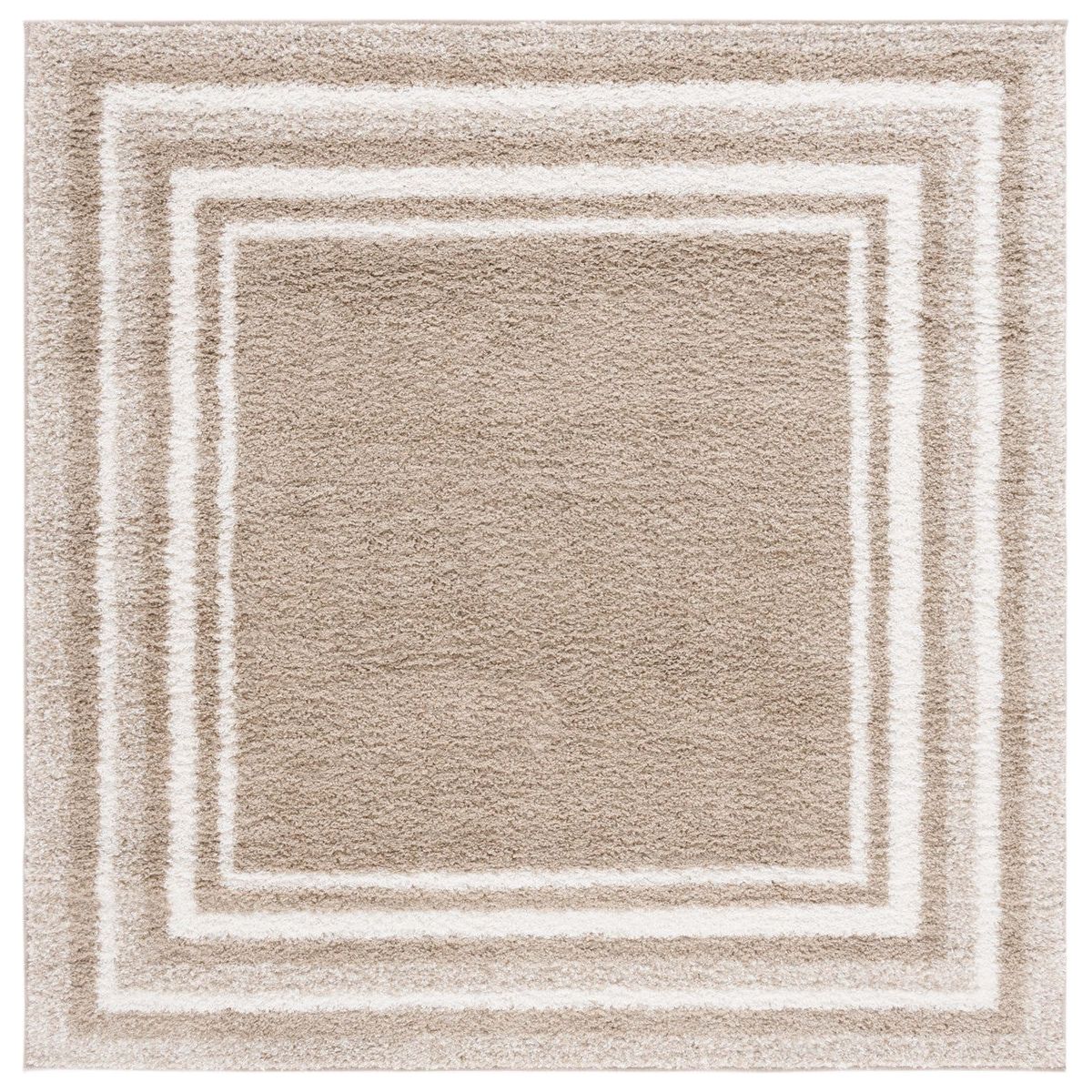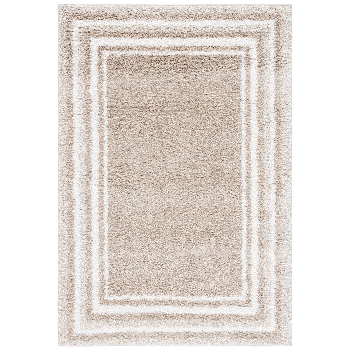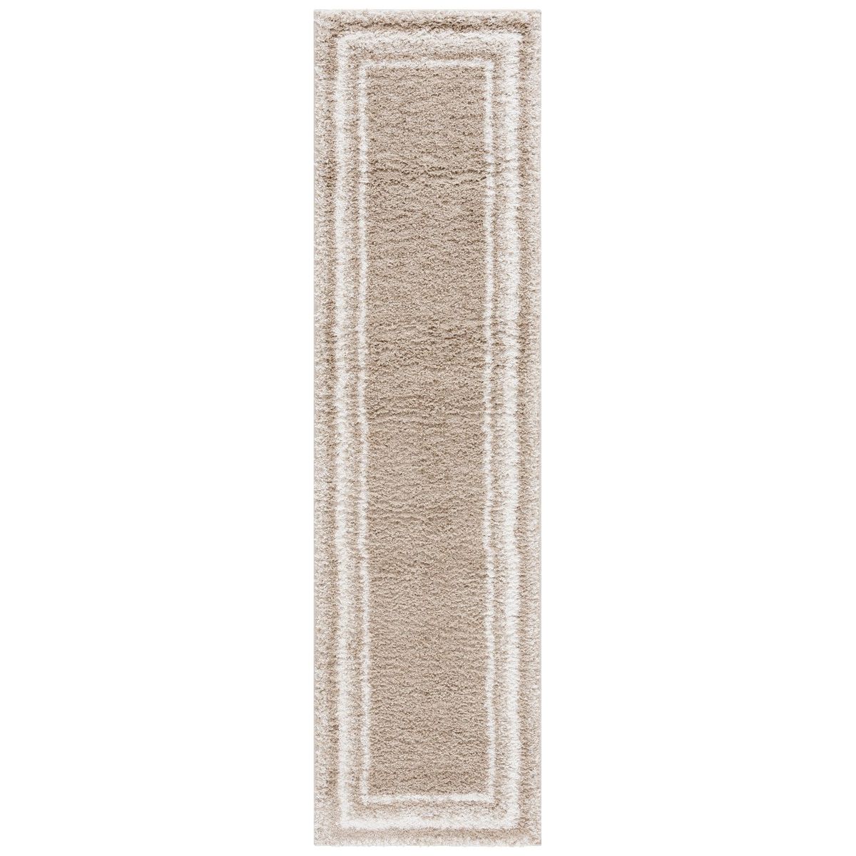 Border Stripe Shag BSP251B in a stylish Beige Ivory colorway. Elevate your decor with this collection that seamlessly blends modern simplicity with luxurious pile height. Crafted with meticulous machine weaving, these shag rugs are designed to minimize shedding and ensure easy maintenance. The linear patterns of the rugs add a touch of refined elegance to any space, making them perfect for those seeking a contemporary and sleek aesthetic.