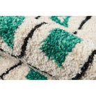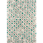 Bungalow Bun 2 Green - a contemporary area rug collection that effortlessly blends graphic geometric patterns and a bohemian color palette. Each rug in this eclectic series features unique designs such as freeform diamonds, tribal prints, colorful hexagons, and stripes, reminiscent of retro styles from decades past. Crafted with plush polyester fibers and tufted construction, these rugs offer a soft and luxurious feel underfoot. Add a touch of casual chic to your interior floors with this fun accent rug assortment that exudes vintage vibes and modern appeal.