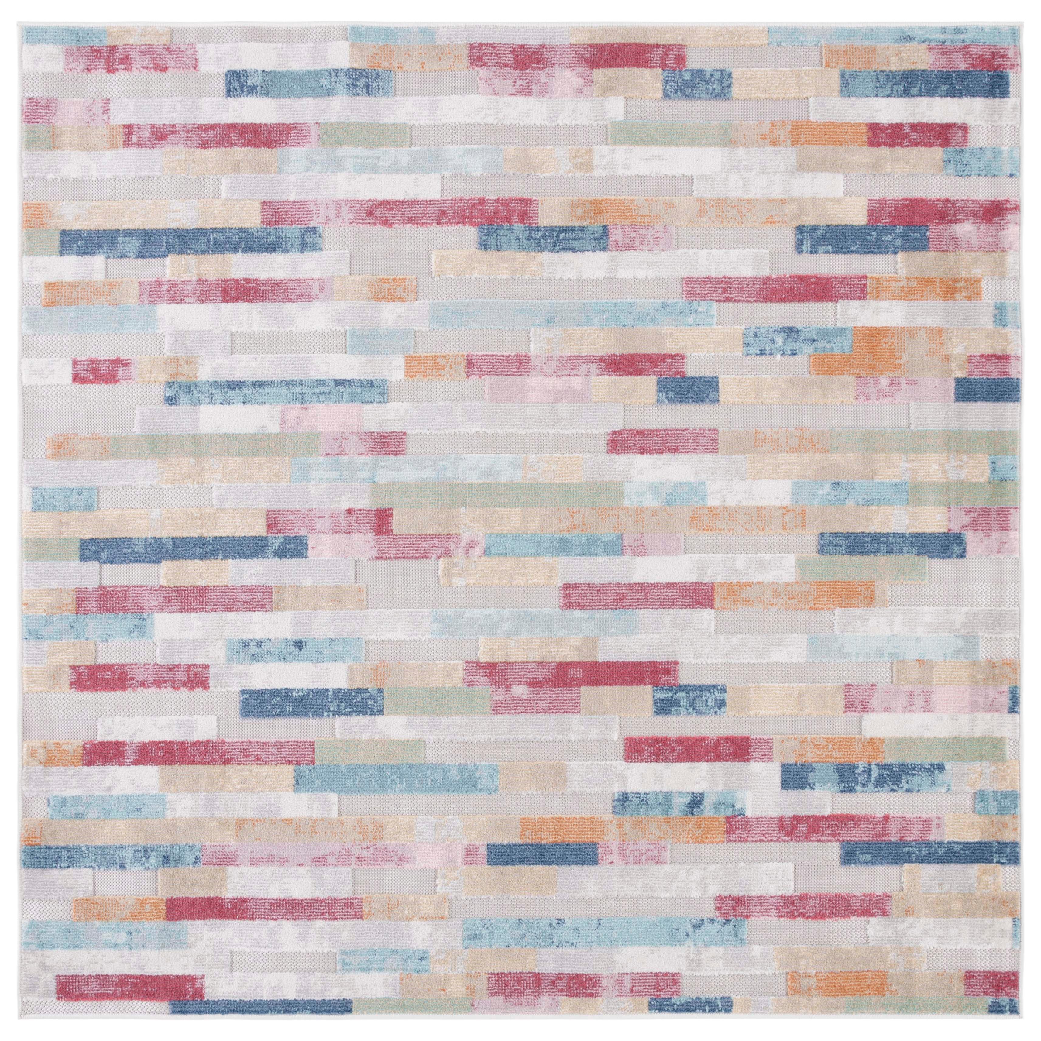 Cabana CBN531Q indoor/outdoor rug, a perfect floor covering for high-traffic areas in your home or outdoor spaces. With its playful florals, lush vines, and geometric patterns, this rug brings coastal vibes to your deck, porch, or patio. The rug has a sleek thickness of approximately 0.25 inches.