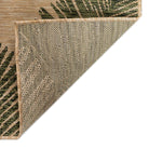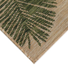 Carmel Palm Green area rug, a stunning addition to your indoor or outdoor space. This flatweave rug boasts a warm tan background adorned with elegant palm leaves in a deep green hue, offering a sophisticated twist on tropical decor. Crafted in Turkey from 100% polypropylene, this rug is Power Loomed to create intricate multi-toned designs with a high-quality finish.