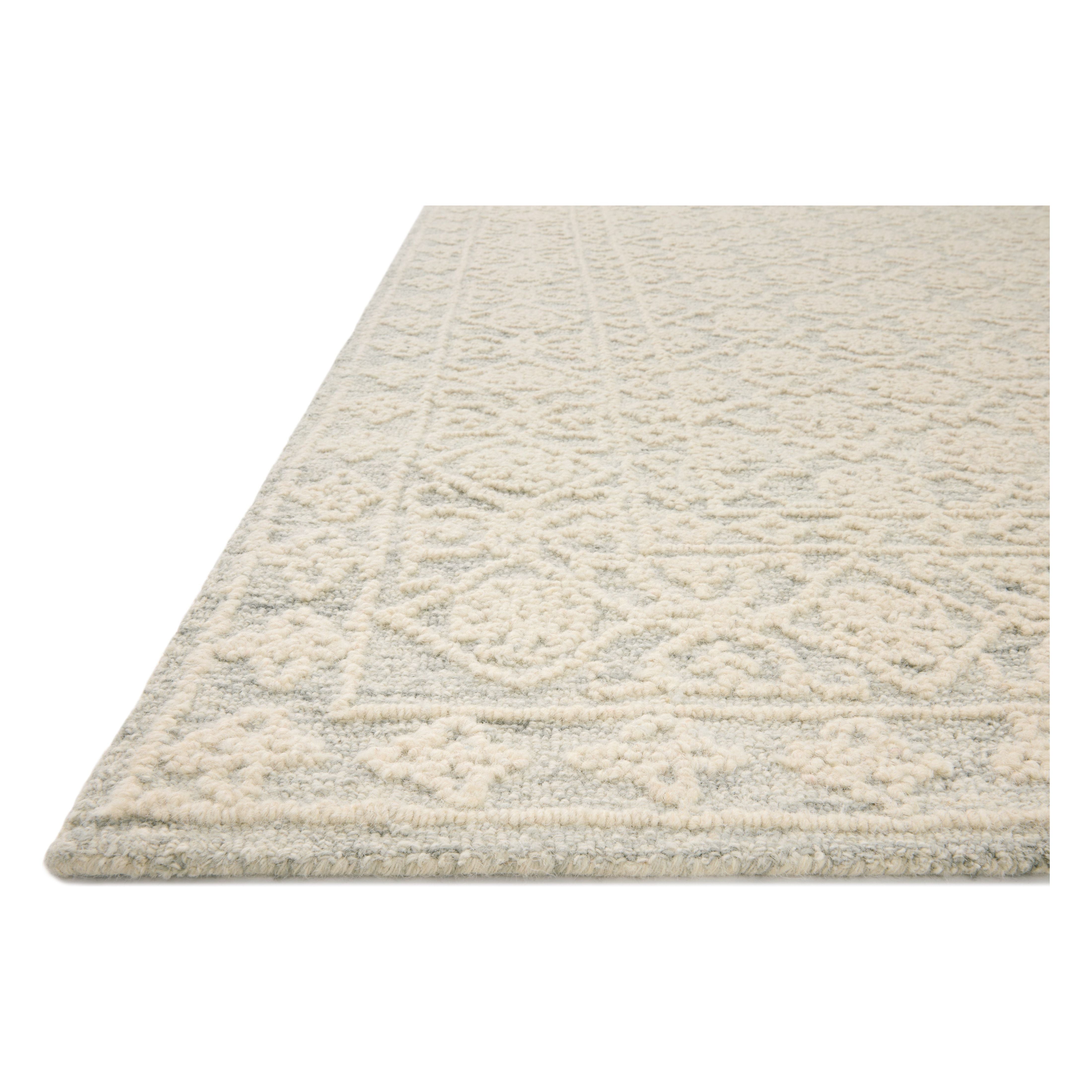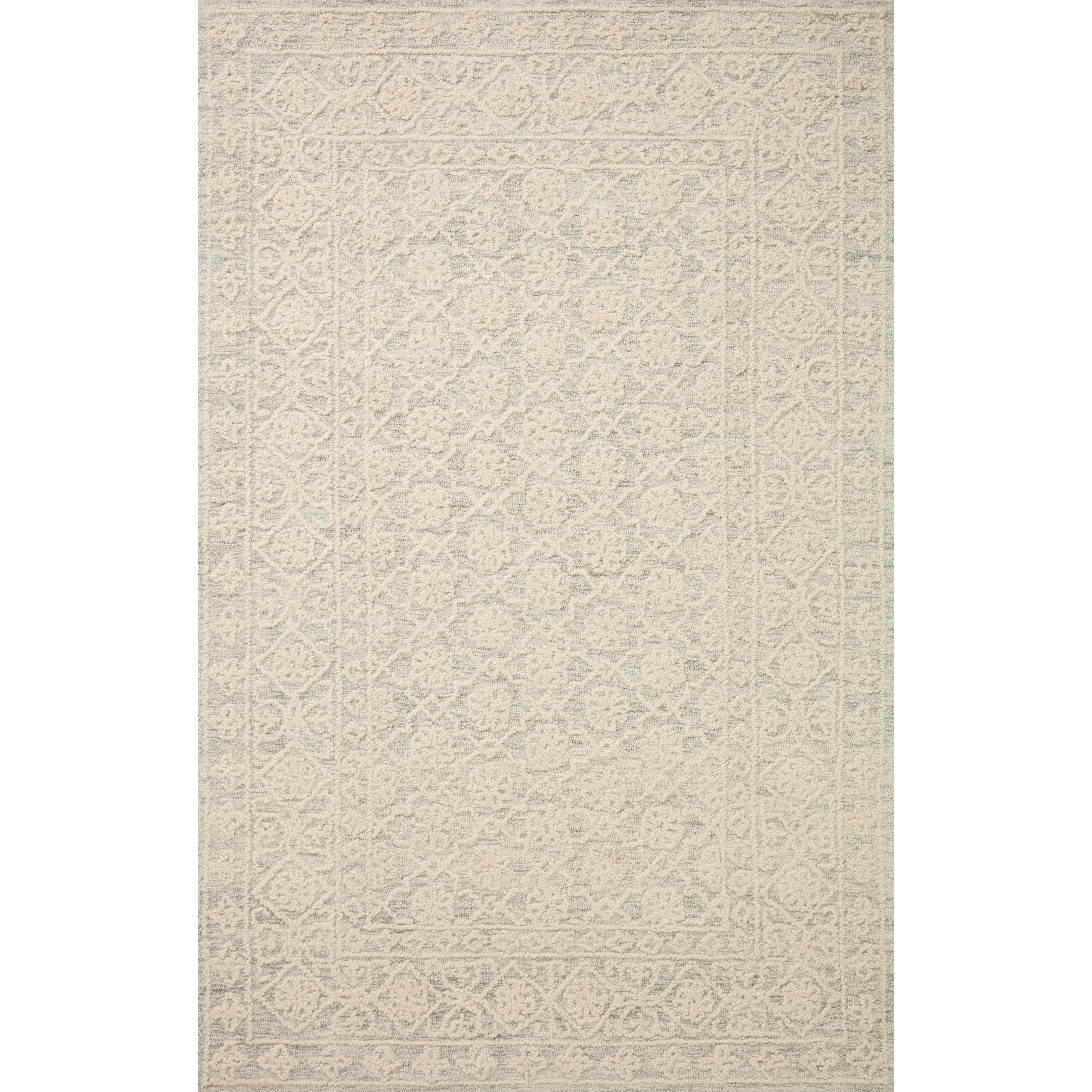 elegant Cecelia Cec 01 Mist Ivory rug, hand-tufted with luxurious 100% wool pile in India. The Cecelia Collection stands out with its striking visual depth created by a tone-on-tone pattern. This rug features five beautiful color variations of a classic motif, providing versatile options for any space seeking a timeless touch.