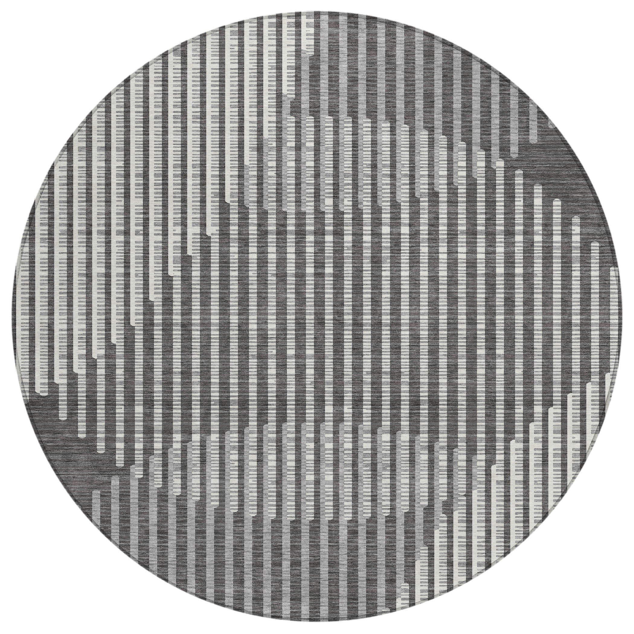 Our stylish area rug showcases an engaging pattern of circles and vertical lines, offering a transparent effect that enhances any room. The transitional design with its circular elements adapts beautifully to both contemporary and classic settings. Engineered for durability, this rug is UV stabilized, features an ultra-thin construction for ease of use, and is machine-washable, ensuring it stands up to the rigors of a busy, pet-friendly home.