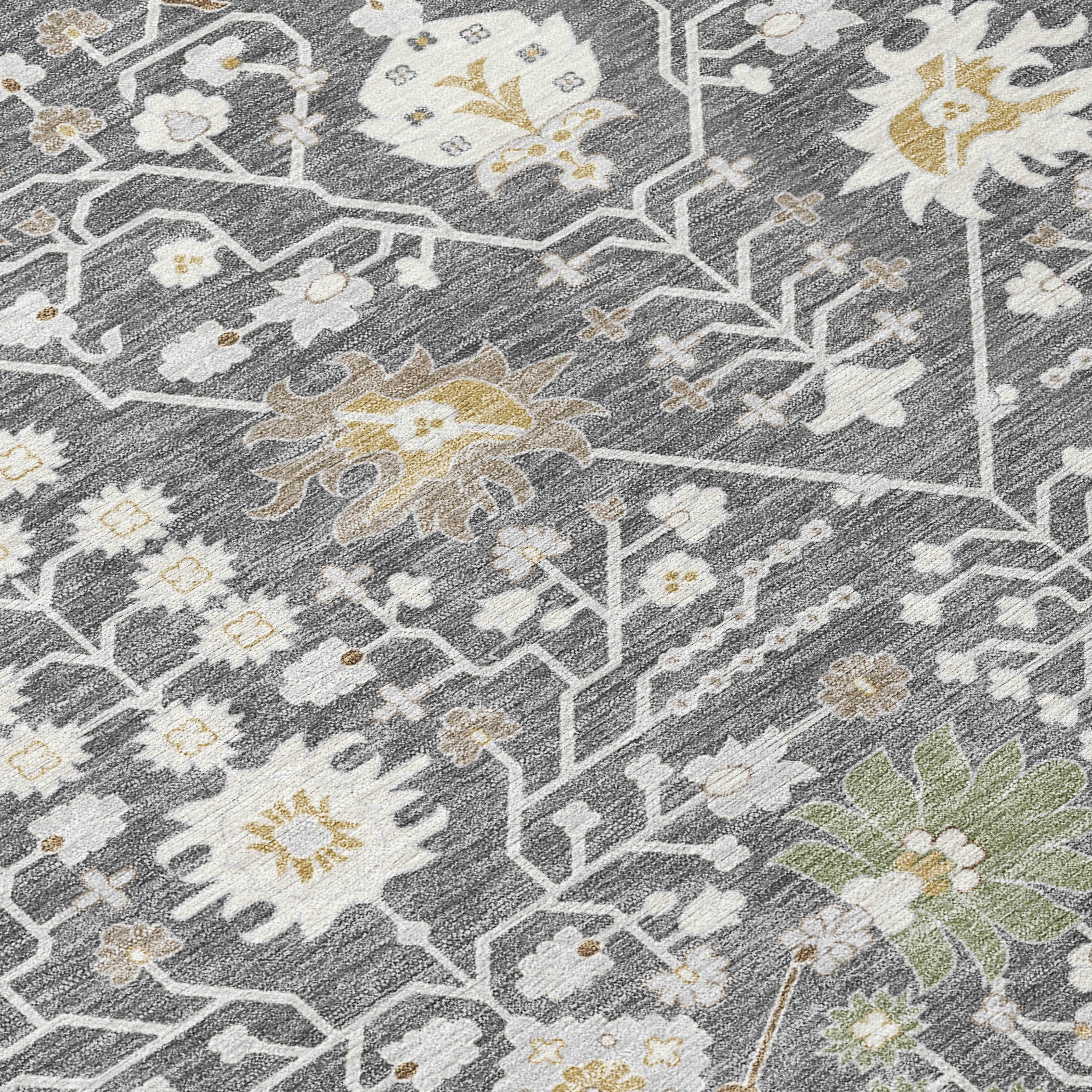Detailed Colors: Charcoal, Ivory, Green, Taupe, Gold