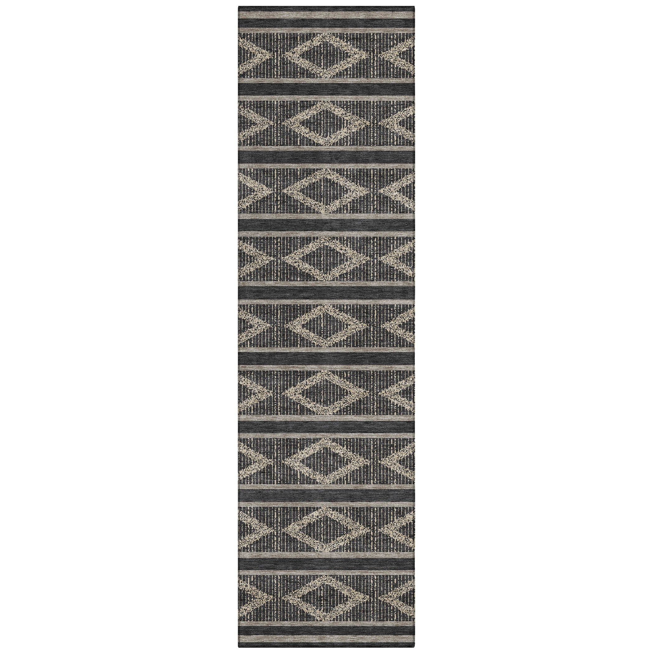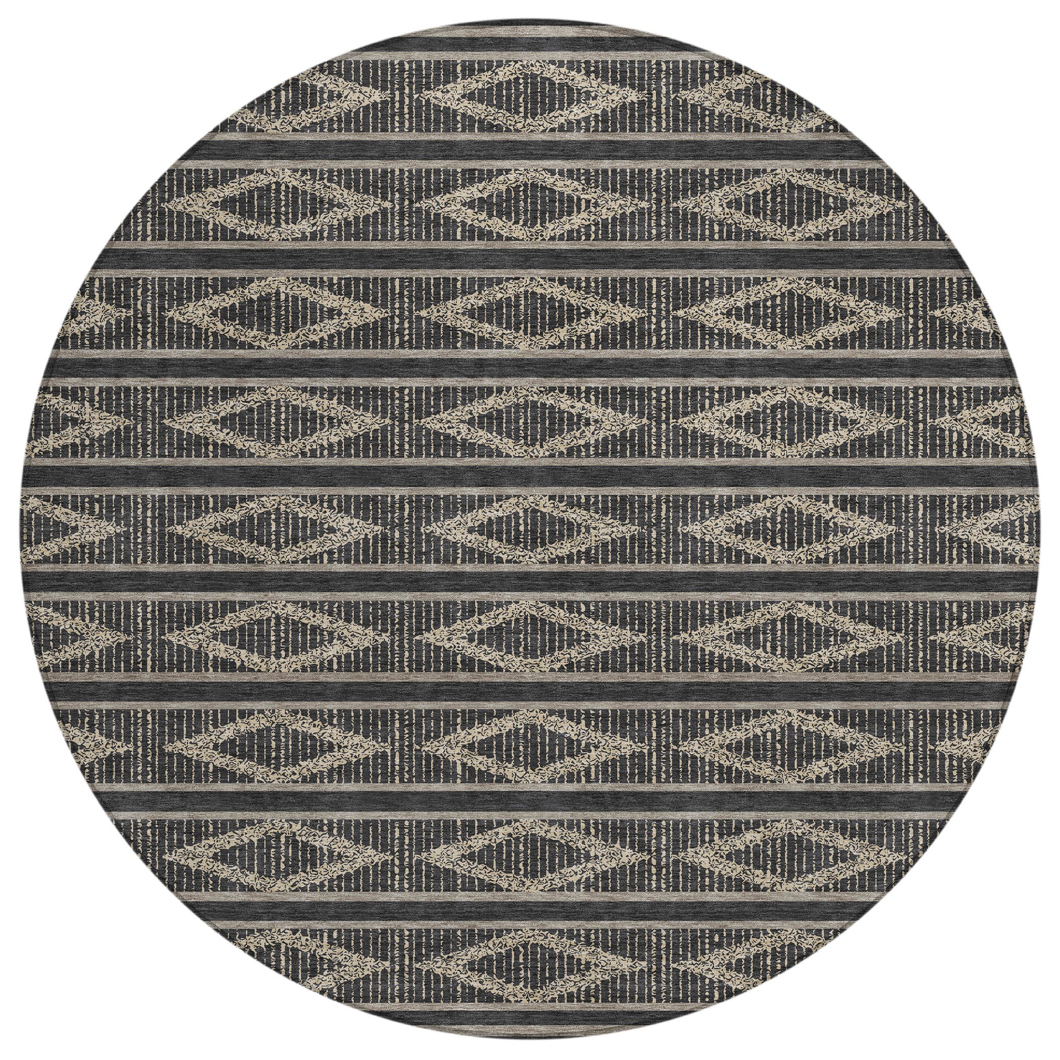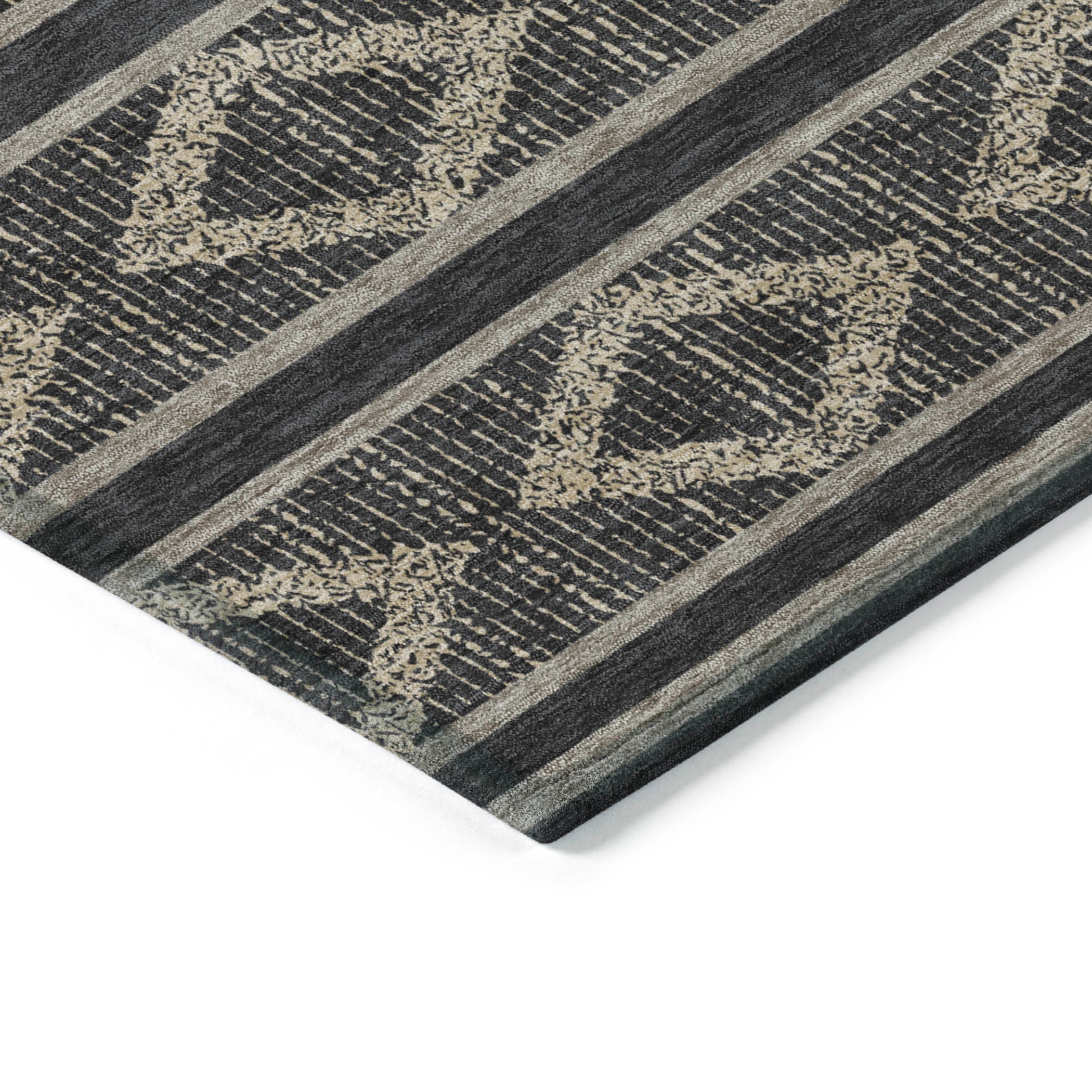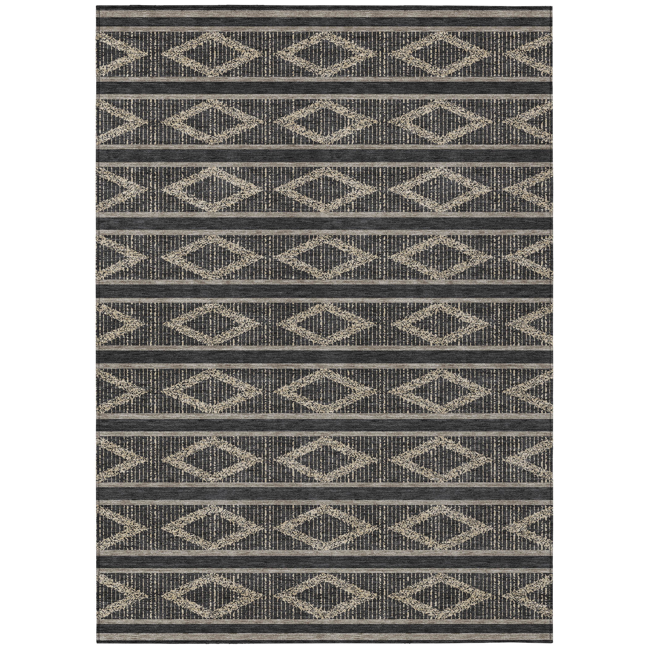 Discover the perfect blend of style and functionality with our transitional area rug, adorned with stripes that incorporate a subtle diamond pattern for a geometric look. This design seamlessly fits into both contemporary and traditional settings, enhancing your home with its elegant lines. UV stabilized for use in any environment, ultra-thin for effortless placement, and machine-washable for easy care, this rug is ideal for families with pets, offering both beauty and durability.