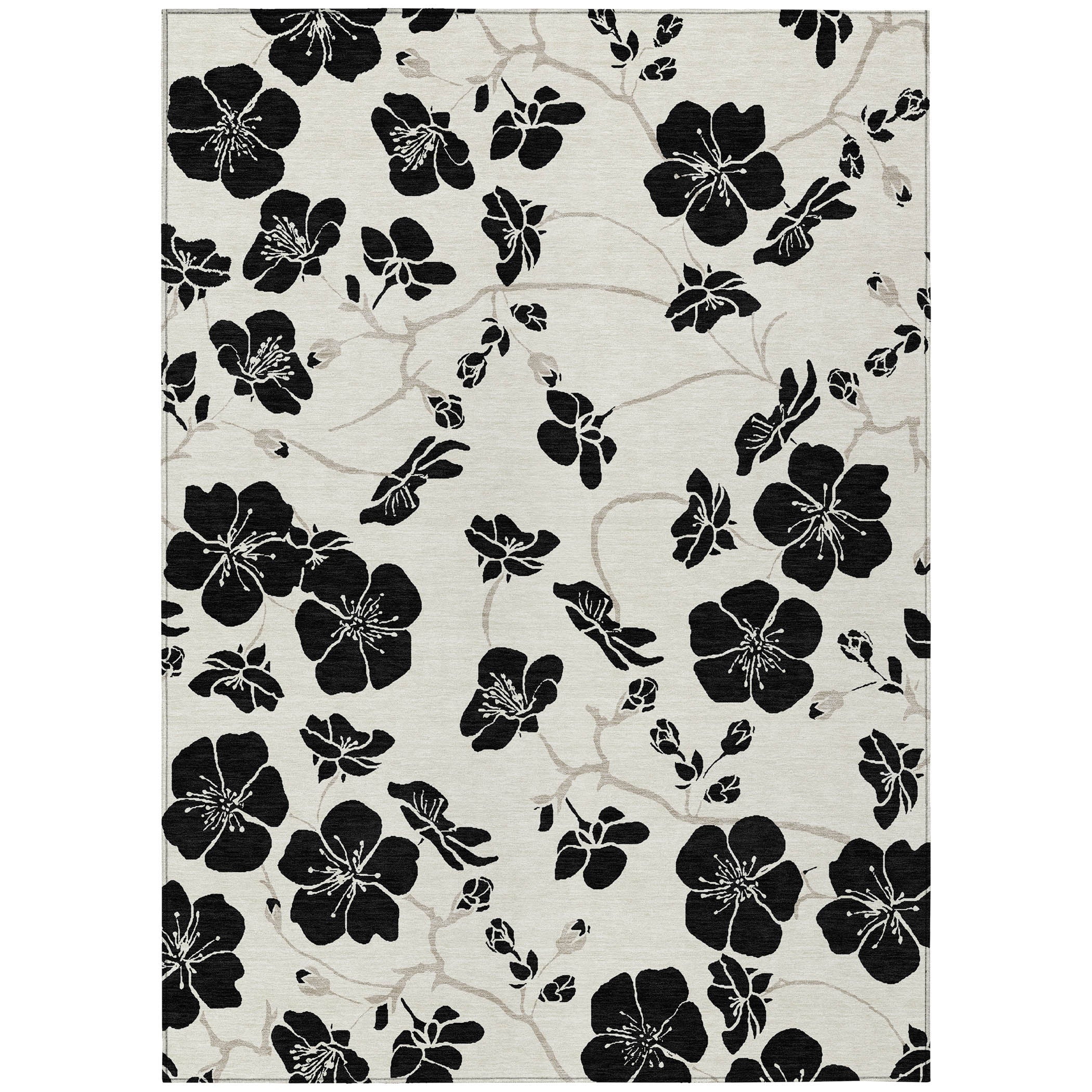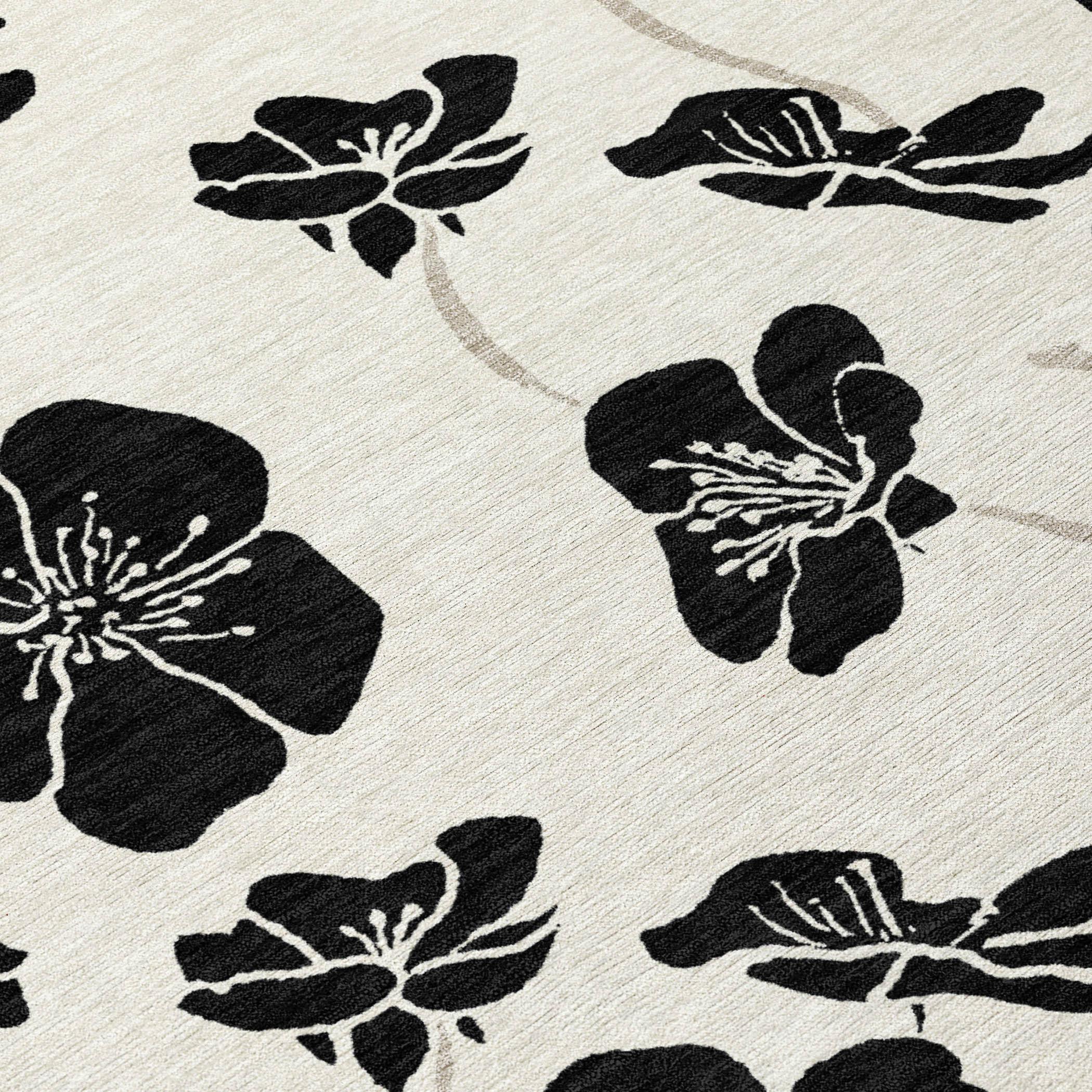 Elevate your home decor with our elegant area rug that showcases a dynamic floral pattern with differently sized petals, designed to simulate movement and add vitality to your space. This transitional rug seamlessly merges with any decor style, offering versatility and charm. Crafted with UV stabilization, it is perfect for both indoor and outdoor use. Its ultra-thin design means it can fit under doors and furniture easily, and it’s machine-washable, making it a practical choice for families and pet owners.