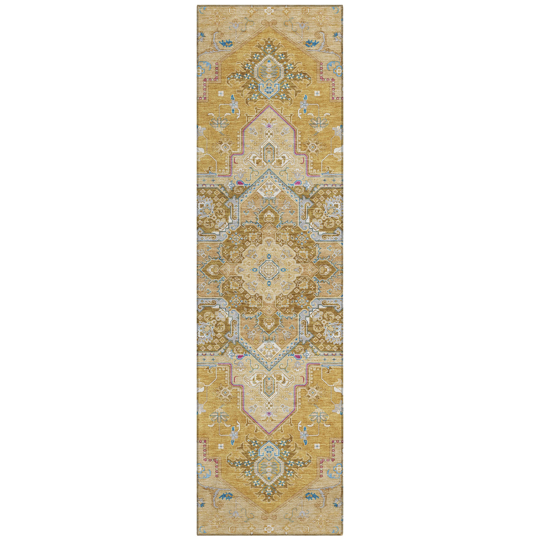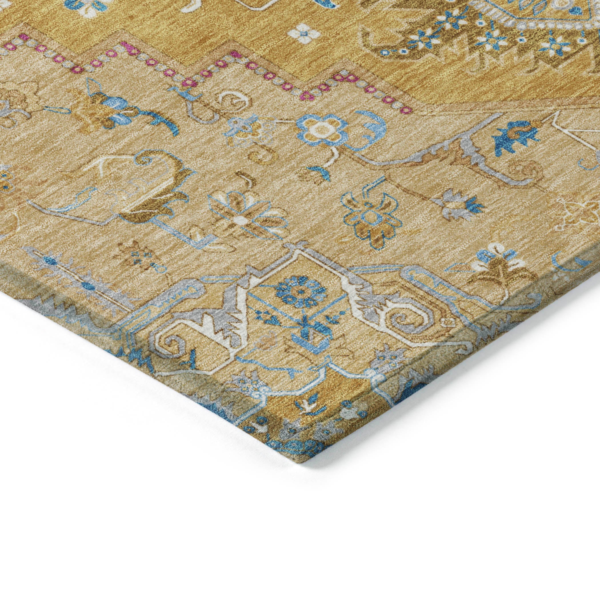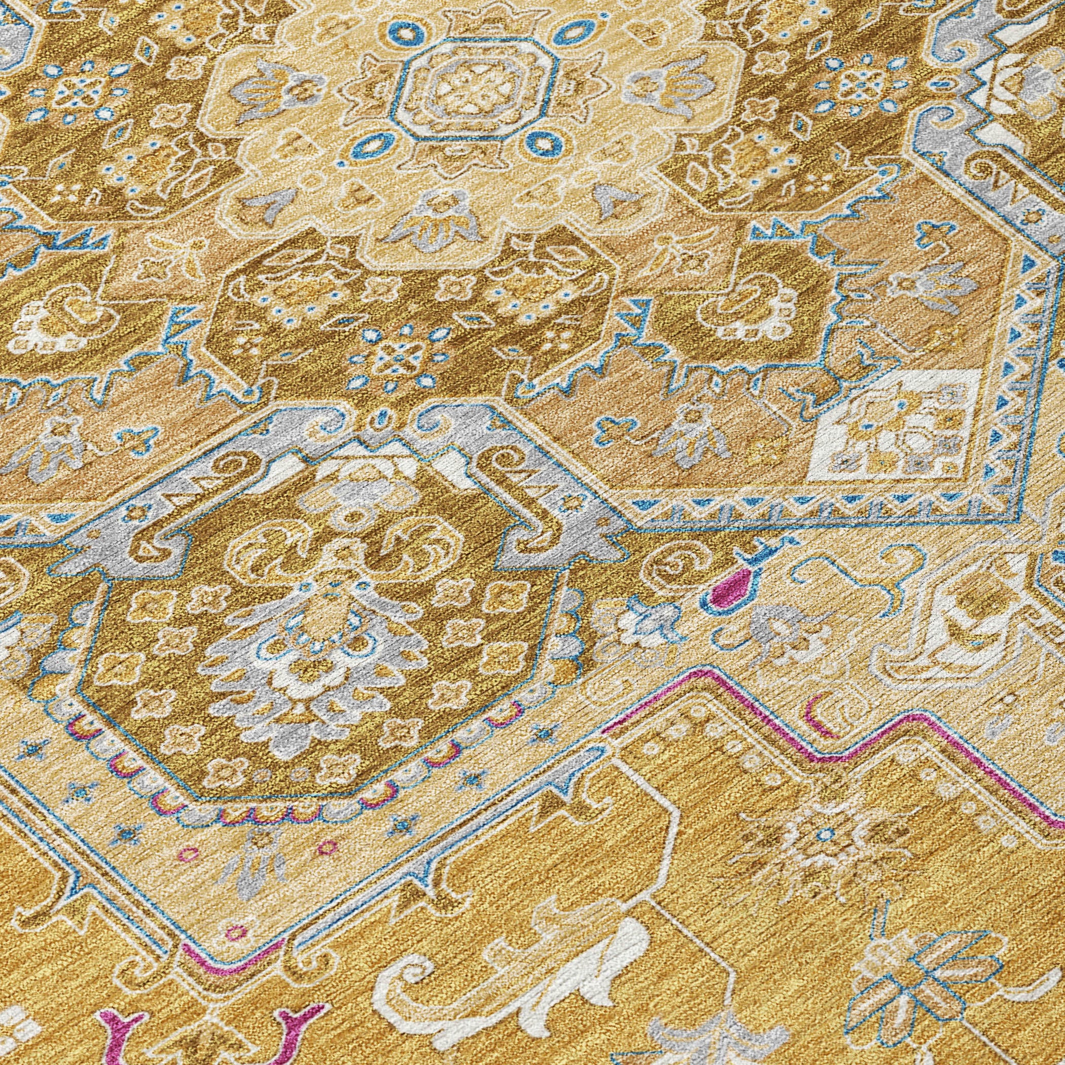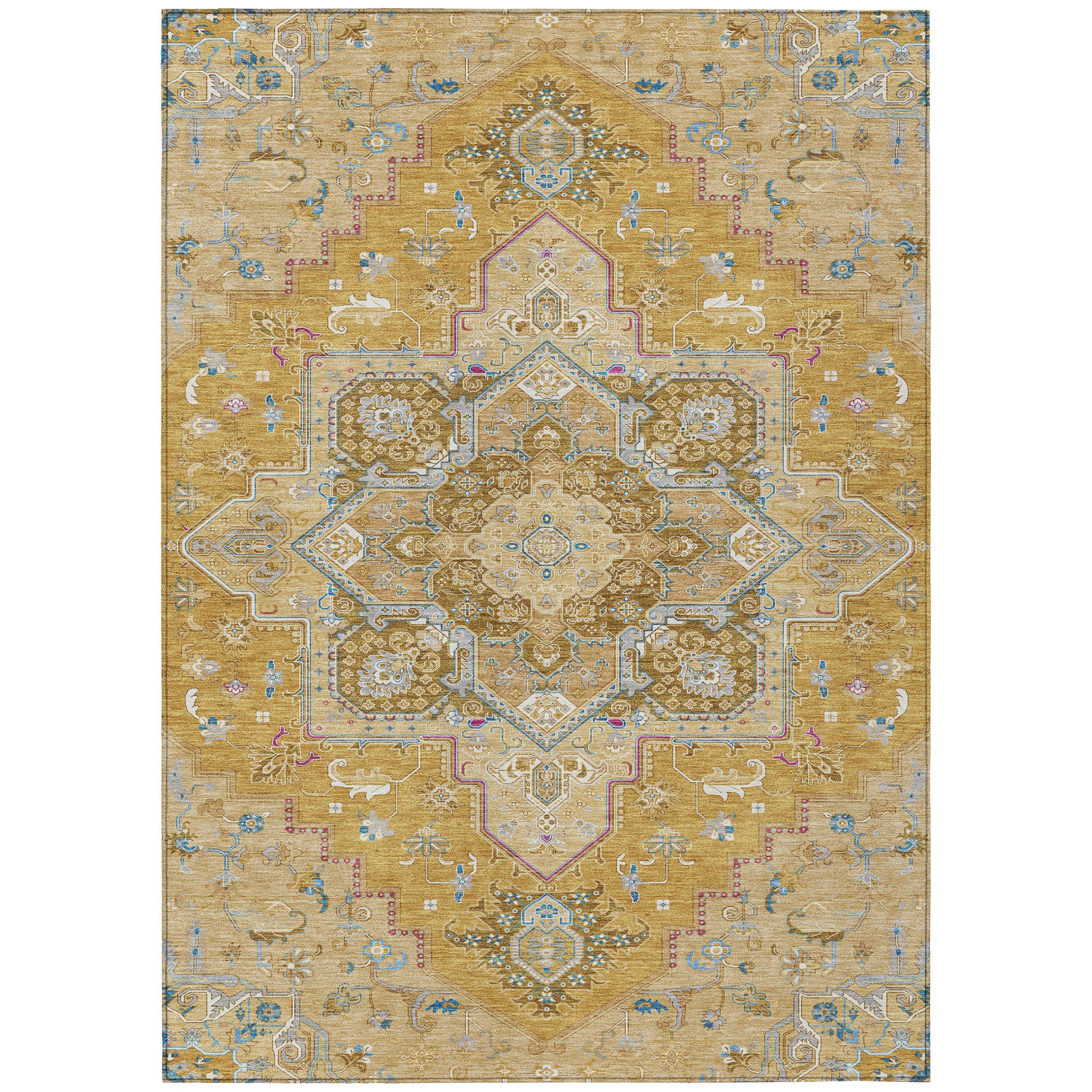 Our area rug boasts a traditional sarouk design complete with a striking center medallion, offering a touch of oriental heritage to your decor. This design not only enhances the aesthetic of your space but also complements any interior style. With UV stabilization, this rug can grace both indoor and outdoor spaces without fading. Its ultra-thin build makes it suitable for any area, and being machine-washable, it caters to the needs of a busy, pet-friendly household.