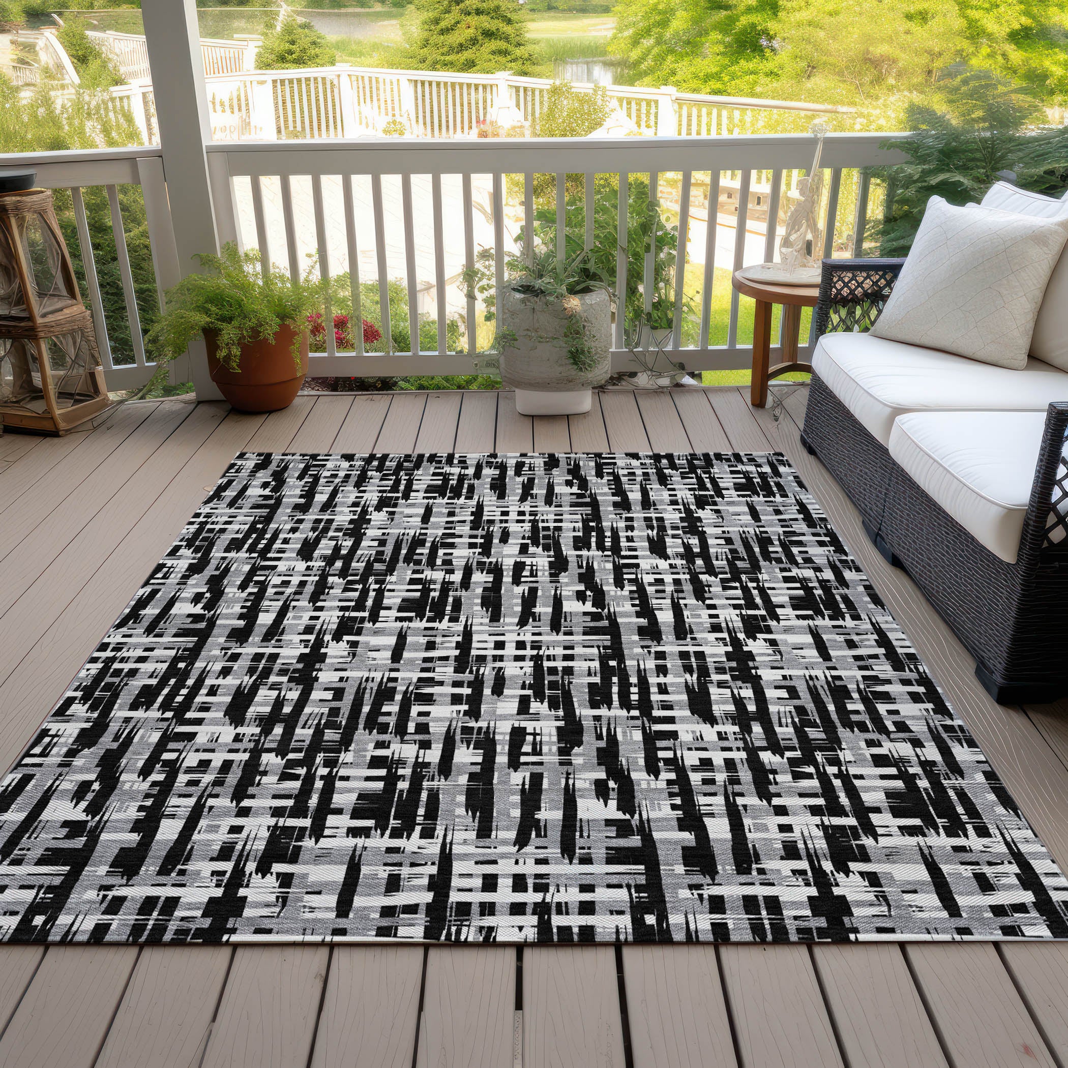 Add a touch of sophistication with our area rug, where crisscrossing lines interlace beautifully, creating a transitional masterpiece. The dynamic lines bring a vibrant energy to any room. Designed for versatility, it is UV stabilized to endure the elements, ultra-thin for seamless integration into any setting, machine-washable for easy maintenance, and built to withstand the demands of a busy, pet-filled household.