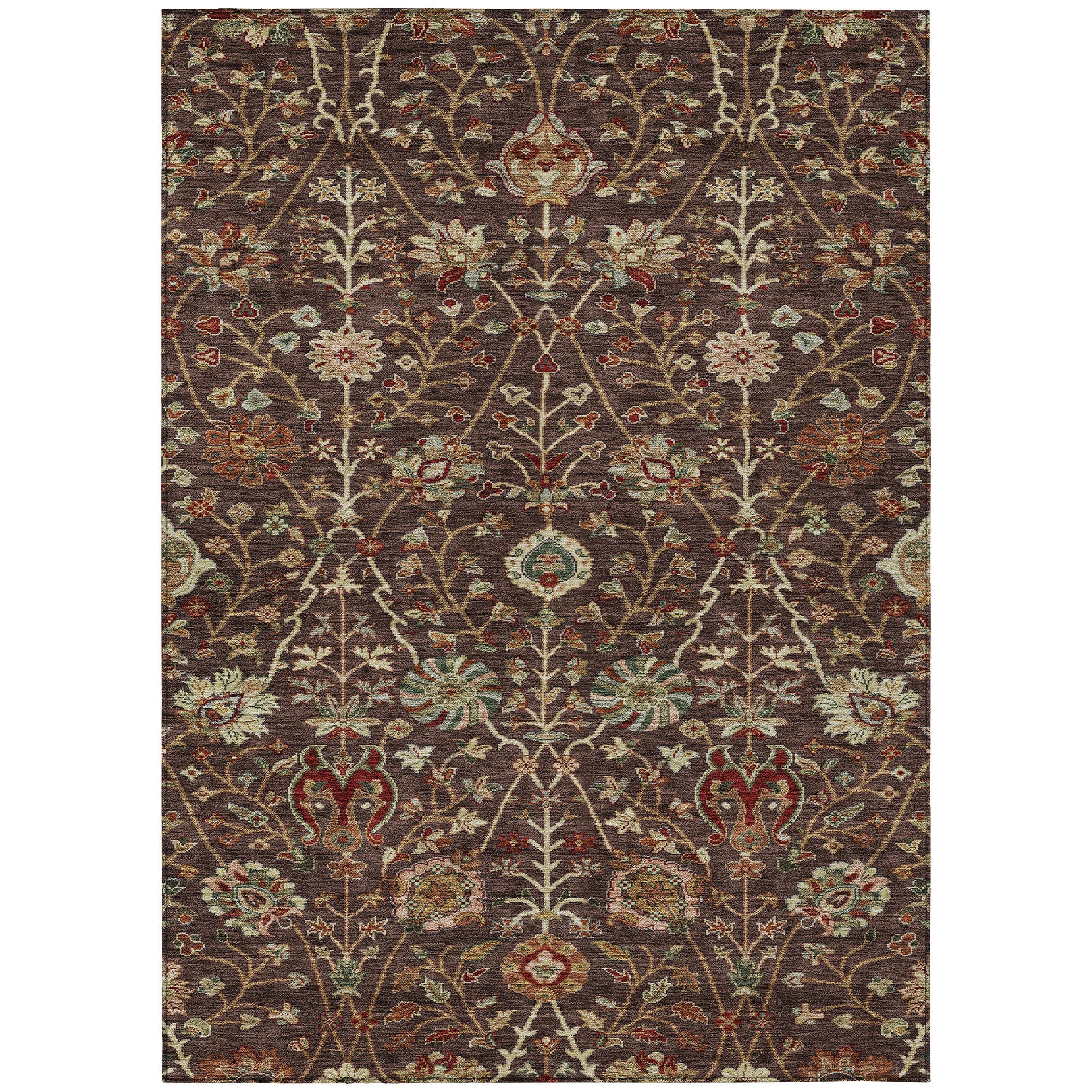 Create a sophisticated ambiance in your home with our area rug, featuring a detailed vine-like pattern and floral accents. This transitional piece blends seamlessly with various decor styles, from traditional to modern. UV stabilized for long-lasting beauty, it is perfect for both indoor and outdoor settings. The ultra-thin design ensures it fits neatly under furniture, and its machine-washable nature makes it easy to maintain, ideal for families and pet owners.