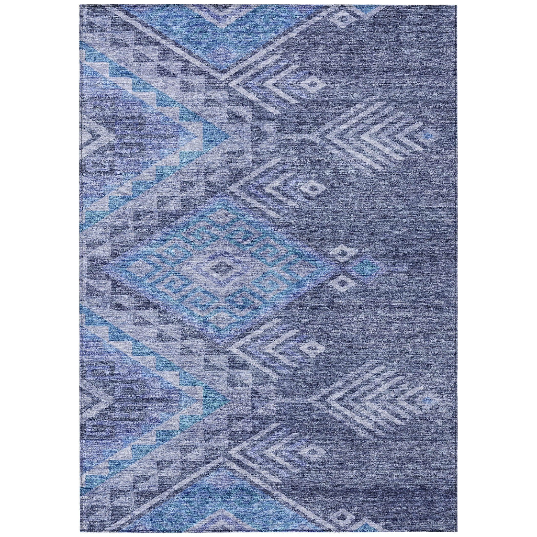 Bring a global sensibility to your home with our area rug, which combines ethnic motifs, diamonds, and featherlike designs in a transitional style. It’s UV stabilized, making it suitable for both indoor and outdoor settings, and its ultra-thin construction ensures it can be placed anywhere with ease. Plus, it's machine-washable, making it a practical addition to any family or pet-friendly household.