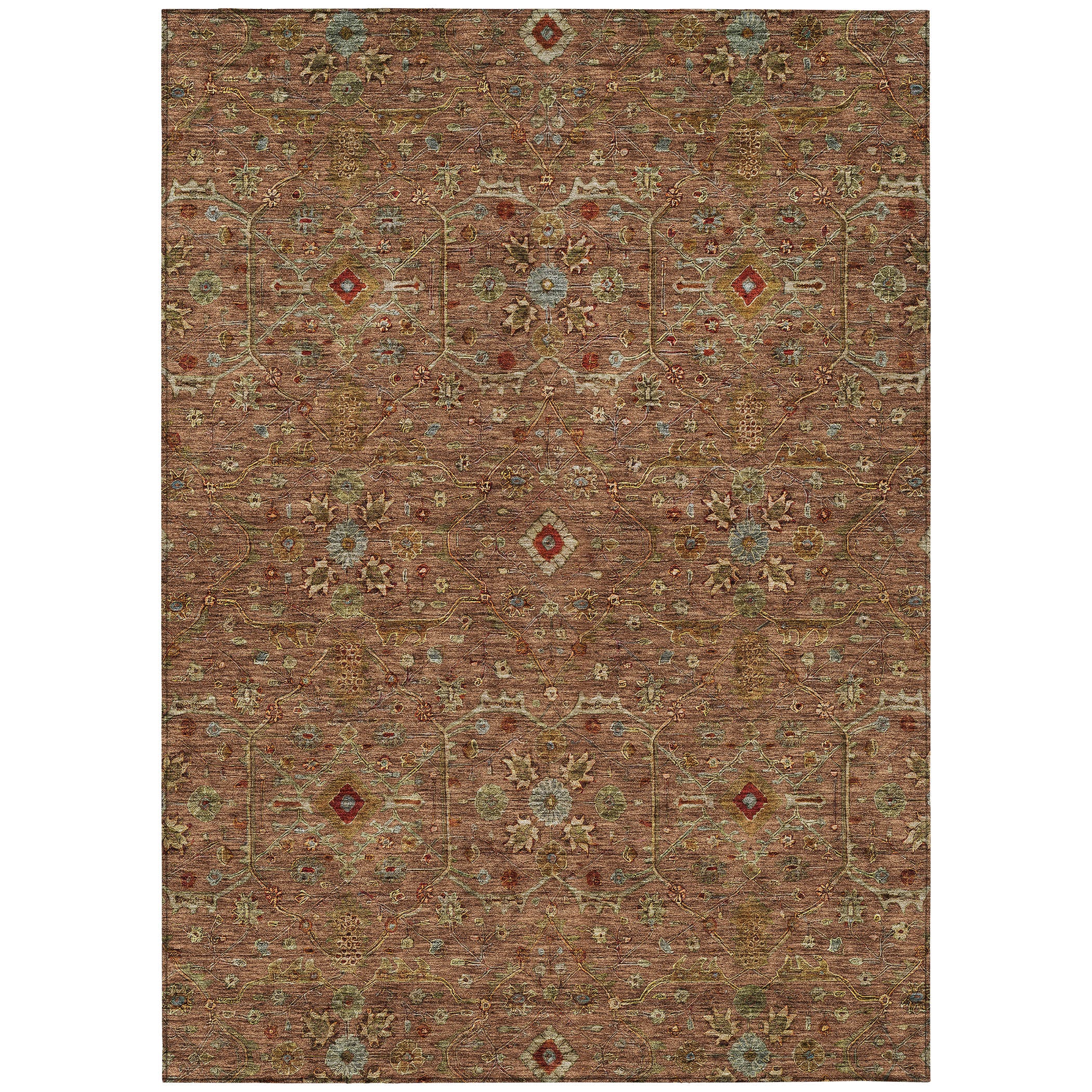 Seeking an area rug that exudes sophistication with its very intricate details and vintage feel? Look no further! Our rug boasts a transitional style that effortlessly complements various décor schemes, adding a touch of global charm to any room. With UV stabilization for indoor or outdoor use, it guarantees long-lasting vibrancy and resilience against the elements. The ultra-thin construction not only adds to its vintage appeal but also ensures hassle-free placement and maintenance. And with its machine-washable feature, it's the ideal choice for families and pet owners, offering both style and practicality.