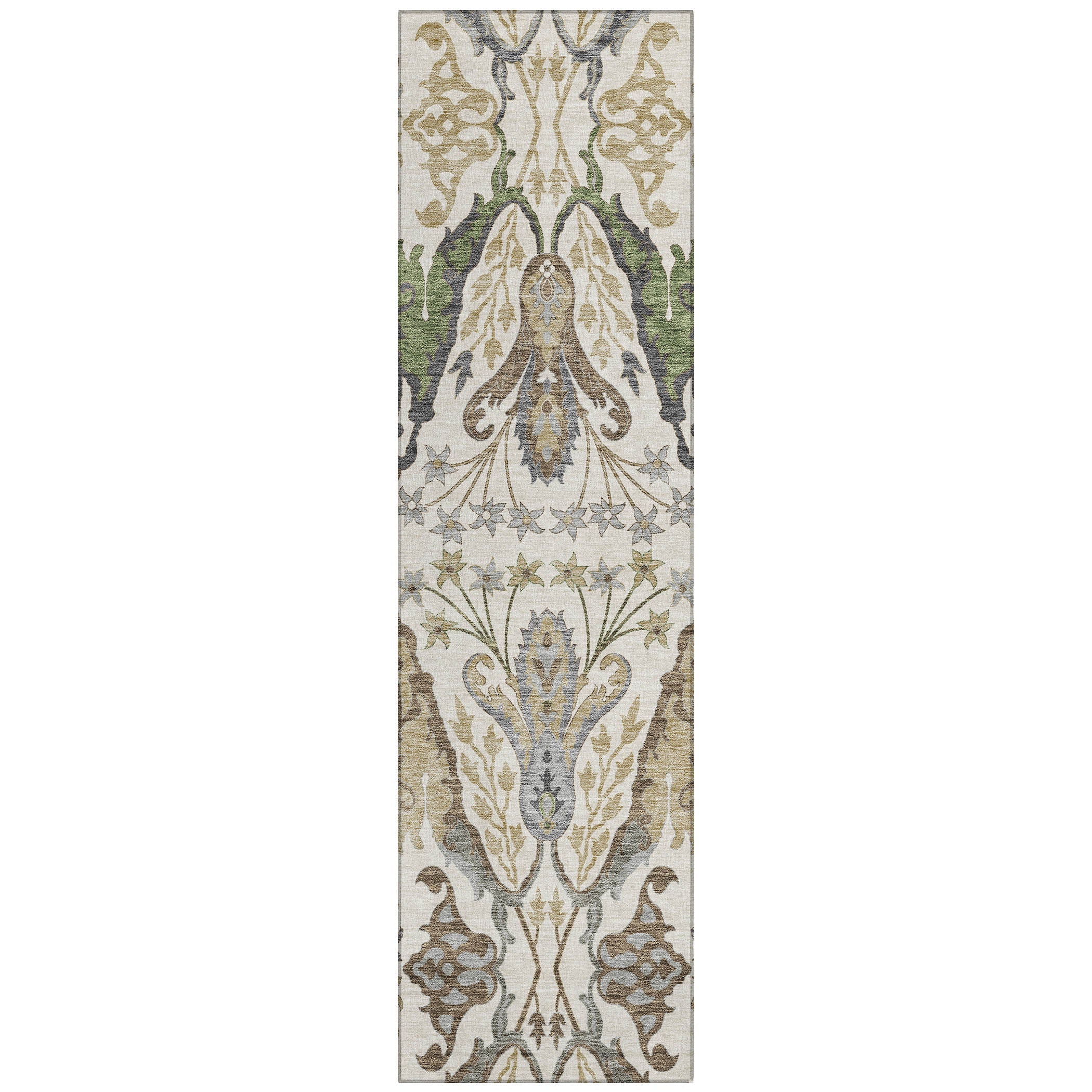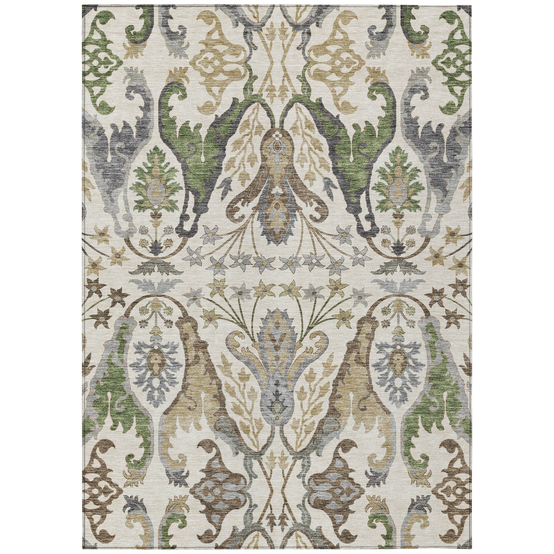 Step into a world of elegance with our area rug, adorned with a mirrored pattern that has an earthy vibe, reflecting transitional and global styles. UV stabilized for enduring beauty, it’s suitable for indoor or outdoor use. The ultra-thin construction allows for easy placement, and the machine-washable fabric ensures it remains clean and fresh, ideal for busy homes with kids and pets.