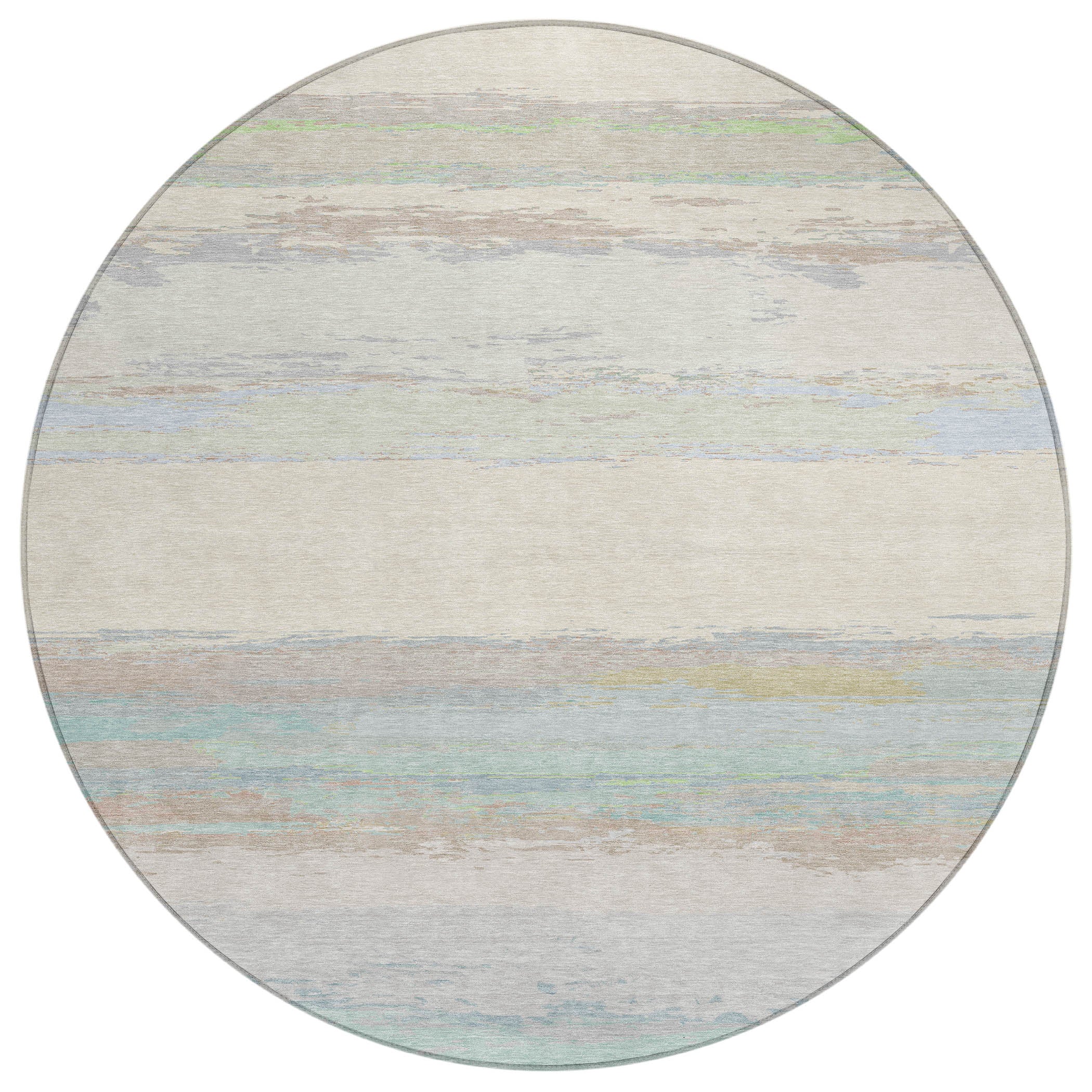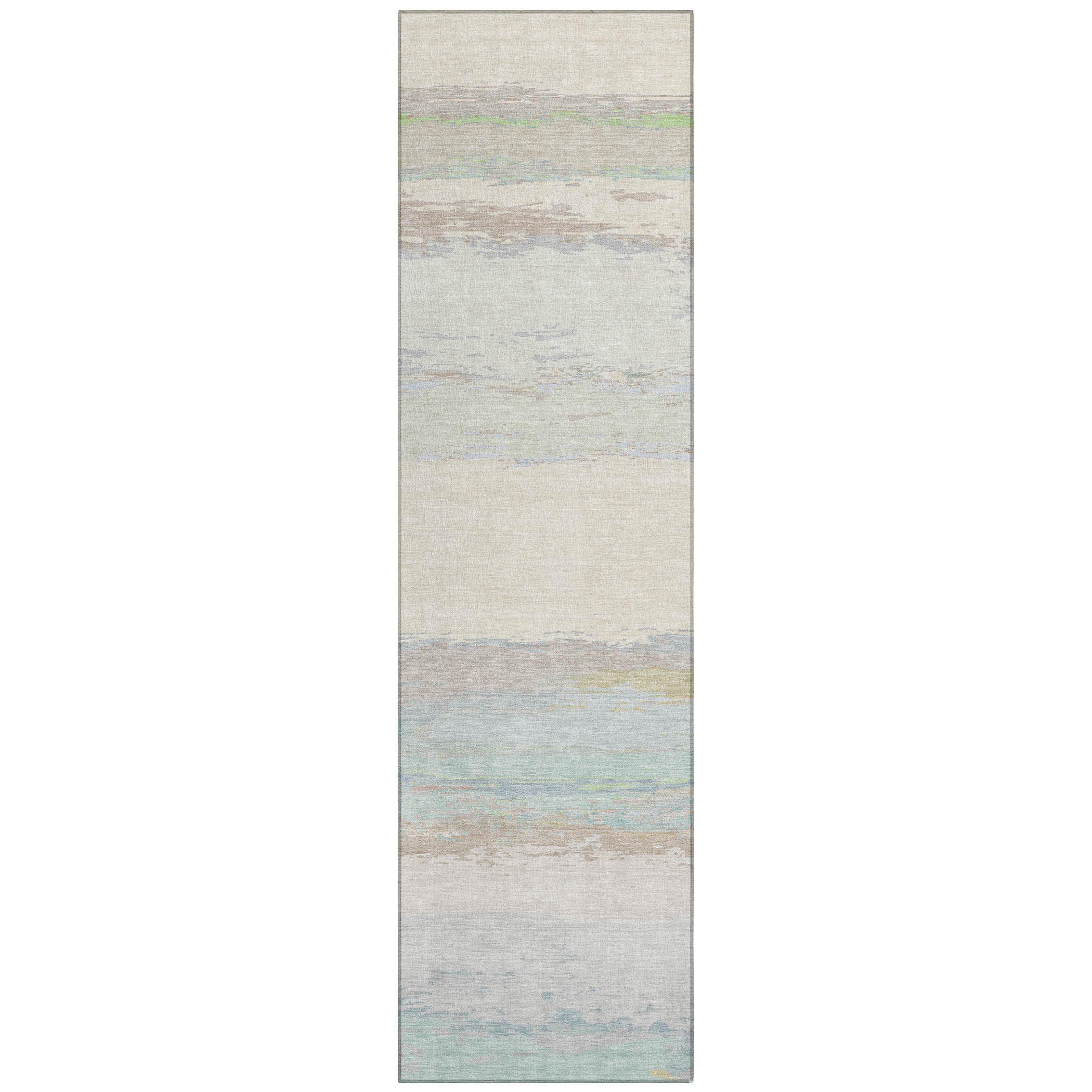 The modern pattern of a wide central band with additional stripes on top and bottom enhances the aesthetic of transitional interiors. The design offers a sophisticated look, making it adaptable for different settings. Designed with UV-stabilized fibers, it is perfect for both indoor and outdoor use. The ultra-thin build allows for convenient positioning, and its machine-washable feature simplifies cleaning. Family and pet friendly, this rug combines elegance and functionality.