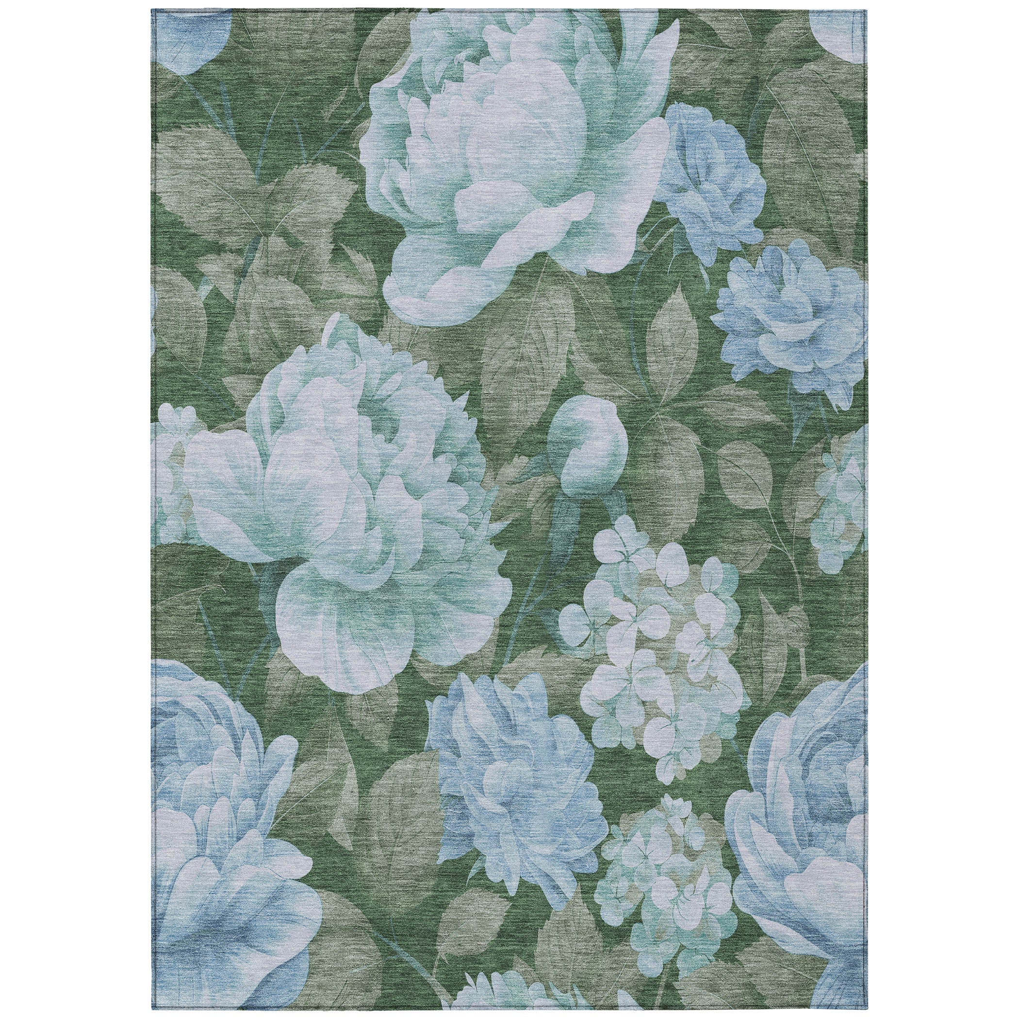 Transform your space with the delicate design of a floral pattern showcasing various leaves and petals in this transitional rug. The vibrant pattern brings a fresh and serene vibe to your decor. UV stabilized for versatile use, it boasts ultra-thin construction. This machine-washable rug is perfect for family and pet-friendly homes, providing style and practicality.