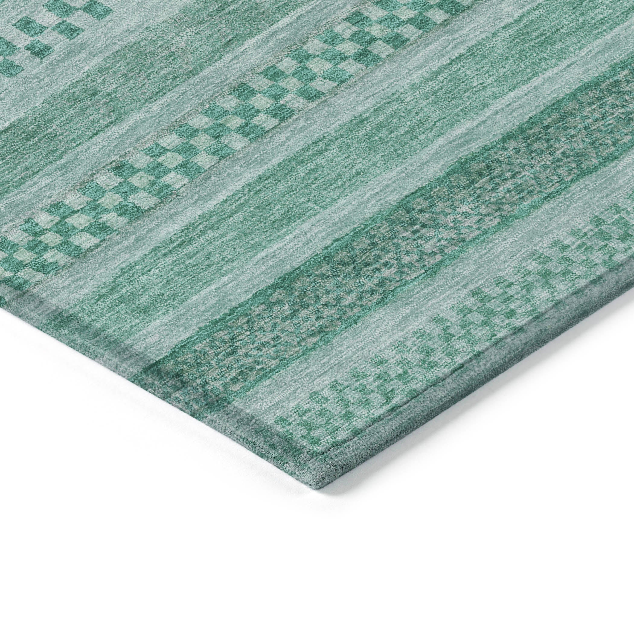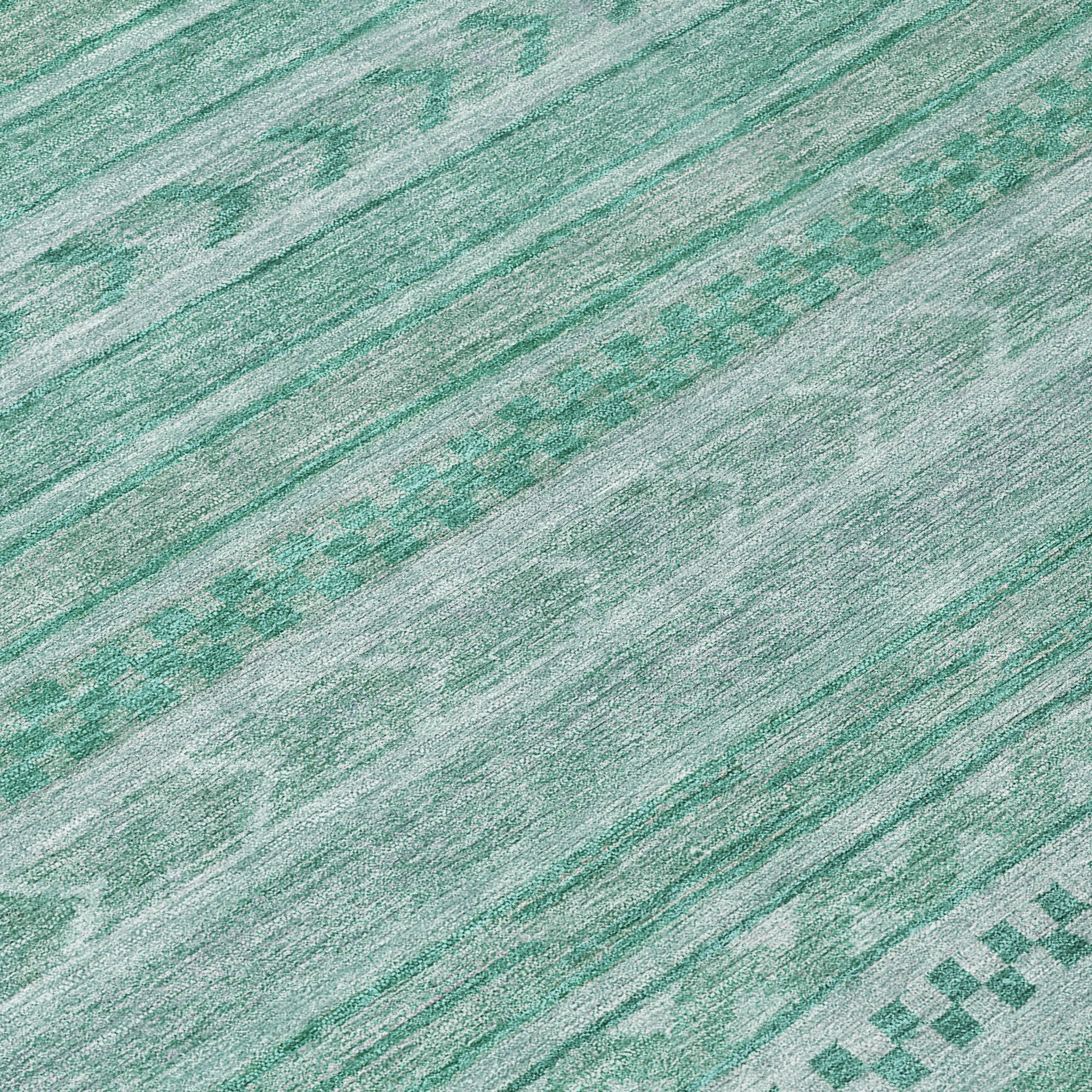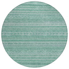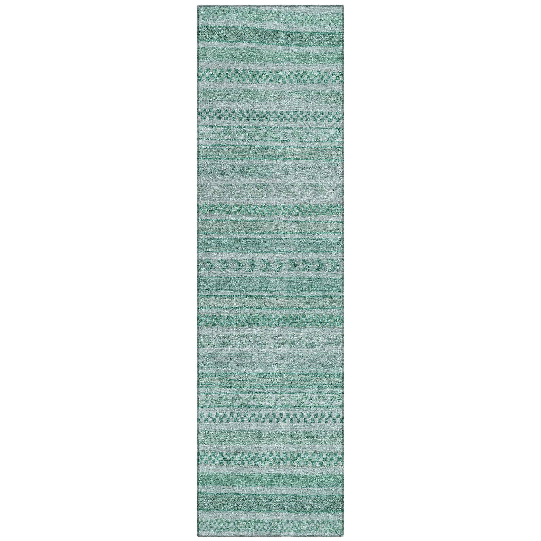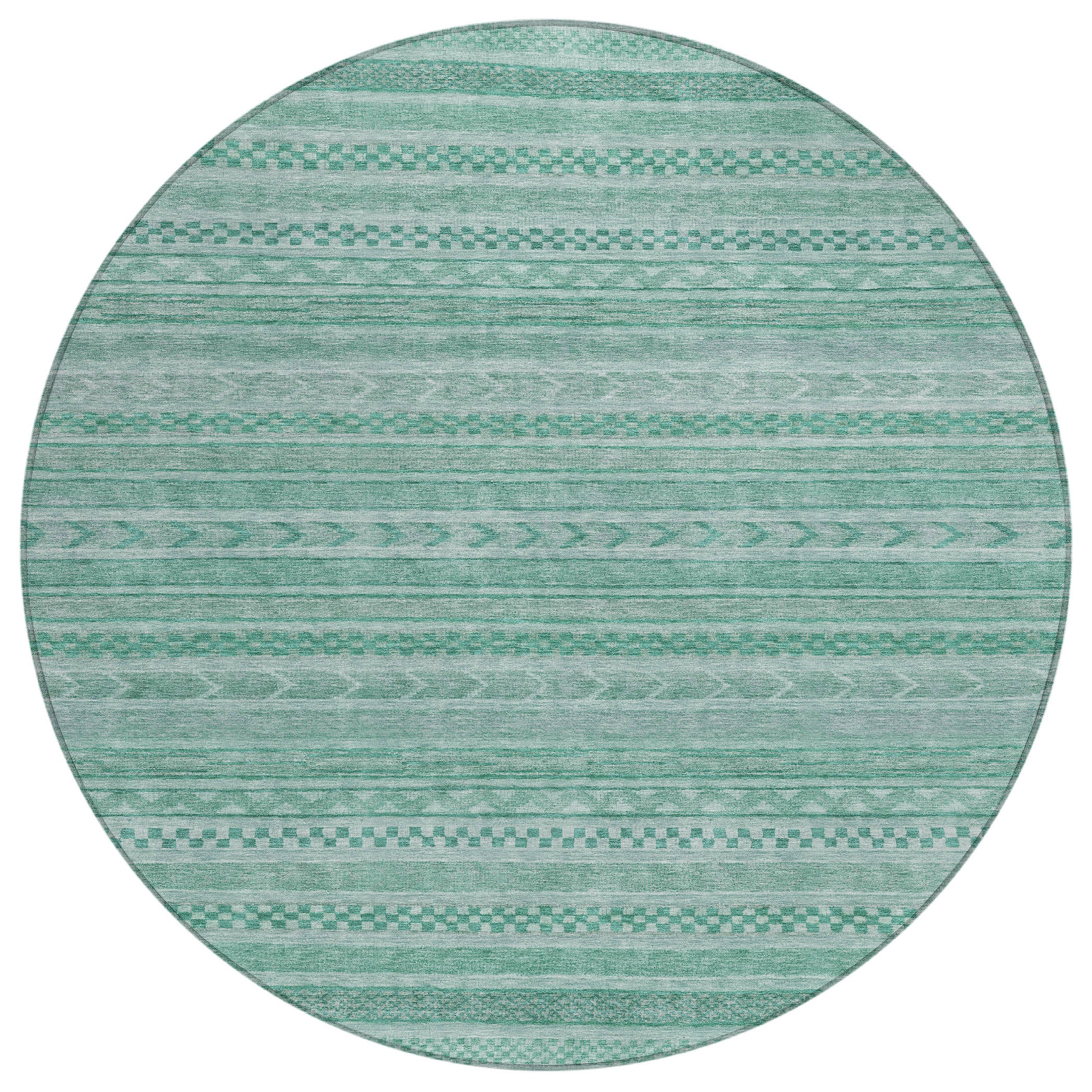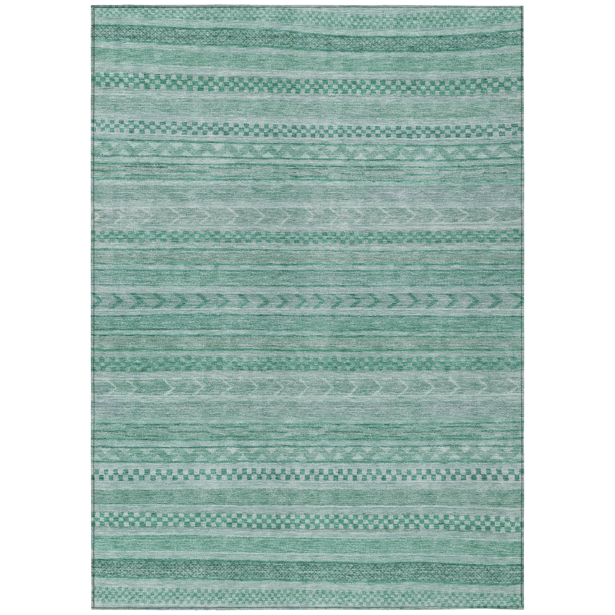 This transitional rug showcases small stripes with various motifs in horizontal patterns, creating a rich and textured design that suits any decor style. The stripe pattern adds a refined and sophisticated touch to your living space. UV stabilized for indoor or outdoor use, this rug is built to last while retaining its vibrant look. Its ultra-thin design ensures a smooth fit under furniture, and it's conveniently machine-washable. Ideal for family and pet-friendly environments, this rug combines practicality with aesthetic appeal.