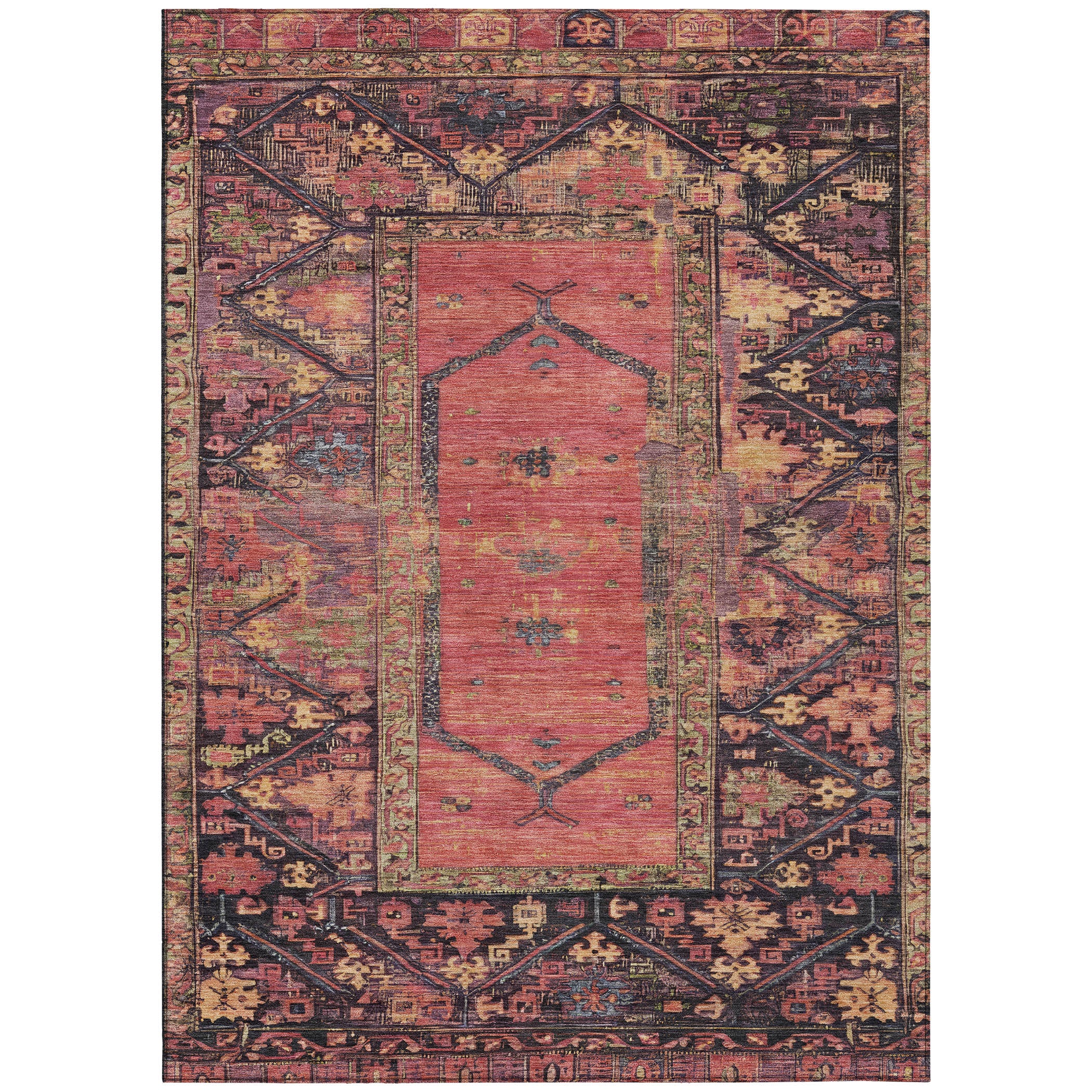 This rug features a vintage, distressed border that exudes charm, with fading details that give it an aged, lived-in look. The open center field offers a clean, uncluttered space that draws attention to the intricate border. Combining a traditional style with a global pattern, this rug is ideal for bringing a cultured, timeless touch to your home. Designed for both indoor and outdoor spaces, this UV-stabilized rug features an ultra-thin construction that’s easy to clean and care for. Its machine-washable design adds convenience, while its family and pet-friendly nature ensures it can handle everyday wear and tear. Stylish and durable, it’s the perfect solution for busy households.