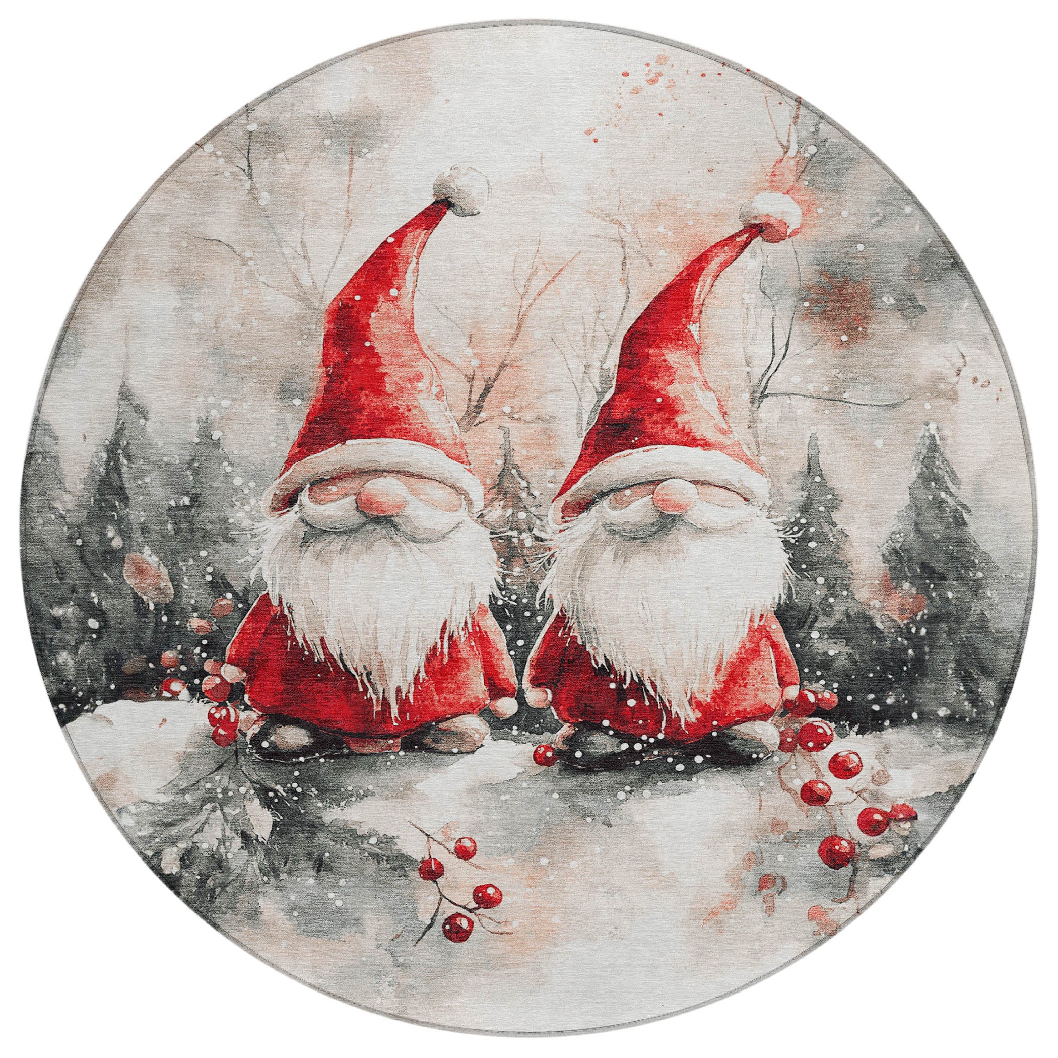 Two gnomes surrounded by snowy branches and berries create a fun and festive pattern on this rug, adding a joyful touch to your holiday décor. The transitional style ensures that the rug works beautifully in both traditional and modern settings, making it a versatile piece for seasonal celebrations. Designed for both indoor and outdoor spaces, this UV-stabilized rug features an ultra-thin construction that’s easy to clean and care for. Its machine-washable design adds convenience, while its family and pet-friendly nature ensures it can handle everyday wear and tear. Stylish and durable, it’s the perfect solution for busy households.