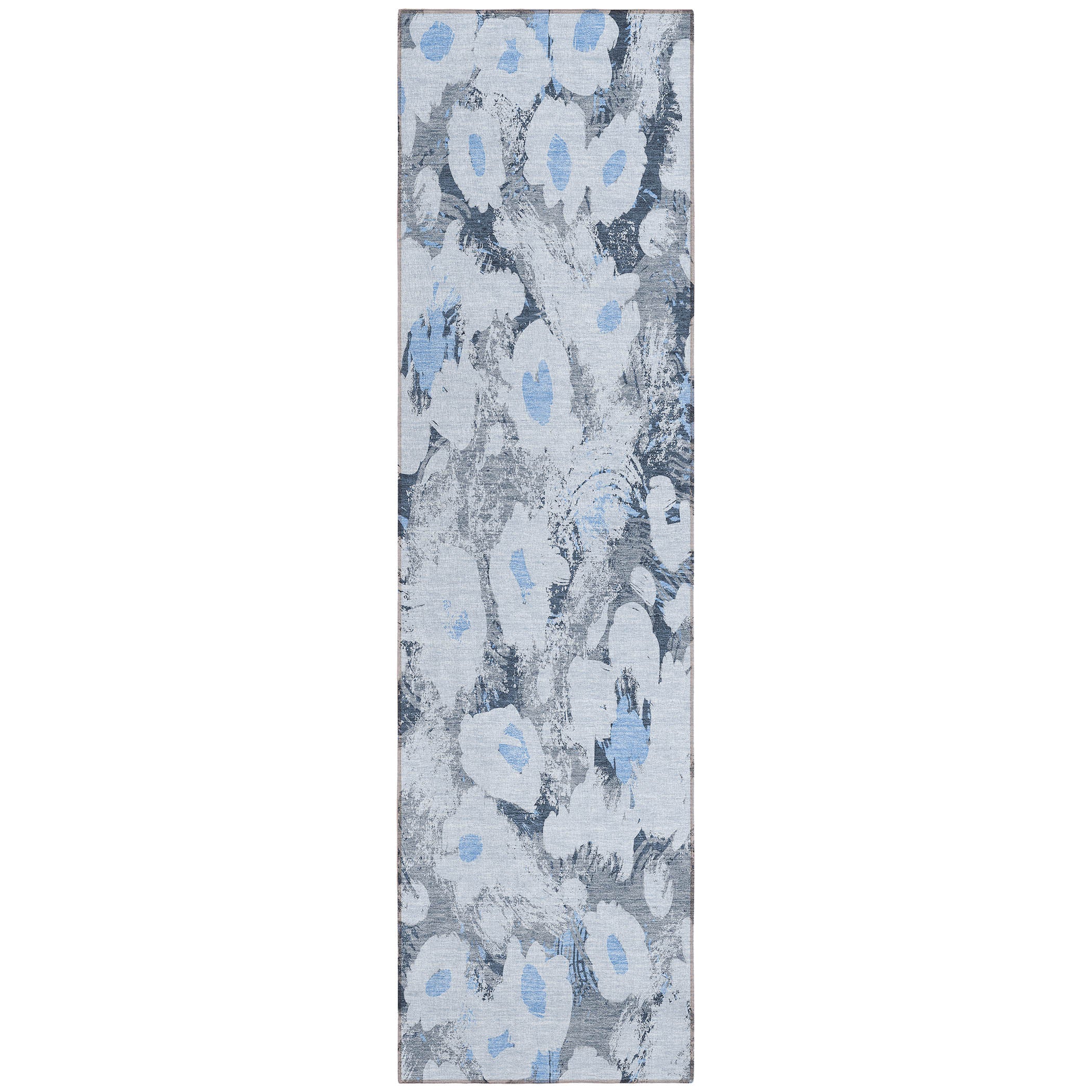 Chantille ACN538 Denim area rug, a delightful addition to any space. This transitional rug features whimsical daisy-like florals and artistic paint stroke effects, adding a playful and fresh vibe to your decor. Perfect for both indoor and outdoor use, its UV-stabilized design ensures long-lasting vibrancy.