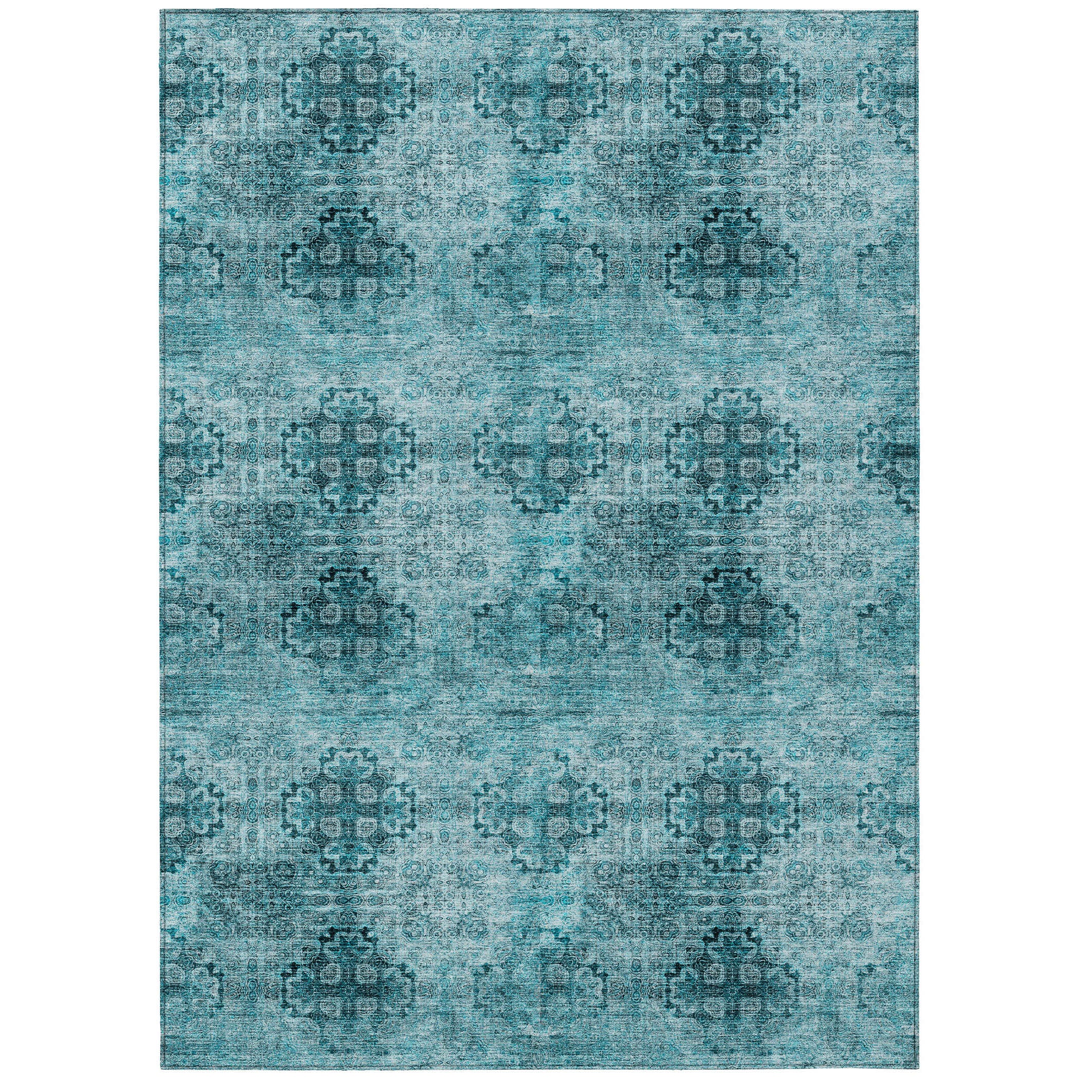 Elevate your space with the Chantille ACN557 Teal rug, a stunning addition to any room. Featuring intricate scalloped medallions that create a captivating kaleidoscope effect, this transitional organic rug adds a unique artistic flair to your decor.