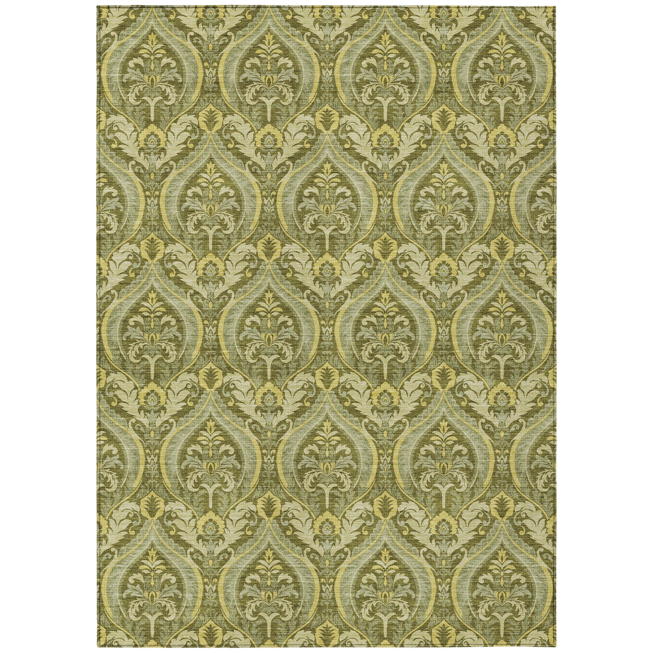 Elevate your space with the Chantille ACN572 Green area rug. Featuring elegant damask-like motifs in a uniform pattern, this rug effortlessly combines classic and contemporary design elements. Perfect for indoor or outdoor use, it boasts UV stabilization and an ultra-thin construction with a built-in non-skid backing, eliminating the need for a separate rug pad. Plus, its machine-washable quality makes it ideal for busy households with pets and kids.