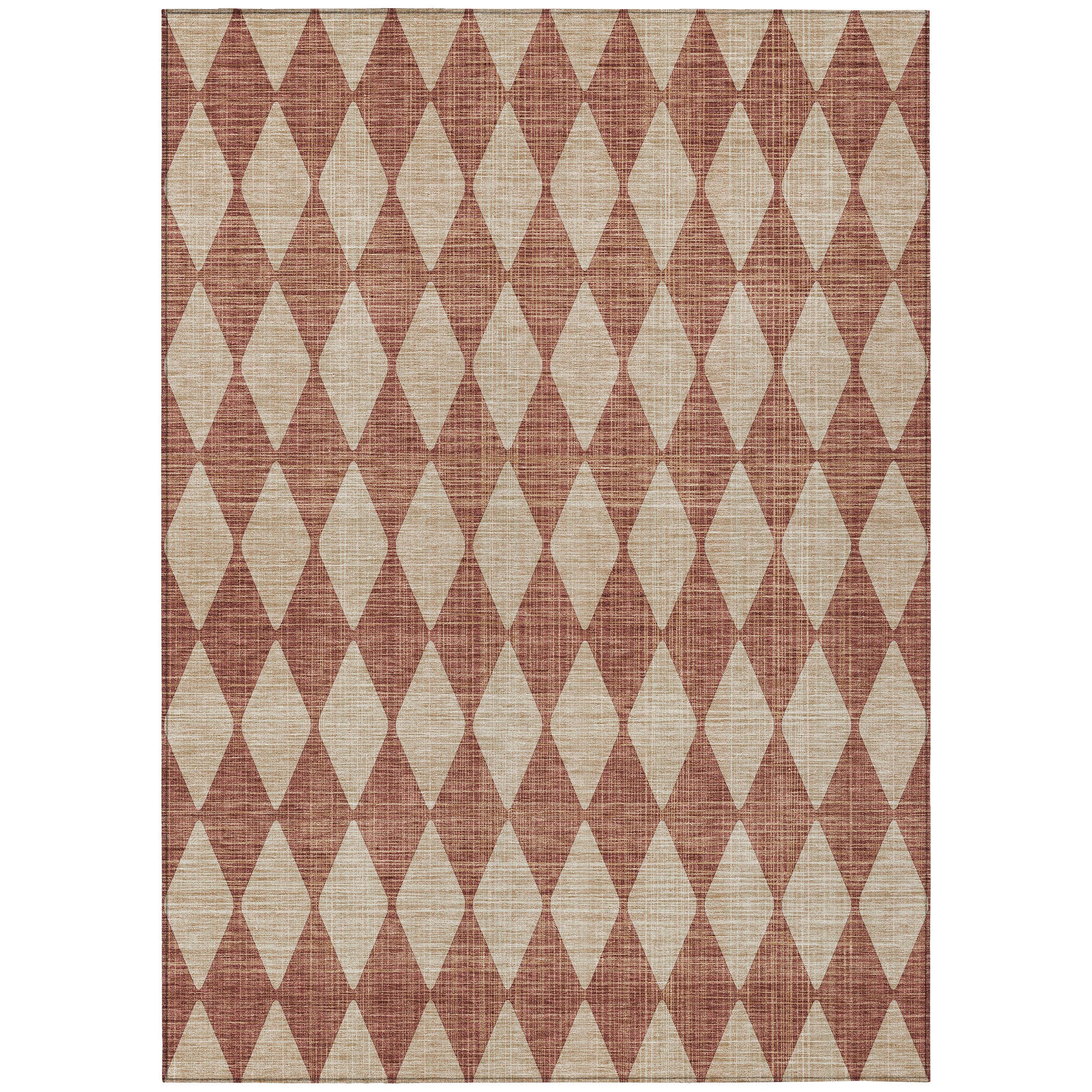 Elevate the ambiance of your home with the Chantille ACN578 Paprika area rug. This transitional piece boasts a charming design featuring vintage diamond motifs in an argyle pattern, blending timeless elegance with contemporary flair. Perfect for both indoor and outdoor use, this rug is UV stabilized and features an ultra-thin construction with a built-in non-skid backing, eliminating the need for an extra rug pad. With its machine-washable feature, it provides a convenient and family-friendly option that's ideal for households with pets. Add a touch of sophistication to any room with this versatile and easy-to-maintain rug.