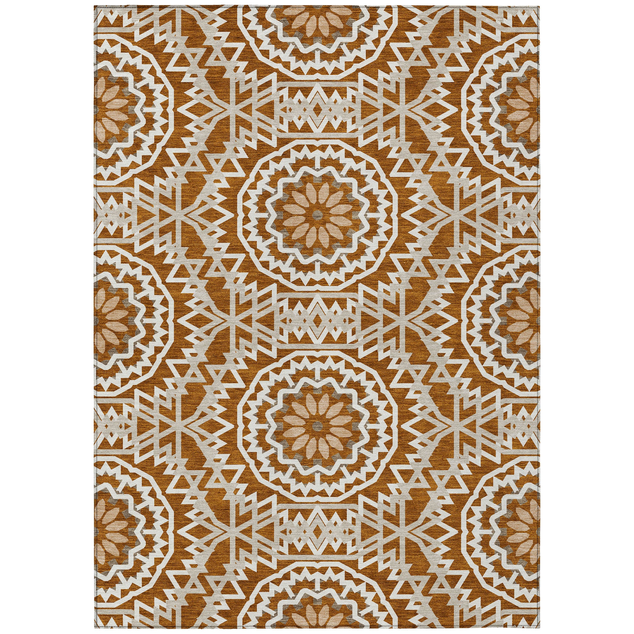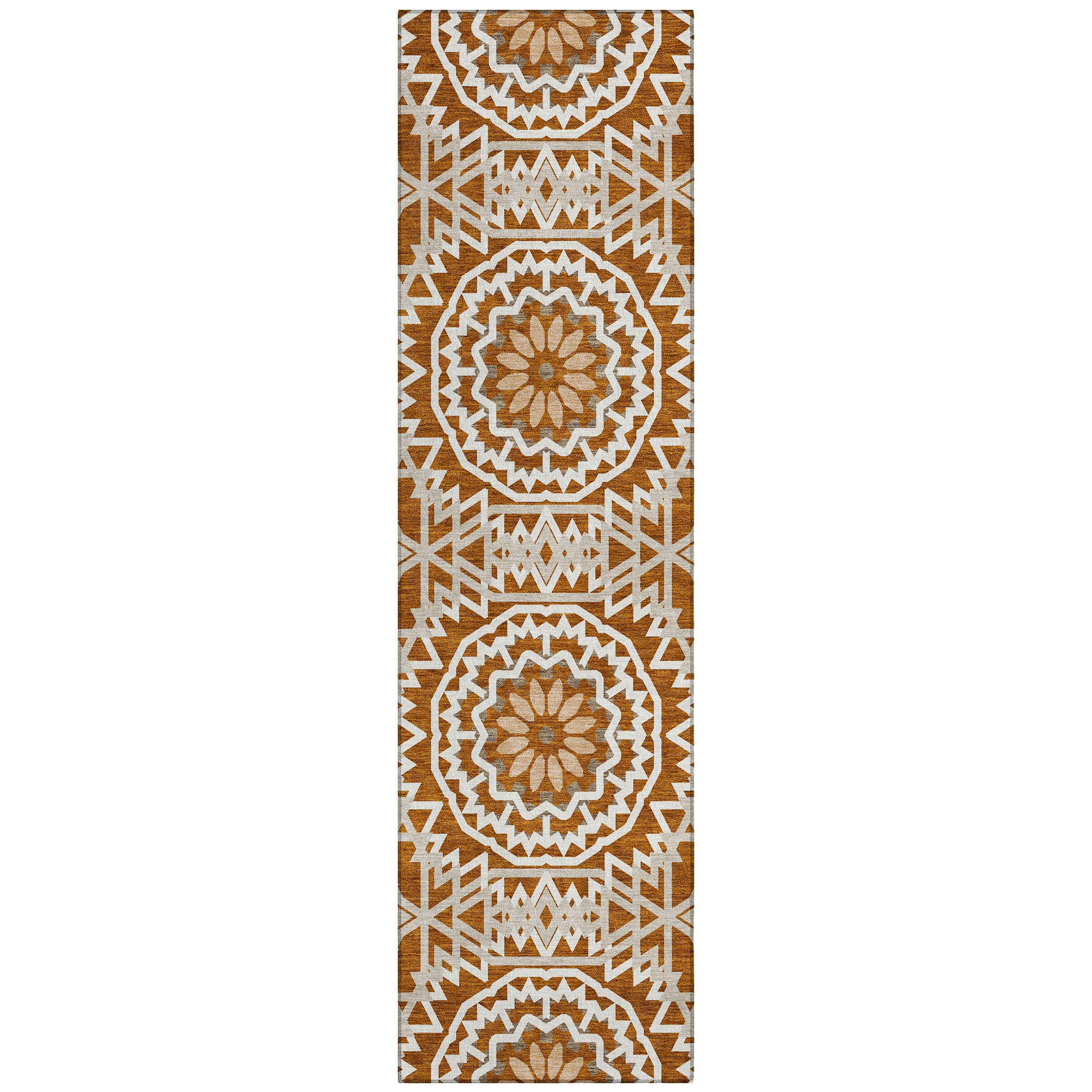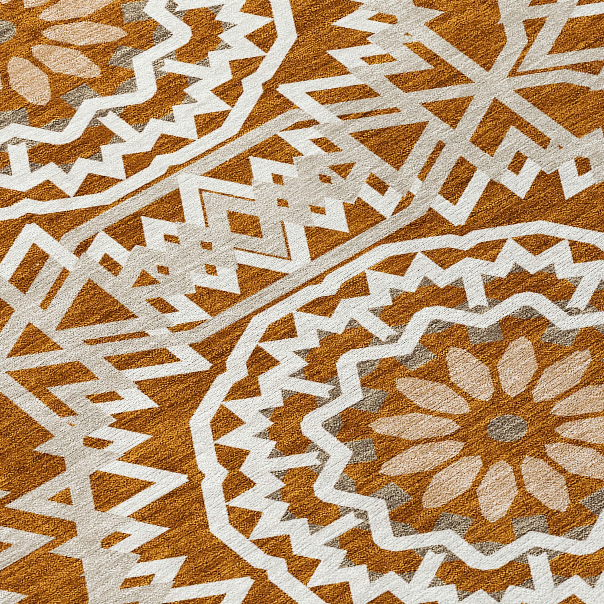 Chantille ACN619 Paprika rug, a stunning addition to your home decor. Inspired by the beauty of stained glass, this transitional piece features interlocking medallion circles that create a captivating focal point in any room. Its circular motif exudes elegance and charm, elevating the ambiance of your space effortlessly.
