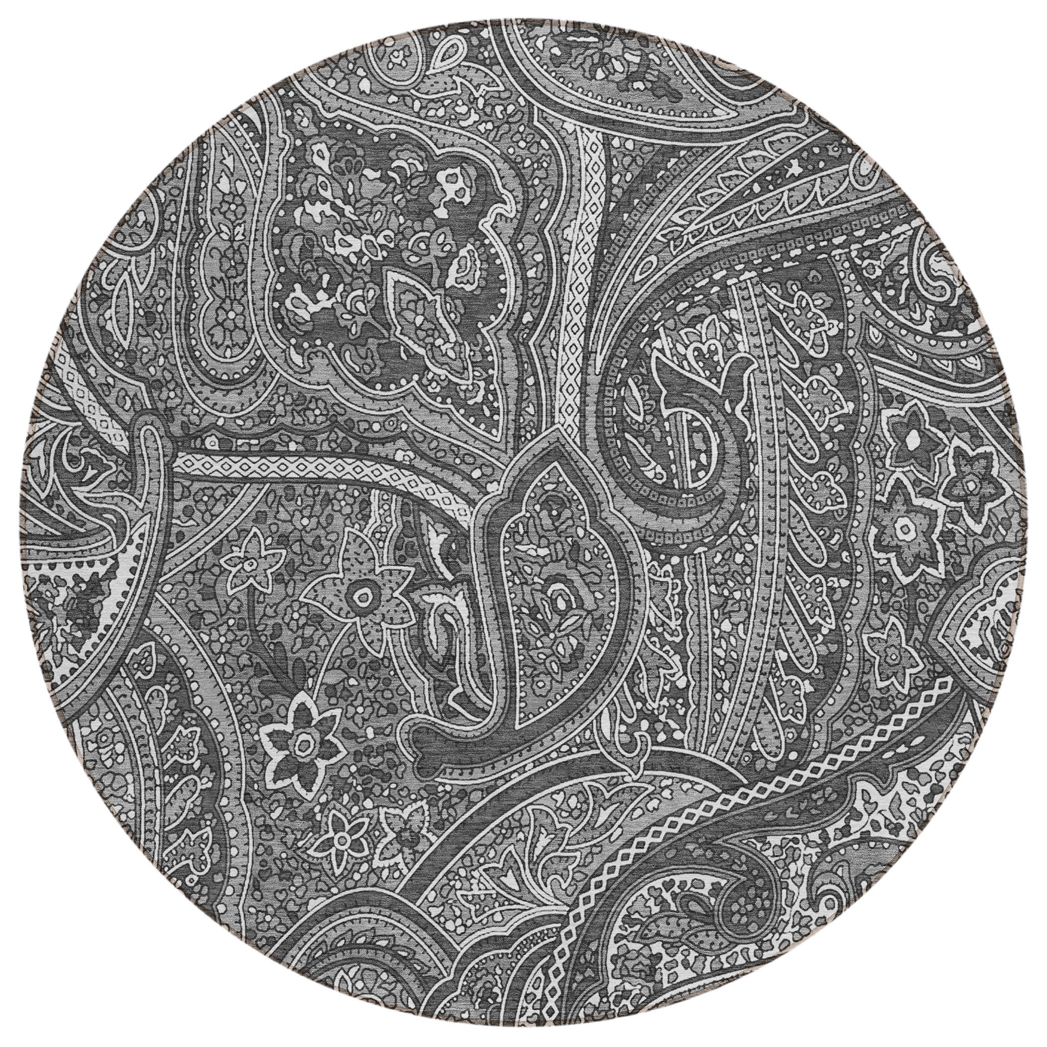 Chantille ACN623 Gray rug, a stunning piece that seamlessly blends traditional beauty with modern design. Featuring vintage paisley motifs that flow effortlessly to evoke an air of enduring elegance, this rug adds a touch of nostalgia to any decor. Whether used indoors or outdoors, its UV-stabilized construction ensures long-lasting vibrancy and durability.