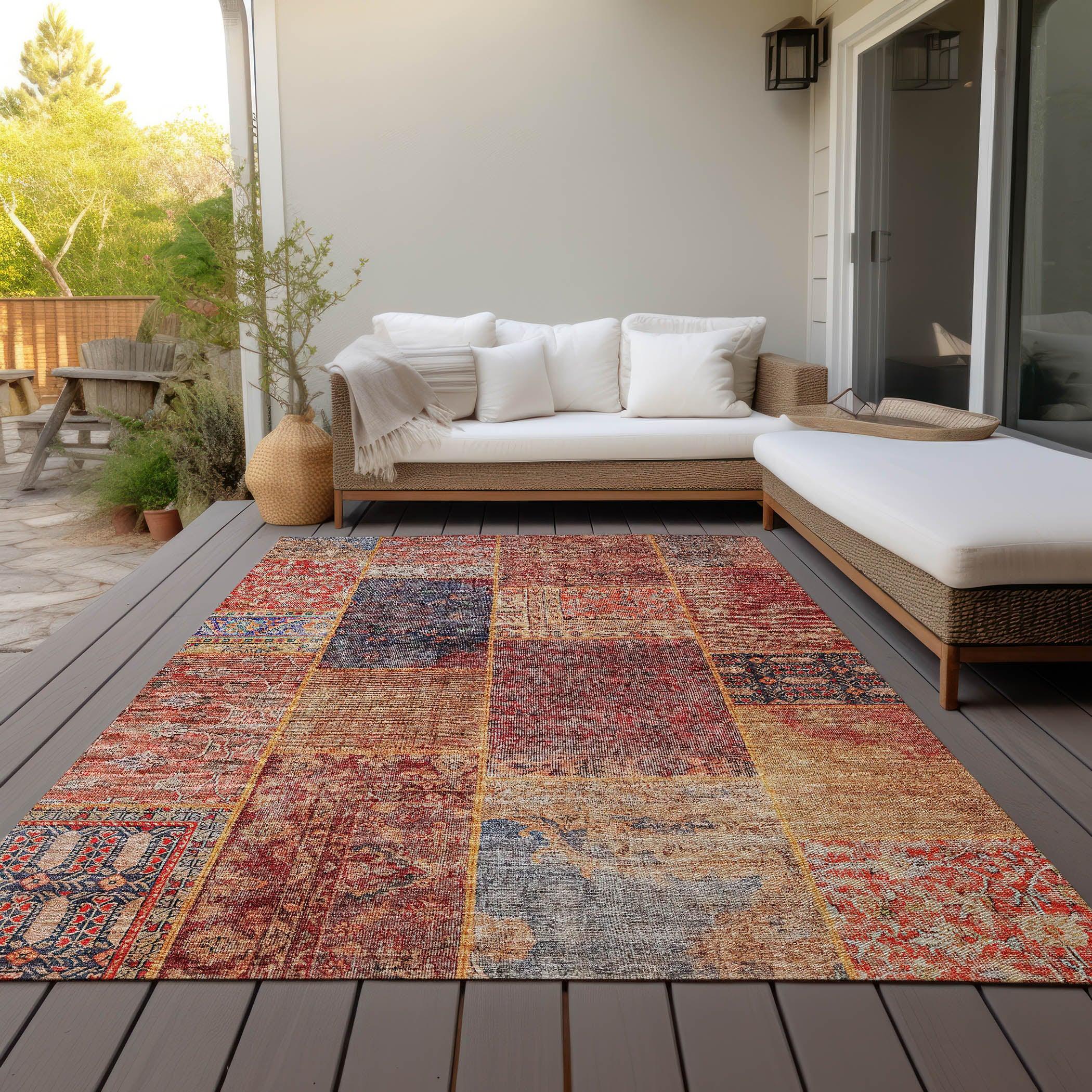 Chantille ACN669 Red area rug, a stunning addition to any space. Its intricate panel design creates a captivating mosaic that effortlessly enhances transitional decor with a touch of elegance. This rug goes beyond just looks - it's UV-stabilized for both indoor and outdoor use, making it a versatile choice for various settings.