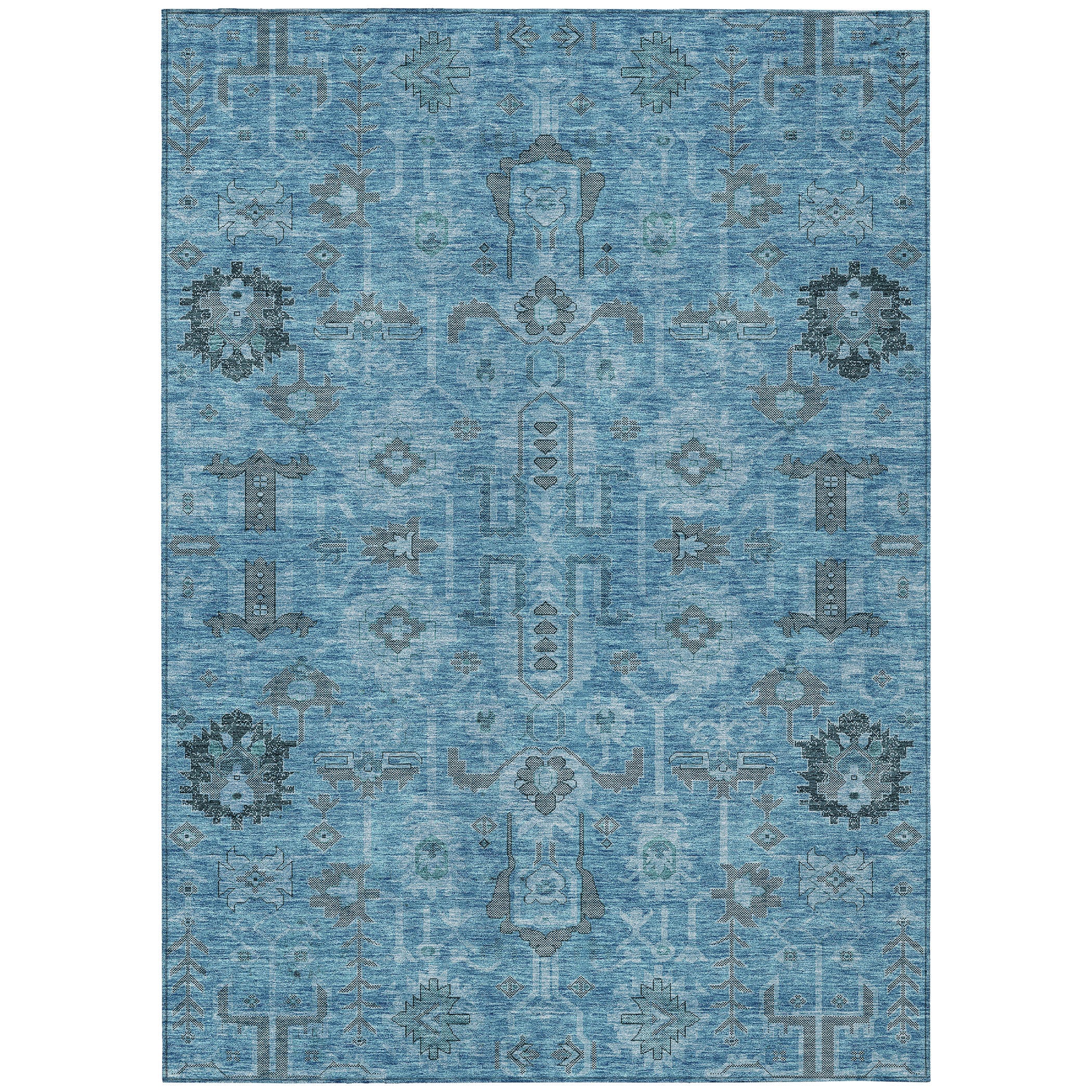 Chantille ACN697 Blue rug, a stunning blend of vintage charm and contemporary style. This traditional rug exudes elegance with its intricate oriental patterns, adding a timeless touch to any room. Versatile and durable, it is UV stabilized to maintain its beauty whether placed indoors or outdoors in the sun.