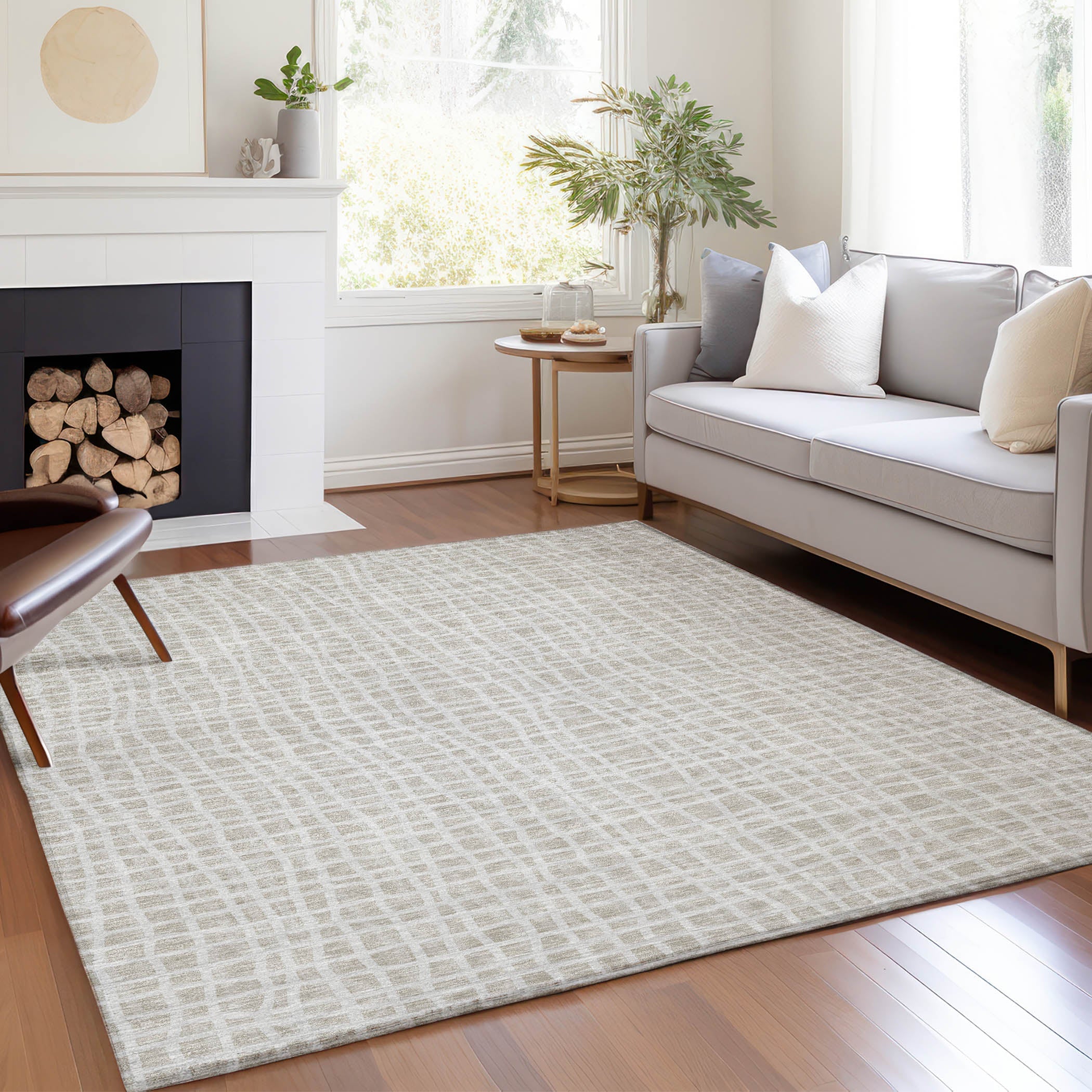 Chantille ACN729 Ivory area rug, a stunning addition to your home decor. Step onto this rug and immerse yourself in the soothing harmony of horizontal and vertical lines creating a timeless stripe pattern that effortlessly blends with any transitional space.