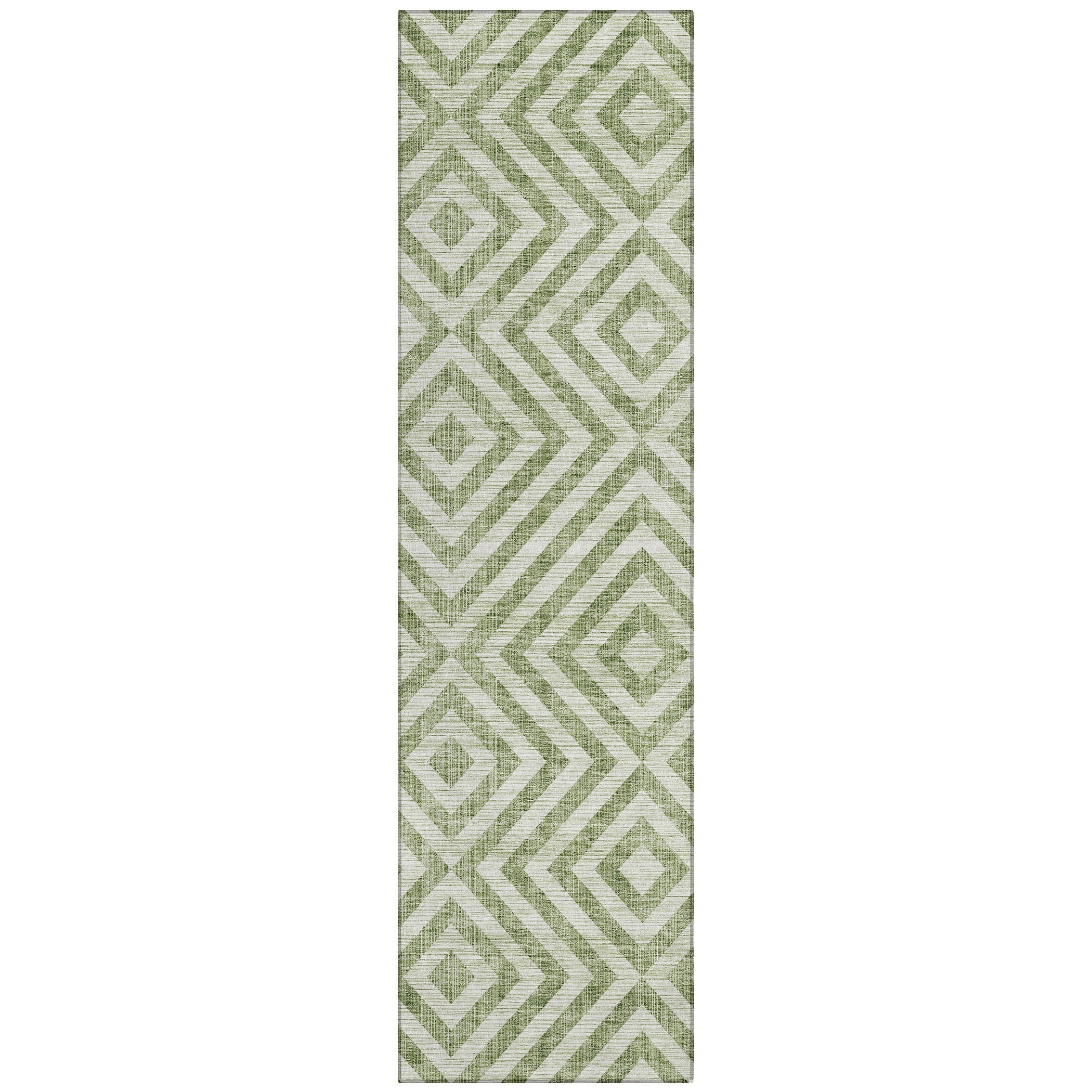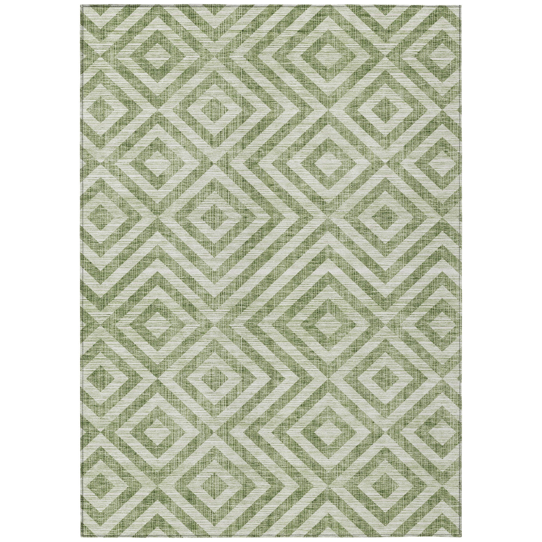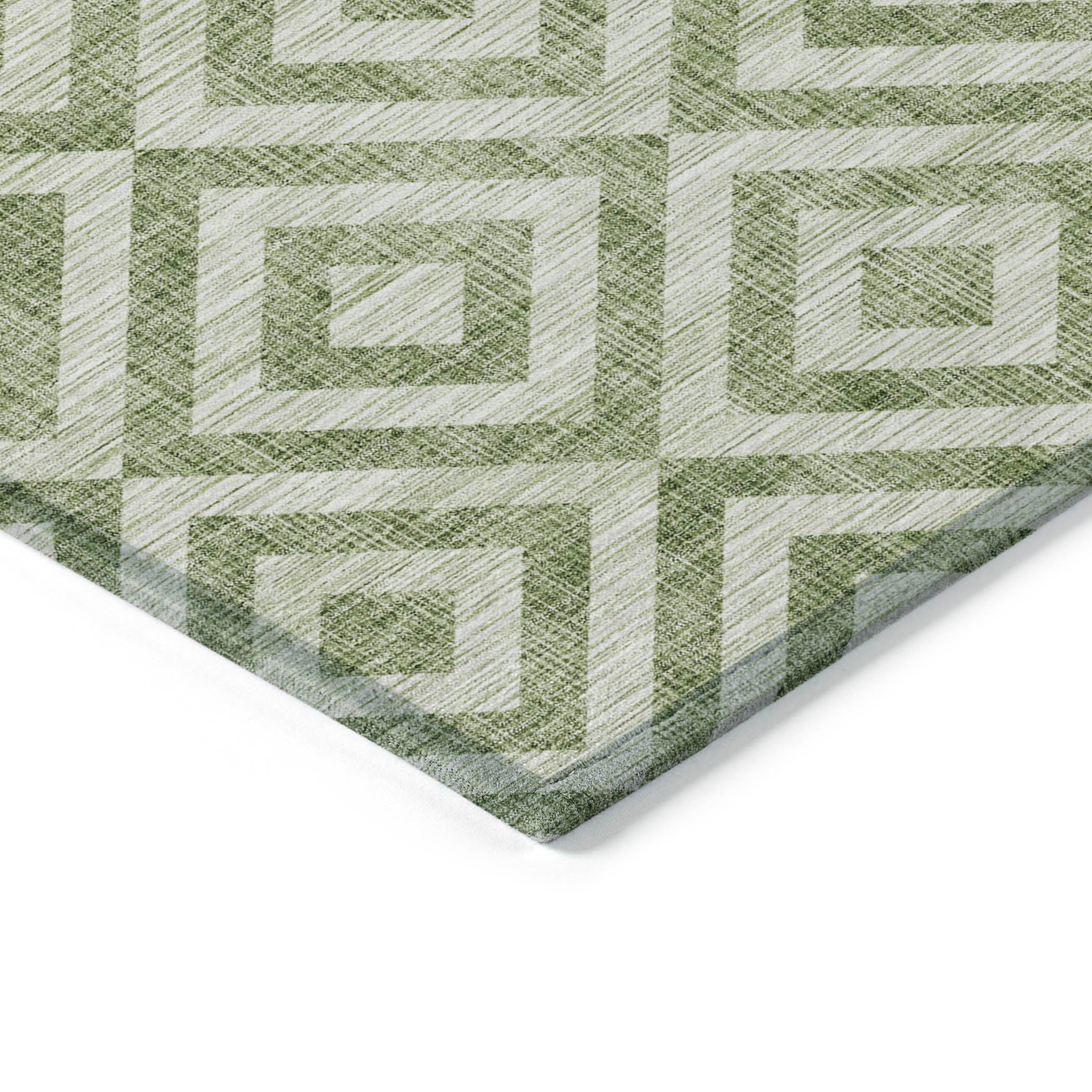 Chantille ACN733 Green area rug - a contemporary masterpiece that effortlessly blends style and functionality. Embrace the modern elegance of this rug, adorned with a captivating chevron pattern and oversized floating squares. Ideal for transitional spaces, this geometric marvel offers not just visual appeal but also practical advantages.