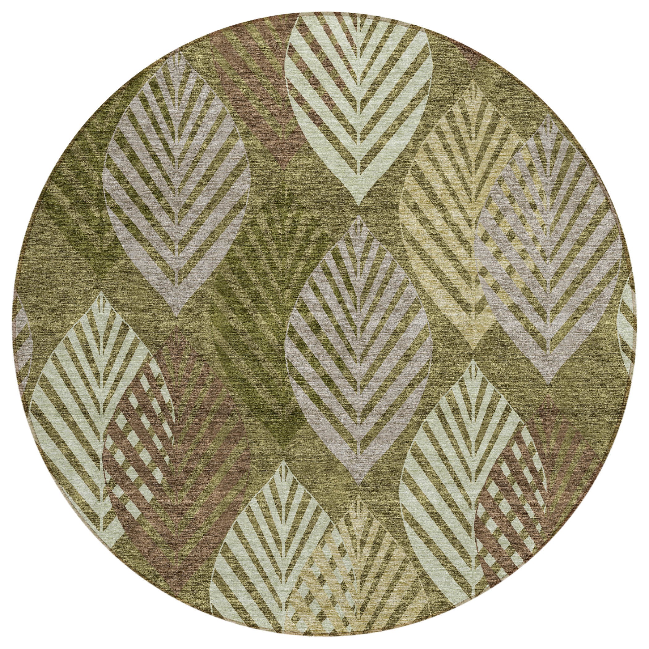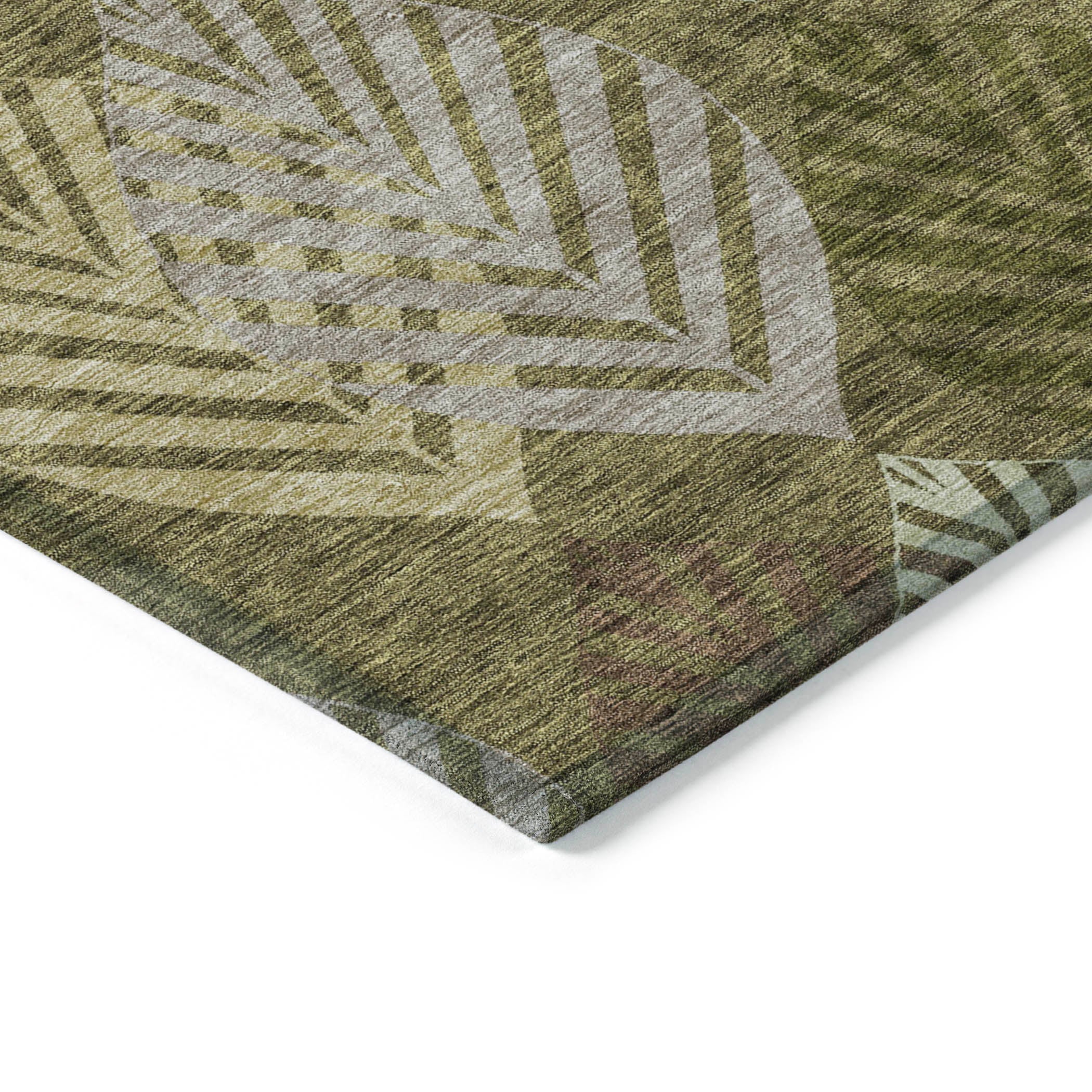 Chantille ACN744 Olive rug, a stunning addition to your home decor. Embrace a transitional design with a floral twist as vertical leaves overlap to create an exquisite pattern. This rug brings a serene botanical charm to any room, turning it into a peaceful sanctuary for relaxation.