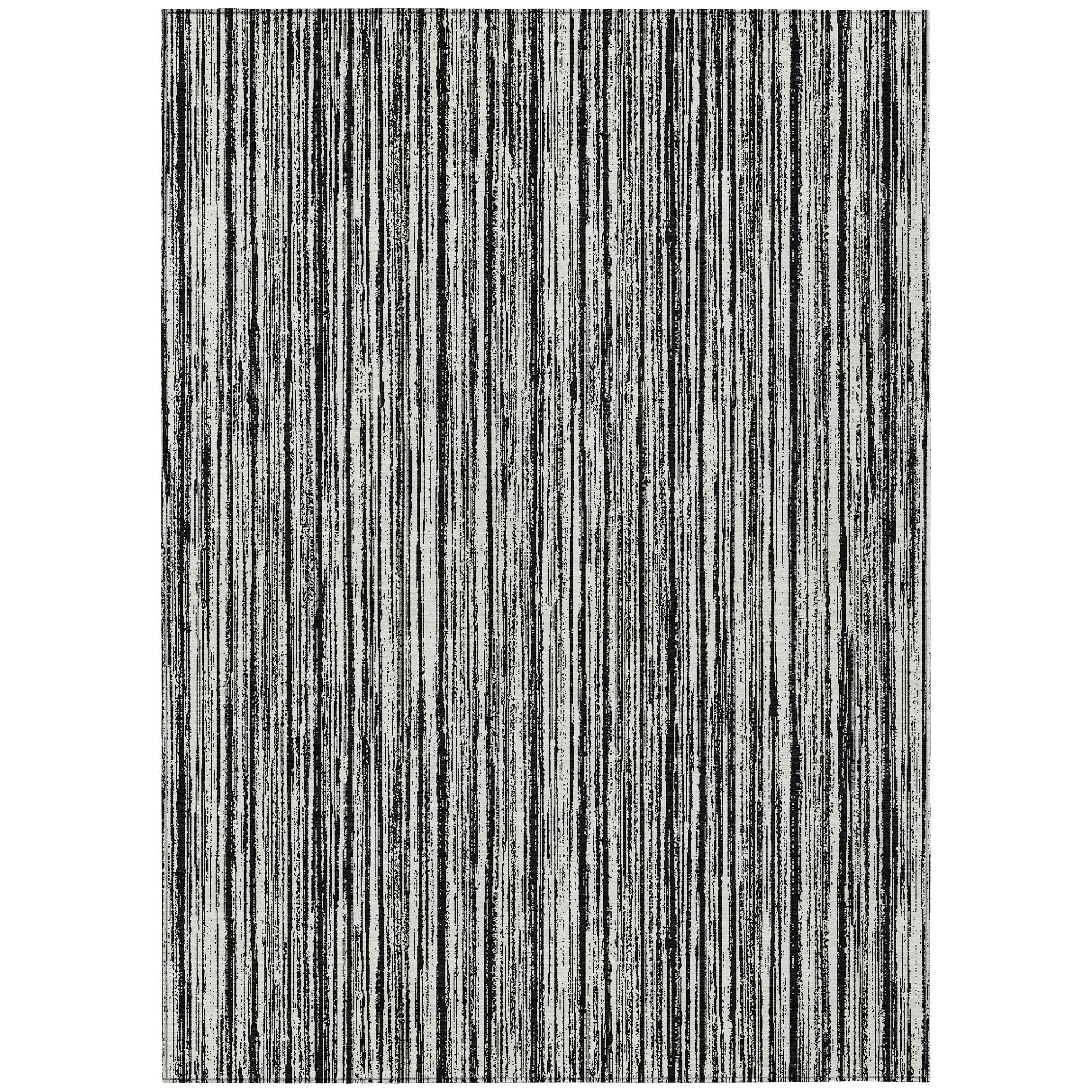 Chantille ACN760 Black rug, a perfect blend of modern style and classic design. The vertical thin stripes give it a hand-drawn look that adds a touch of artistry to any room. Its UV stabilization ensures long-lasting durability, while its ultra-thin construction offers a sleek contemporary appeal. Cleaning is a breeze as this rug is machine-washable, making it ideal for busy households with pets and children.