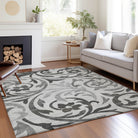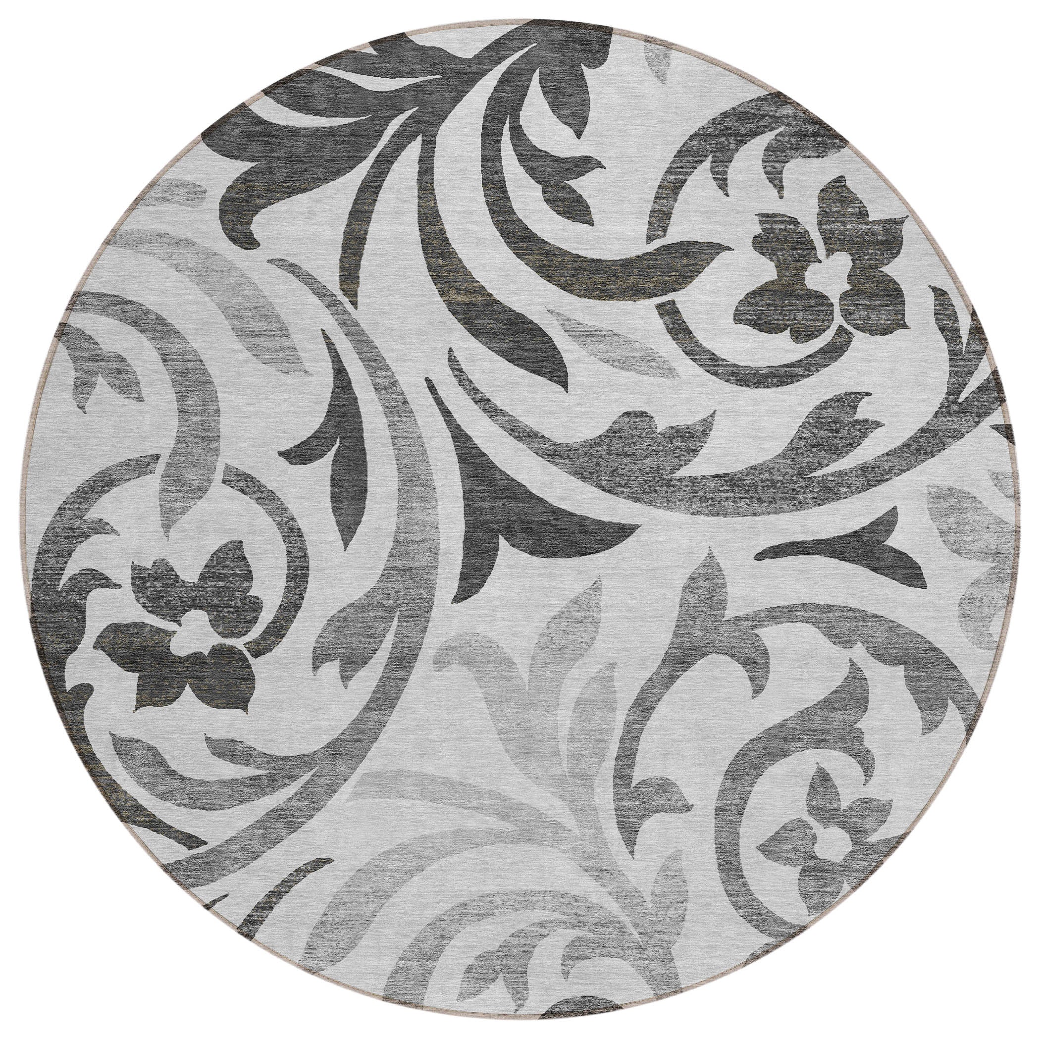 Chantille ACN764 Gray rug, designed to bring a touch of elegance and tranquility to your living space. The intricate swirls of delicate vines make for a stunning display, ideal for seamlessly blending into any decor style. This versatile rug boasts UV stabilization, ensuring its longevity in any setting, while its ultra-thin construction allows for effortless integration into your home.