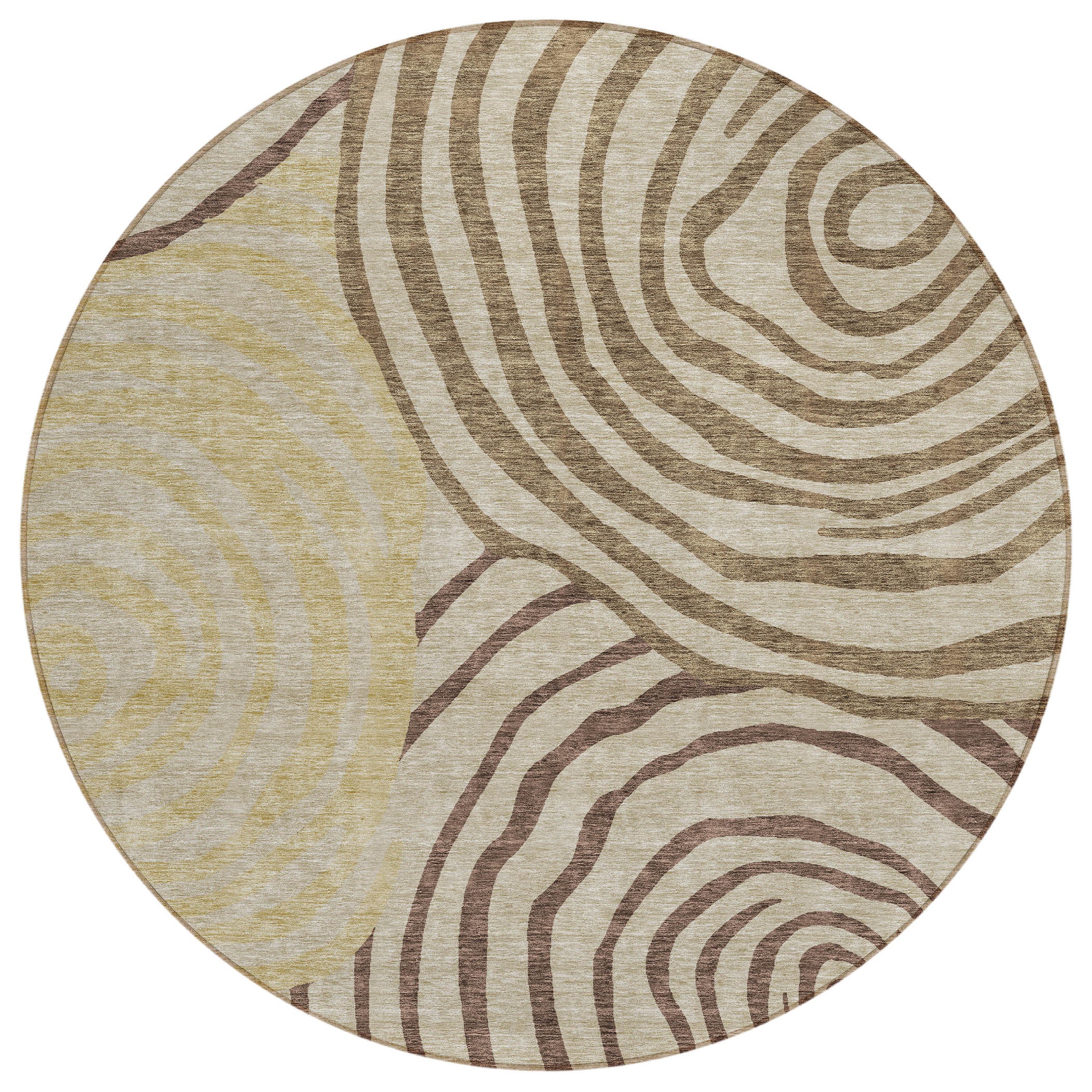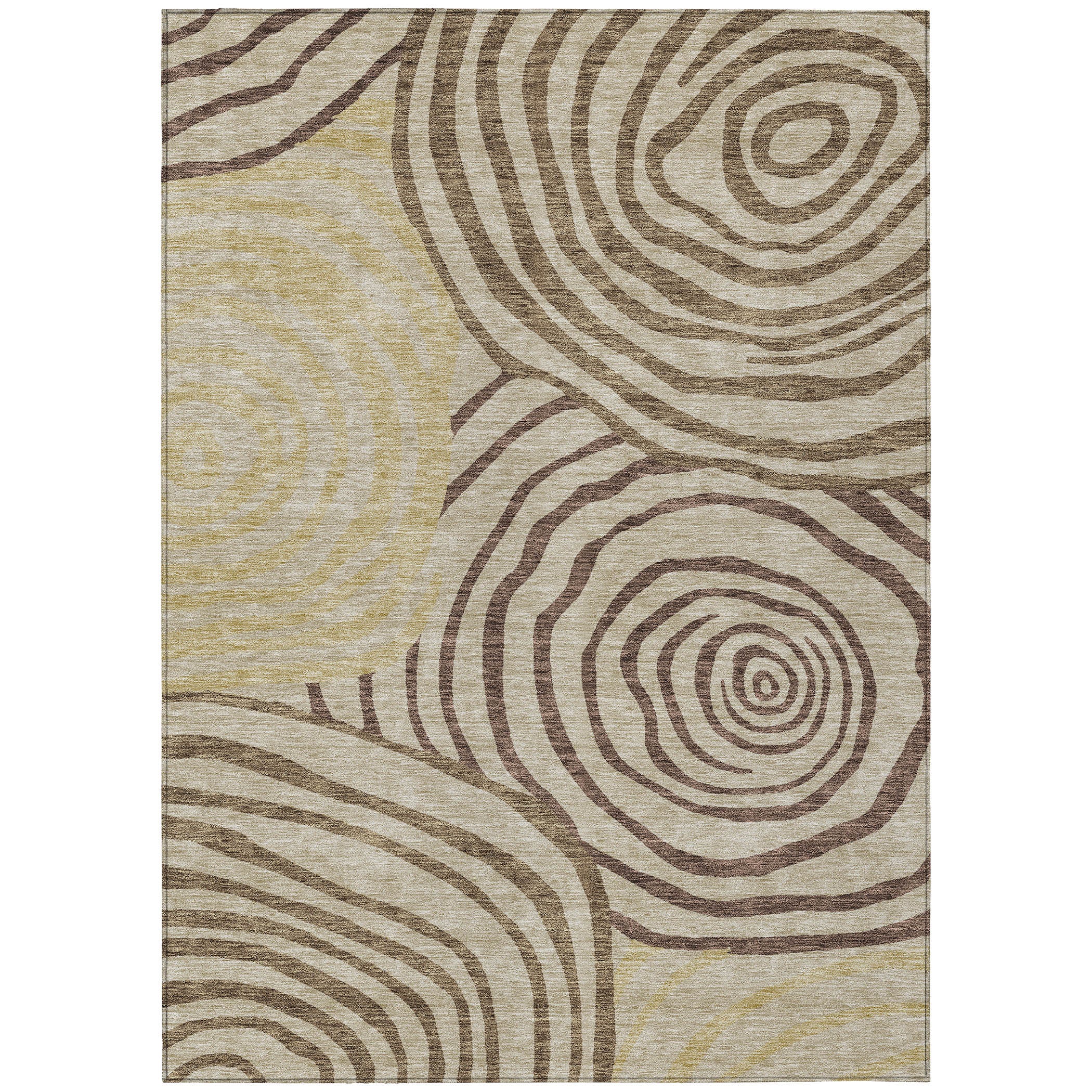 Chantille ACN765 Brown rug, a stunning addition to your home decor. Featuring large free-form circles, this rug puts a modern spin on a classic swirl design. The dynamic pattern adds a touch of contemporary style to any room, bringing energy and artistic flair.