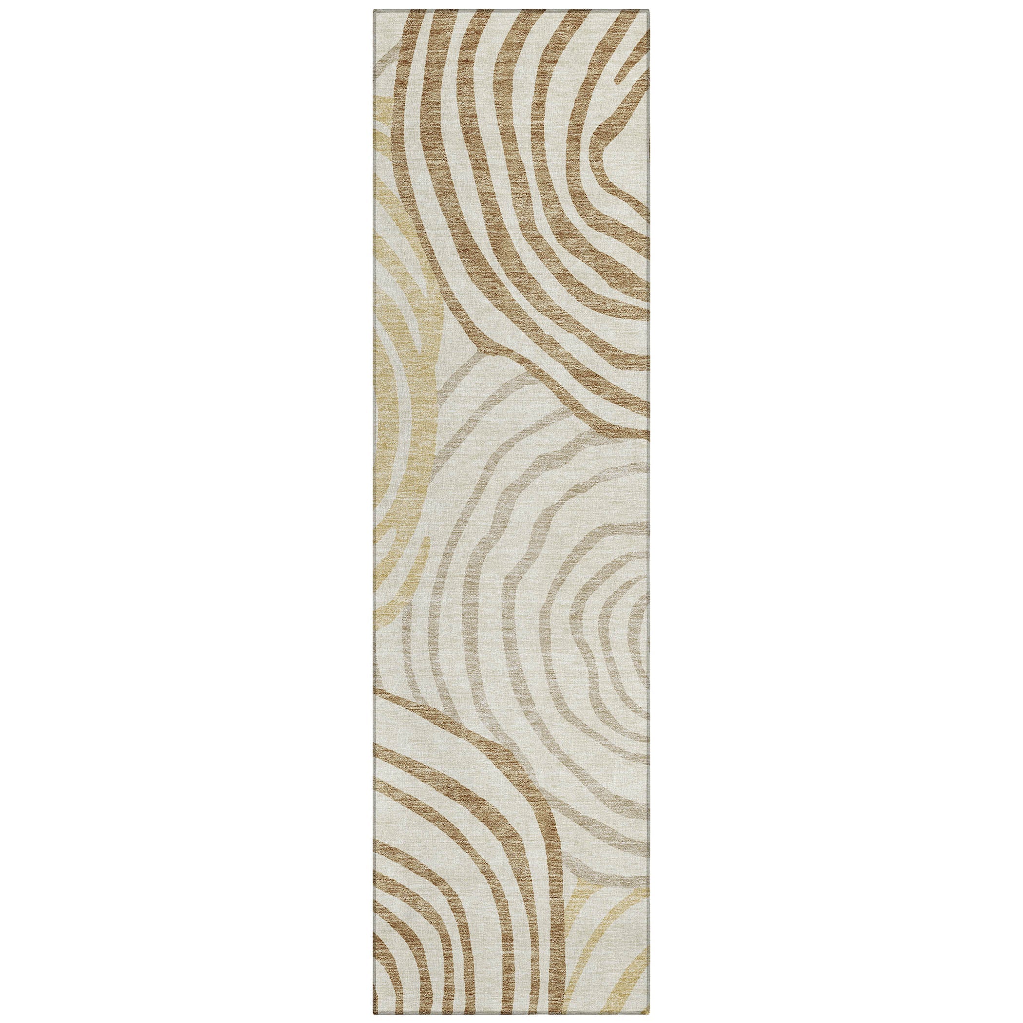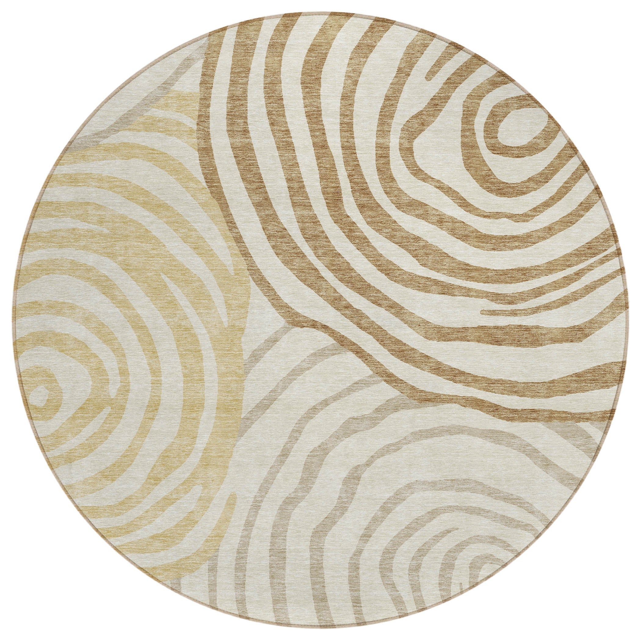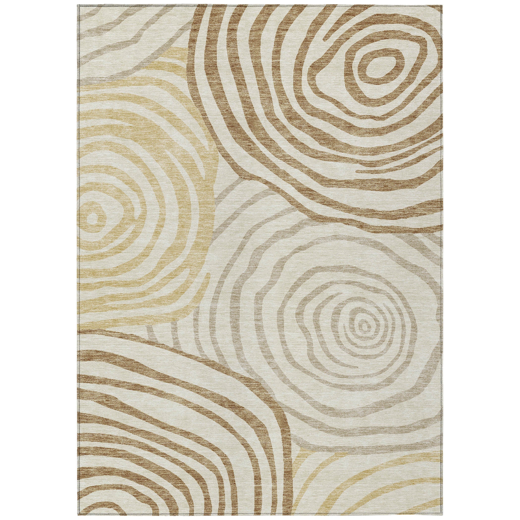 Chantille ACN765 Gold rug - a bold and beautiful addition to your home decor. Featuring large free-form circles that provide a contemporary twist on the traditional swirl design, this rug brings modern energy and artistic flair to any room. Its dynamic pattern is eye-catching and versatile, making it a perfect fit for various interior styles.