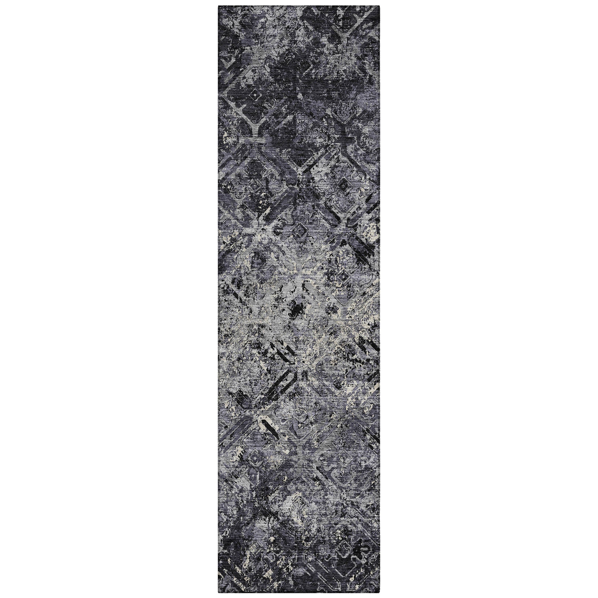 Chantille ACN768 Black rug, a stunning addition to any space. The intricate lattice diamond design effortlessly guides the eye towards a captivating center flow of colors. This rug blends classic elegance with modern appeal through its transitional diamond pattern. Ideal for various settings, it boasts UV stabilization for durability and longevity. Its ultra-thin construction allows for seamless integration into any room.