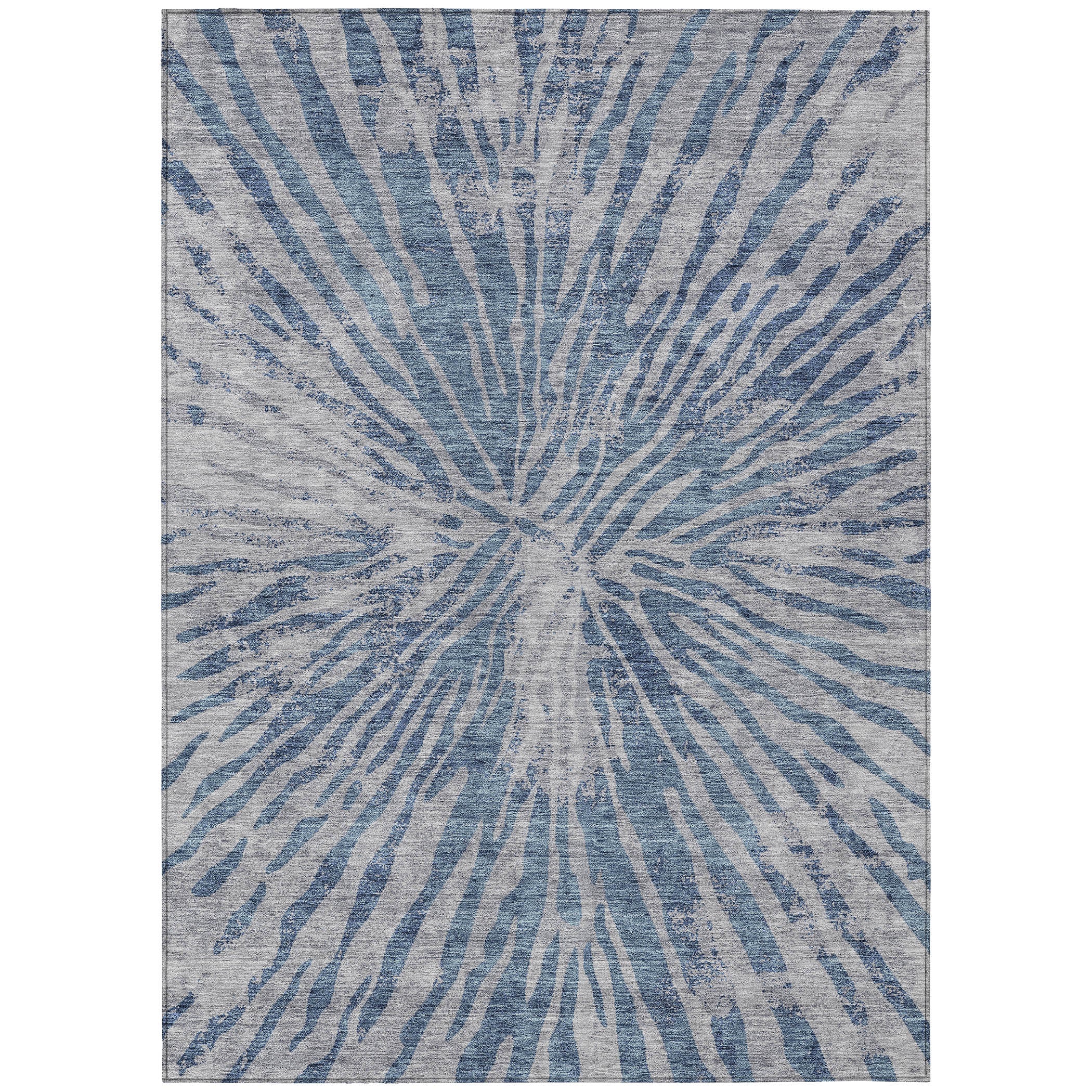 Transform your living space with the Chantille ACN818 Blue area rug. Featuring a stylish burst of lines emanating from the center, this rug effortlessly combines transitional and modern design elements. The intricate pattern adds a touch of sophistication while maintaining a welcoming atmosphere in your room.