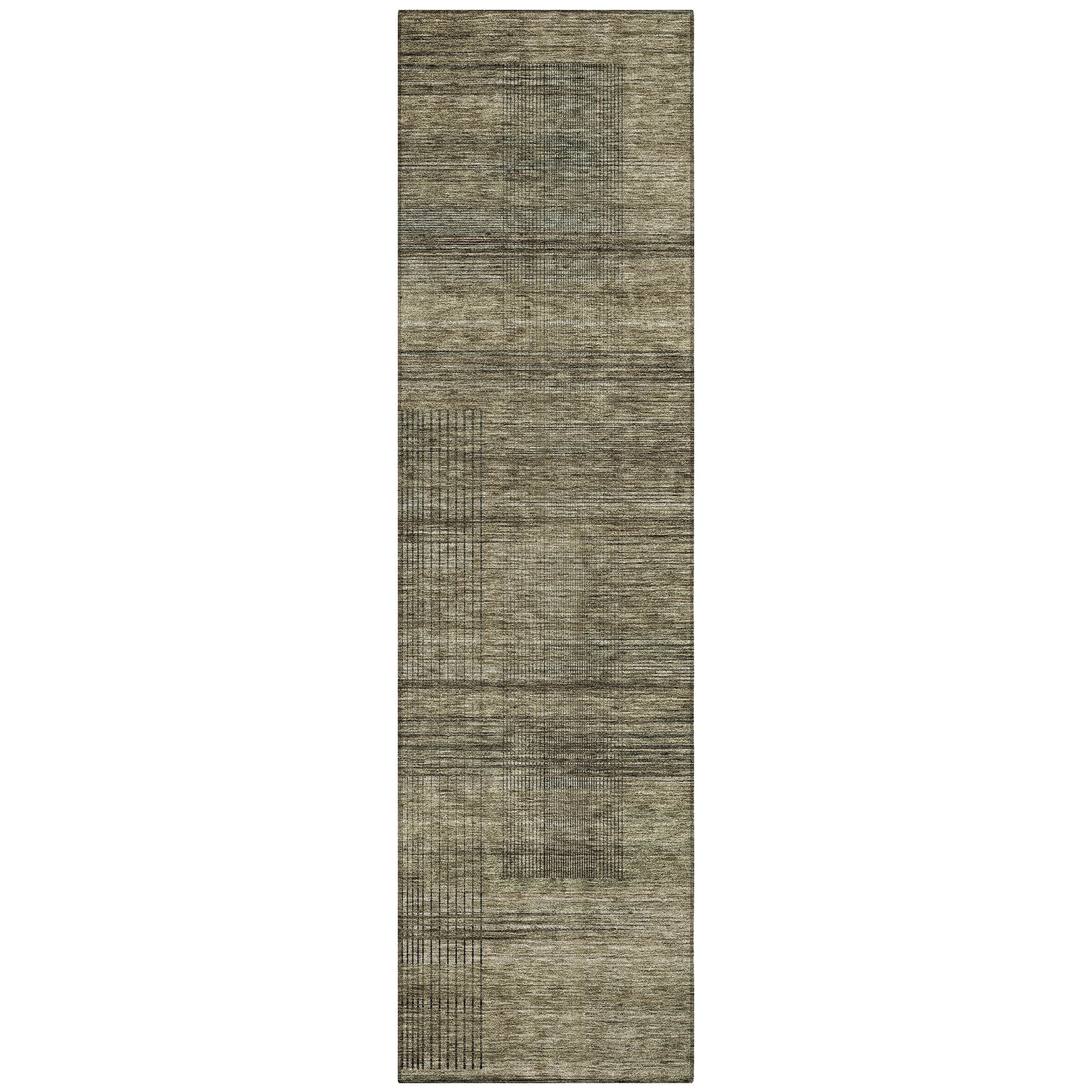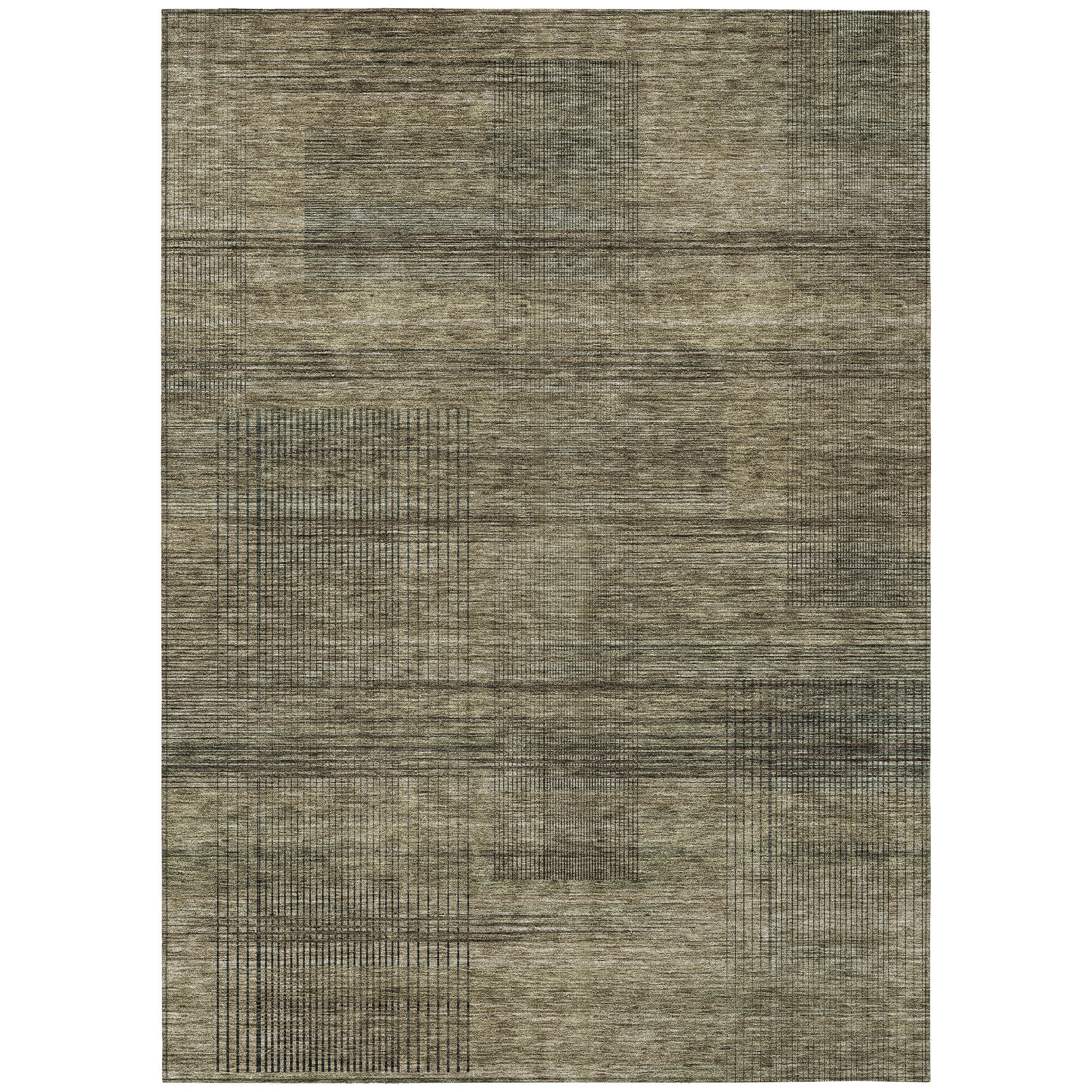 Chantille ACN820 Brown area rug, a stunning addition to any space. The intricate criss-cross lines seamlessly blend into a transitional design with modern stripes, creating a sophisticated and stylish look. Perfect for indoor or outdoor use, this rug is UV stabilized for long-lasting color vibrance and versatility.