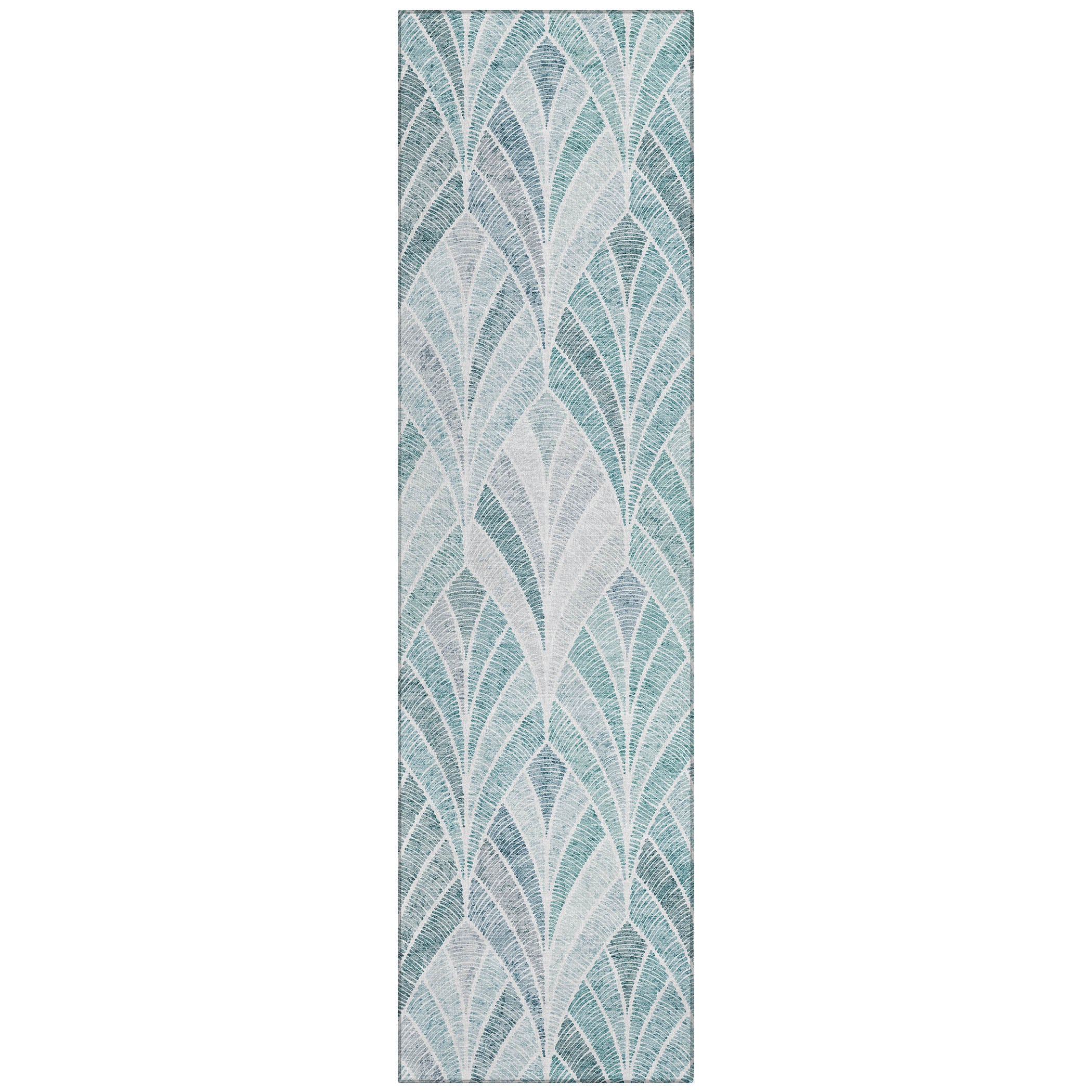 Introduce a modern touch of sophistication to your living space with the Chantille ACN851 Aqua area rug. Featuring shield-like shapes intricately separated by detailed lines, this rug boasts a distinctive transitional geometric pattern that will elevate the look of any room. Crafted from UV-stabilized material, it is suitable for various environments. Its ultra-thin build and machine-washable nature make it a convenient option for households, particularly those with pets and kids. Upgrade your home decor effortlessly with this eye-catching and practical rug that combines style and functionality seamlessly.