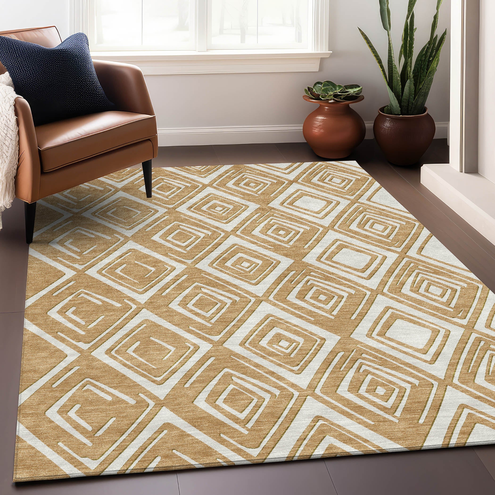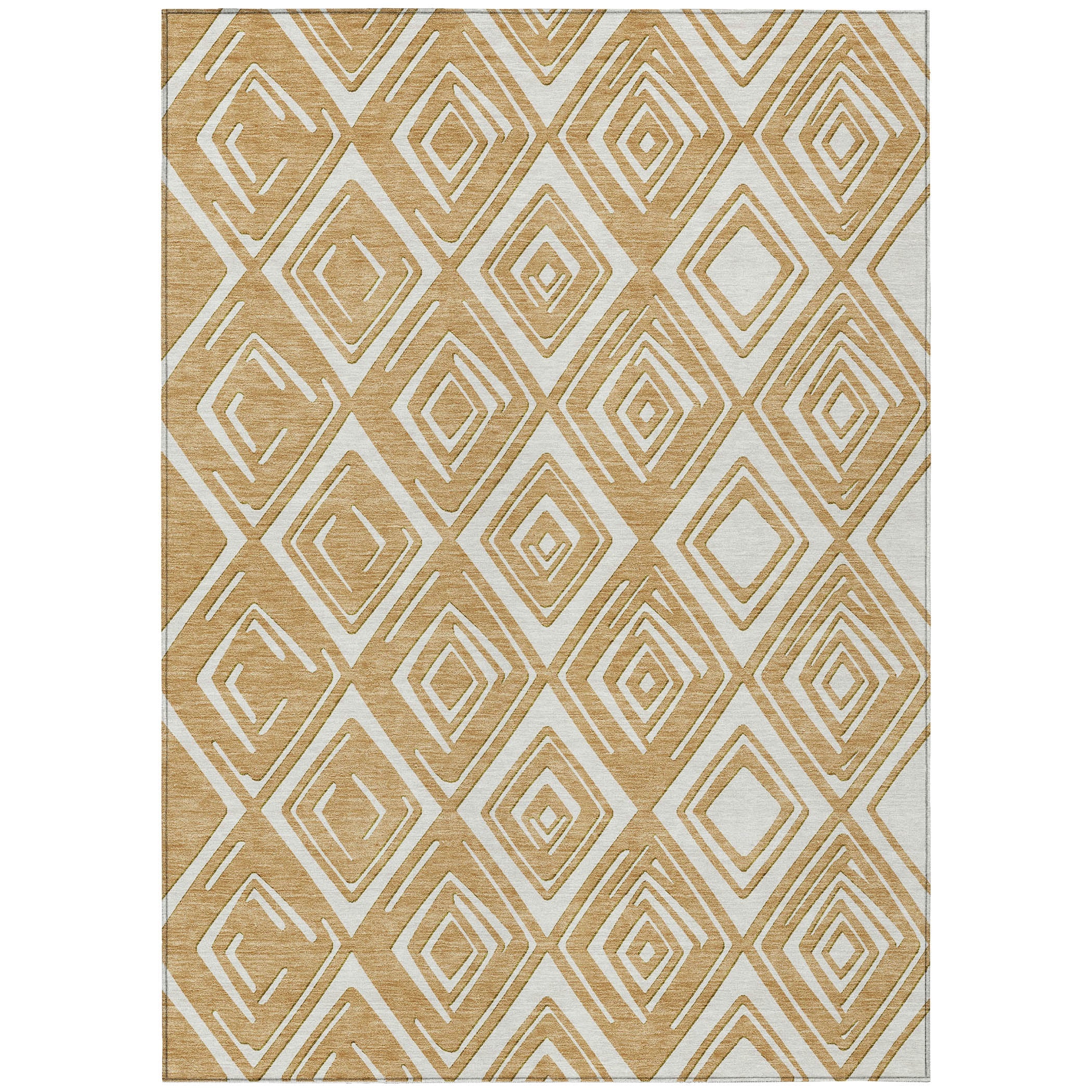 exquisite Chantille ACN862 Gold rug, designed to elevate any transitional decor with its stunning cascading diamond pattern. This unique design not only enhances the visual appeal of your space but also offers practical benefits. Crafted with UV stabilized materials, this rug is versatile for both indoor and outdoor use. Its ultra-thin construction makes it effortless to seamlessly blend into any room setting. Enjoy the convenience of easy maintenance as this rug is machine-washable, perfect for busy households with pets and children. Elevate your home decor with the Chantille ACN862 Gold rug today!