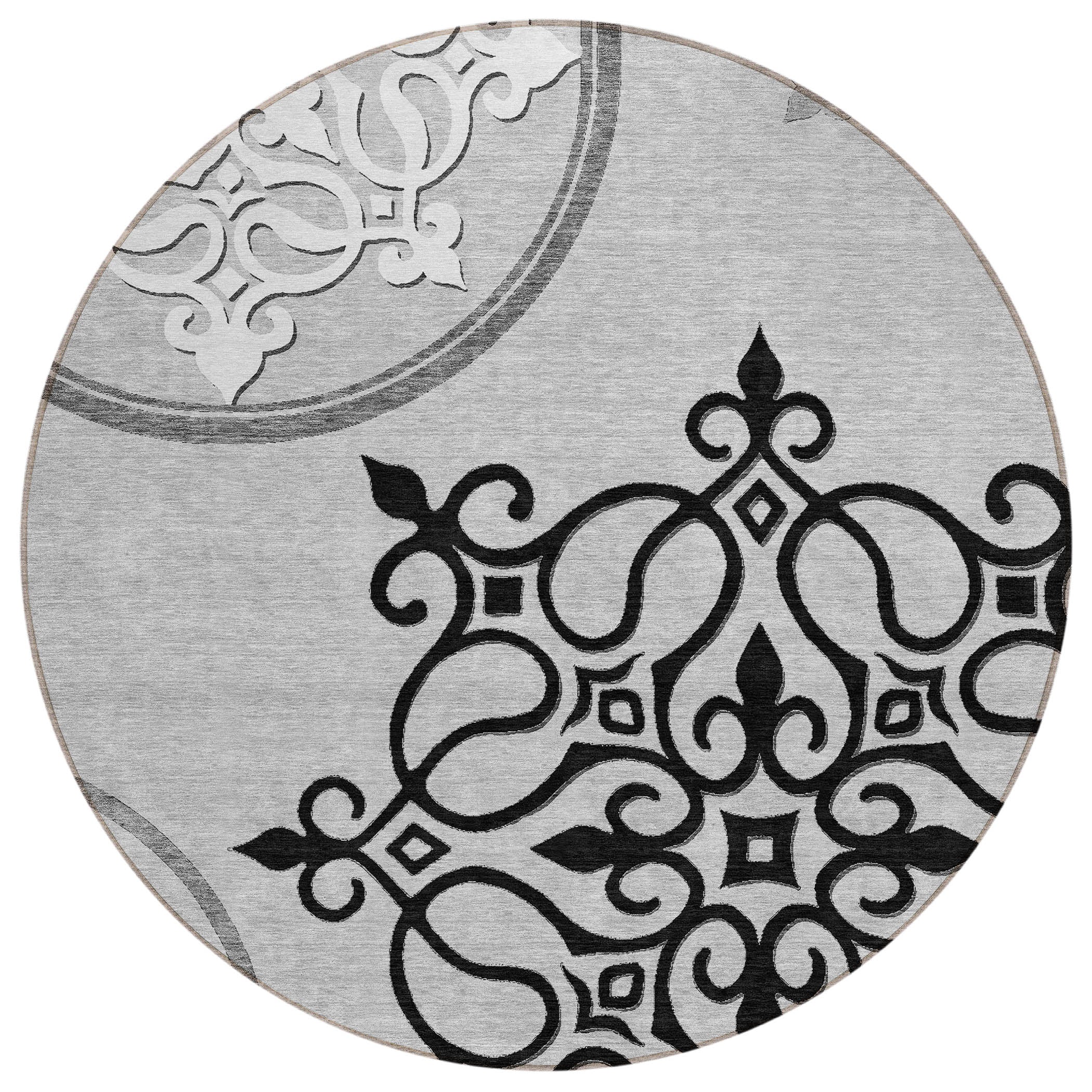 Introduce a touch of sophistication to your living space with the Chantille ACN874 Gray area rug. This versatile piece seamlessly combines traditional wrought iron scroll medallions with a modern design aesthetic, creating a unique statement for your home decor.