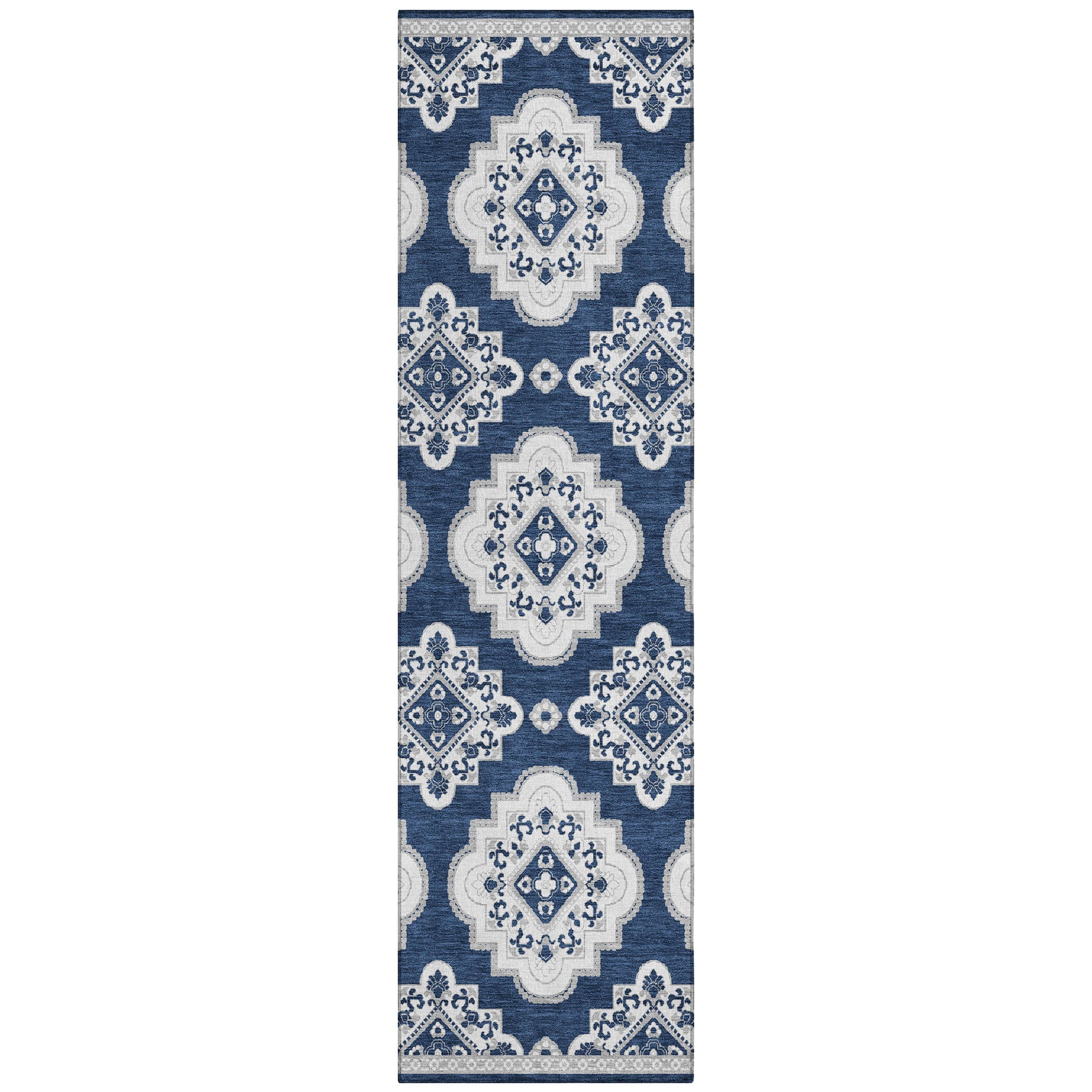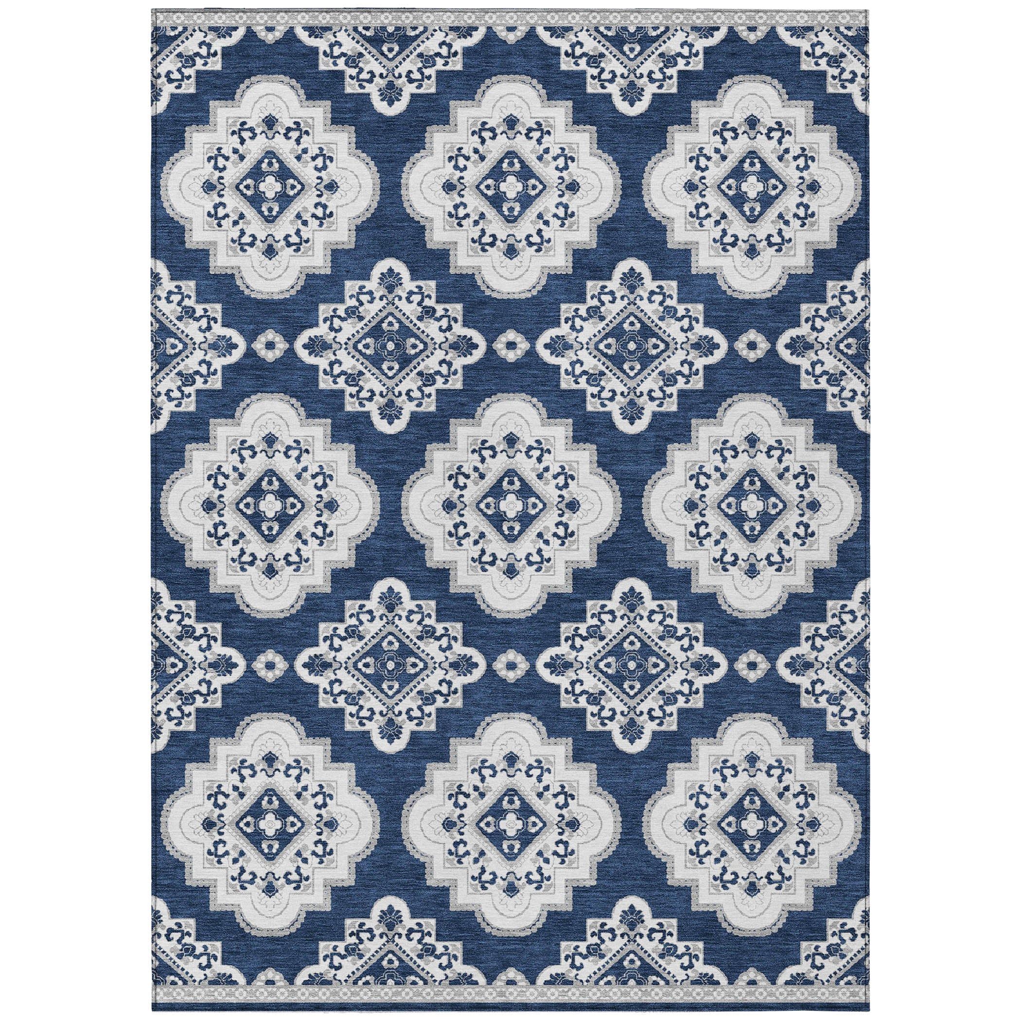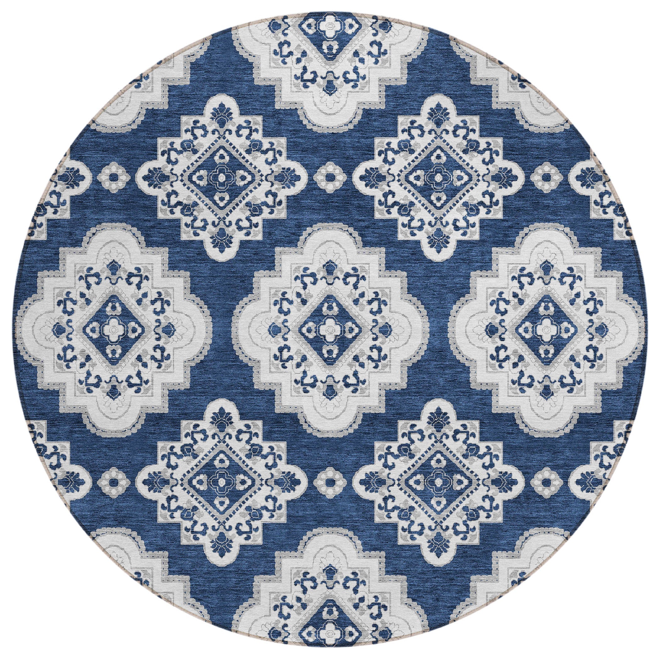 Elevate the ambiance of your living space with the Chantille ACN878 Navy area rug. Its classic design showcases formal medallions with delicate scalloped edges, offering a touch of timeless sophistication. The transitional style effortlessly blends into various decor themes, be it traditional or modern. Crafted with UV stabilization, this rug is suitable for indoor and outdoor use, adding versatility to your decor options. Its ultra-thin construction makes it lightweight and simple to move around, while the machine-washable feature ensures easy maintenance for a family-friendly environment. Experience luxury and practicality combined in one stylish rug for your home.