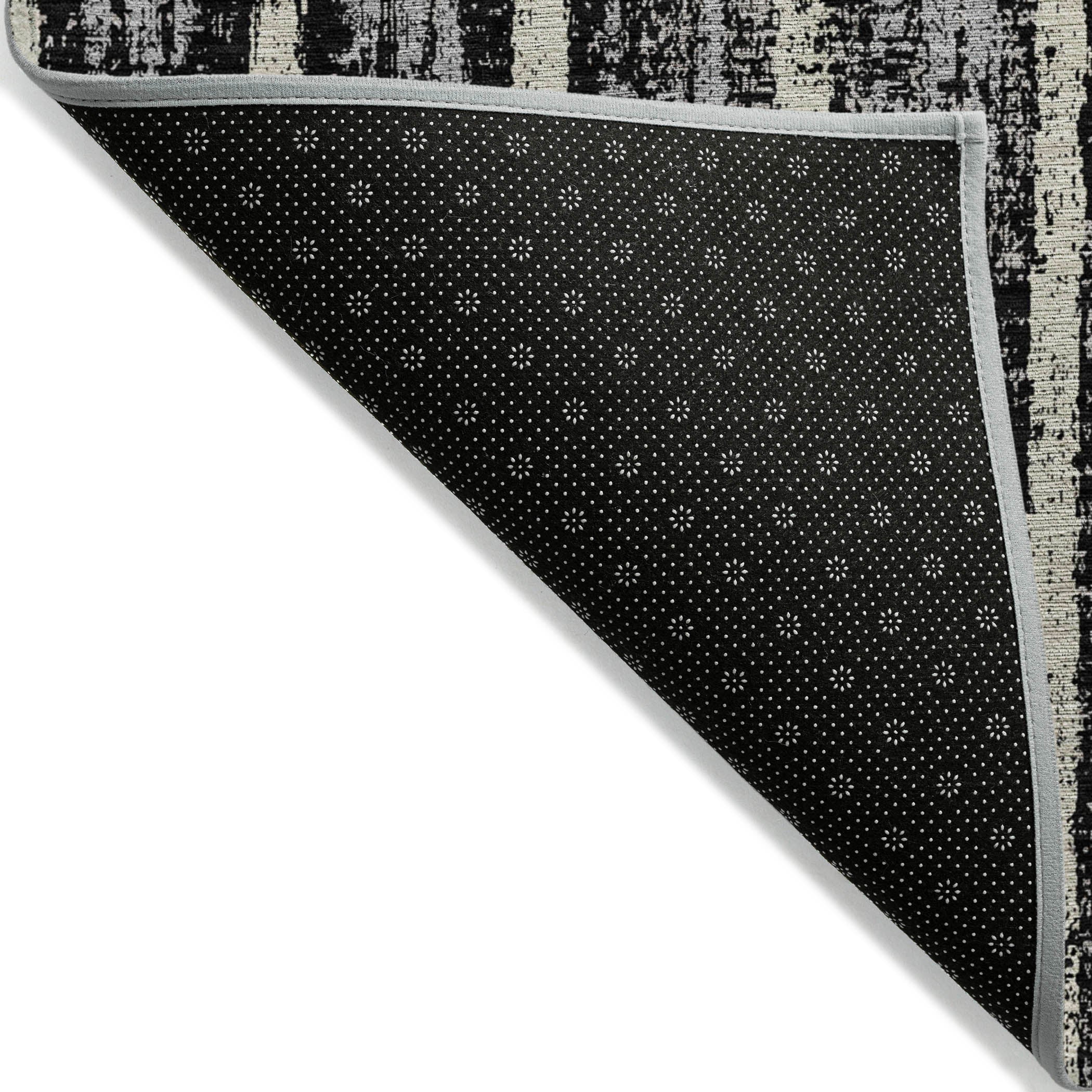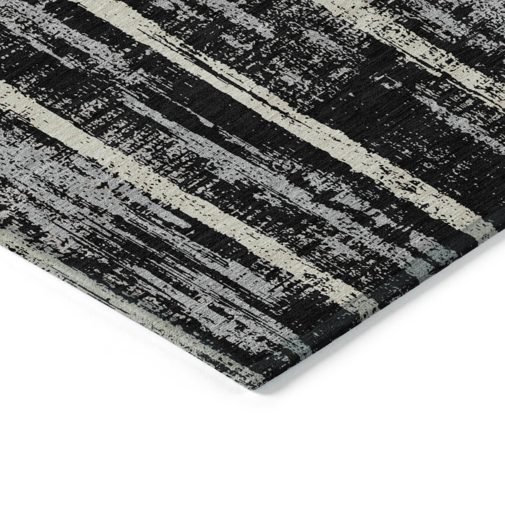 Elevate your room with the Chantille ACN892 Black area rug, a stunning piece that seamlessly blends vertical stripes with fragmented elements for an alluring and dynamic look. The transitional design of the stripes imbues this rug with a timeless quality that complements any interior decor style effortlessly.