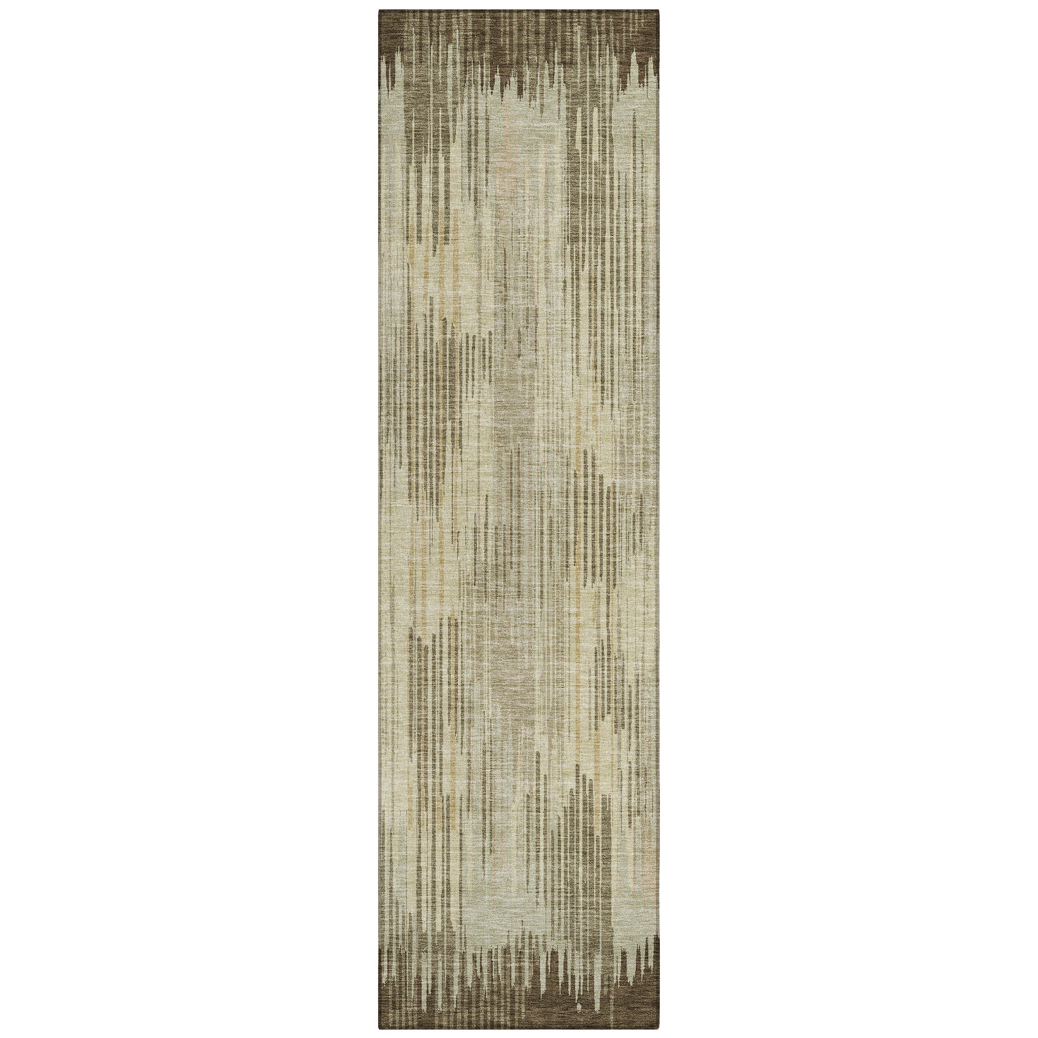 Chantille ACN893 Brown area rug, a versatile piece that will elevate any room with its unique design. Featuring vertical stripes and textural contrasts, this rug offers a sophisticated and dynamic look that complements any decor style seamlessly. Not just a style statement, this rug is also UV stabilized for use both indoors and outdoors.