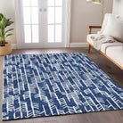 Chantille ACN906 Navy area rug, a perfect blend of comfort and style for your home. The unique pattern of broken small arrows arranged in a vertical formation adds a touch of transitional charm to any room. Not only is this arrow-themed rug a statement piece, but it's also UV stabilized to prevent fading in sunny areas. Its ultra-thin design allows it to easily slide under furniture, and cleaning is a breeze with its machine-washable fabric.