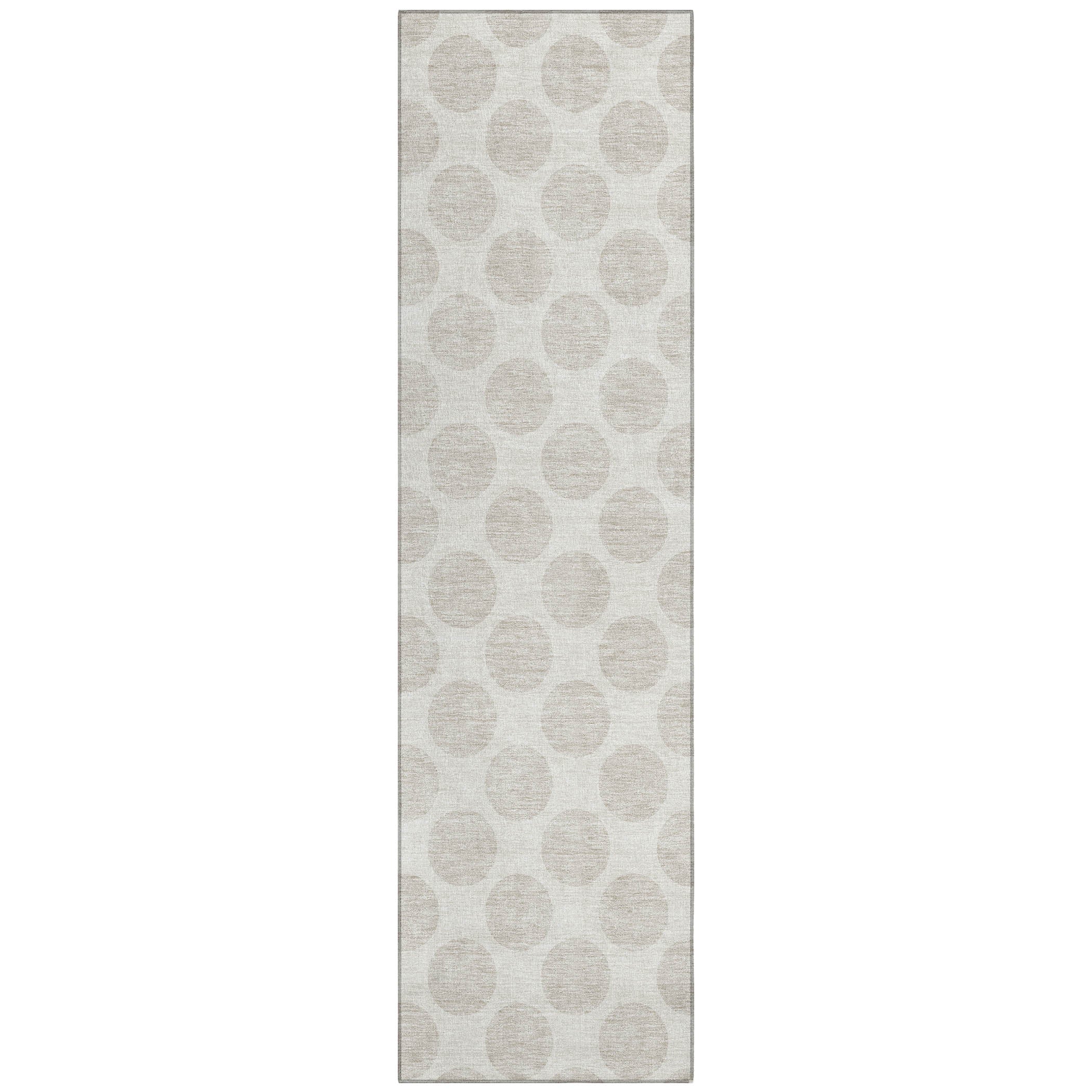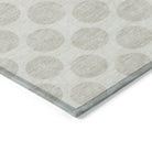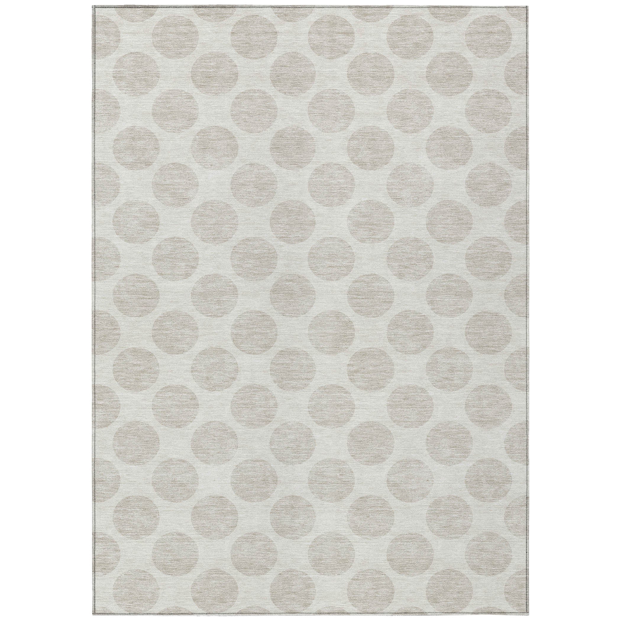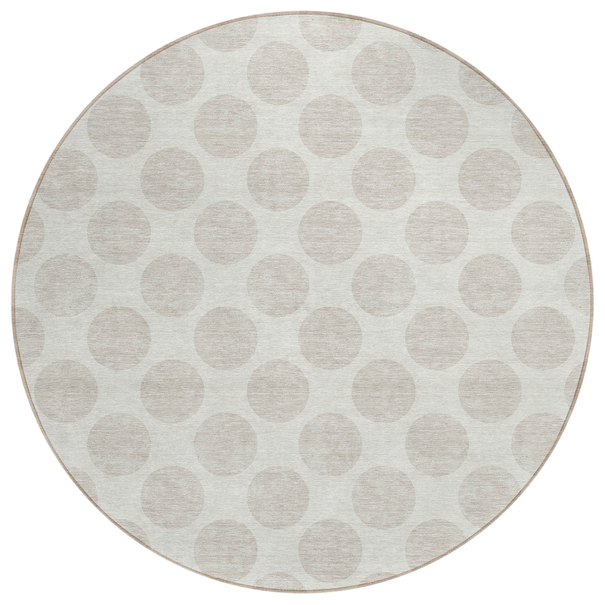 elegant Chantille ACN921 Ivory area rug, a stylish addition to any space. This rug features medium-sized circles forming a timeless polka dot design, blending fun and sophistication seamlessly. Its transitional look makes it versatile for various settings, while being UV stabilized allows for use both indoors and outdoors. The ultra-thin construction fits effortlessly in any room, and its machine-washable feature ensures easy maintenance – perfect for households with children and pets.
