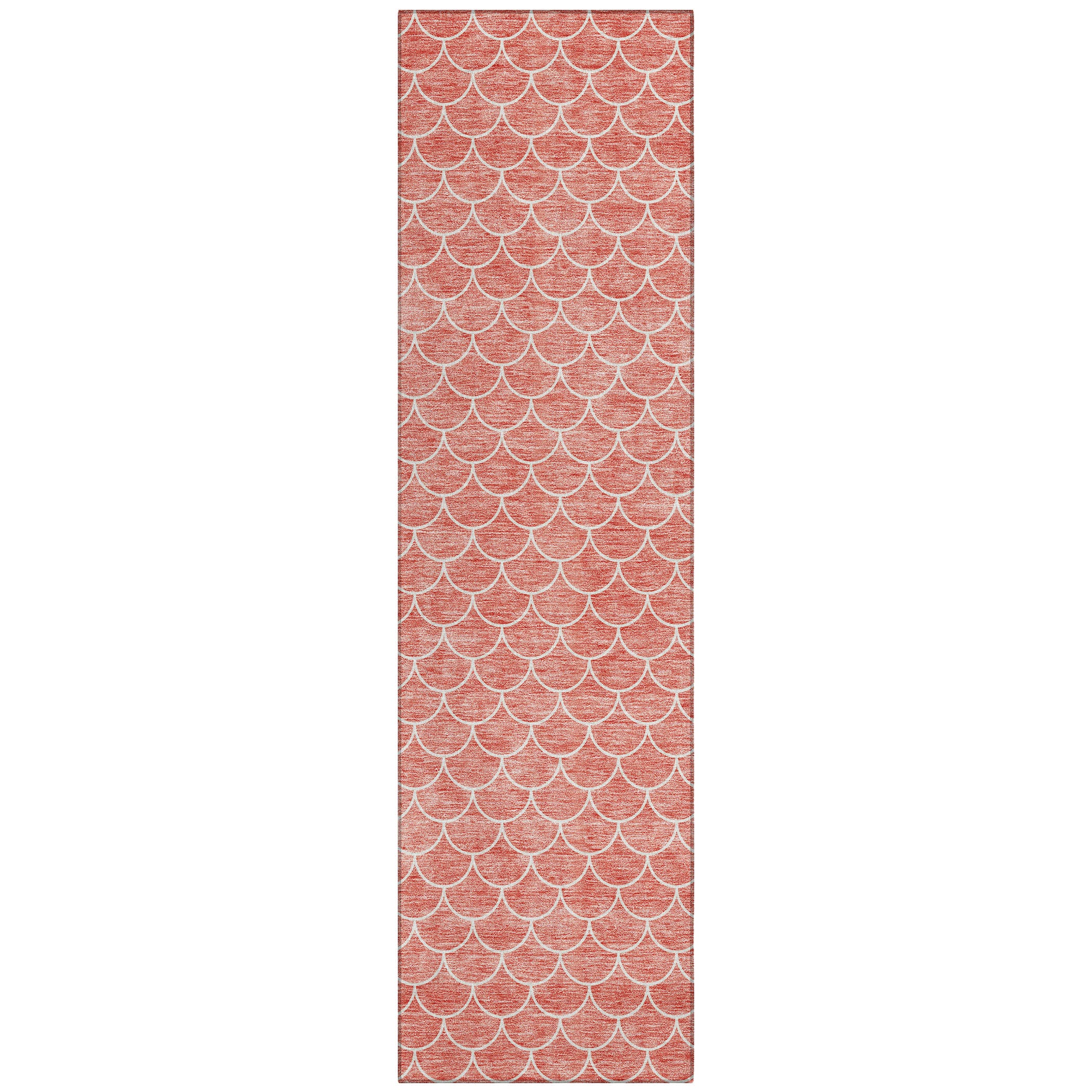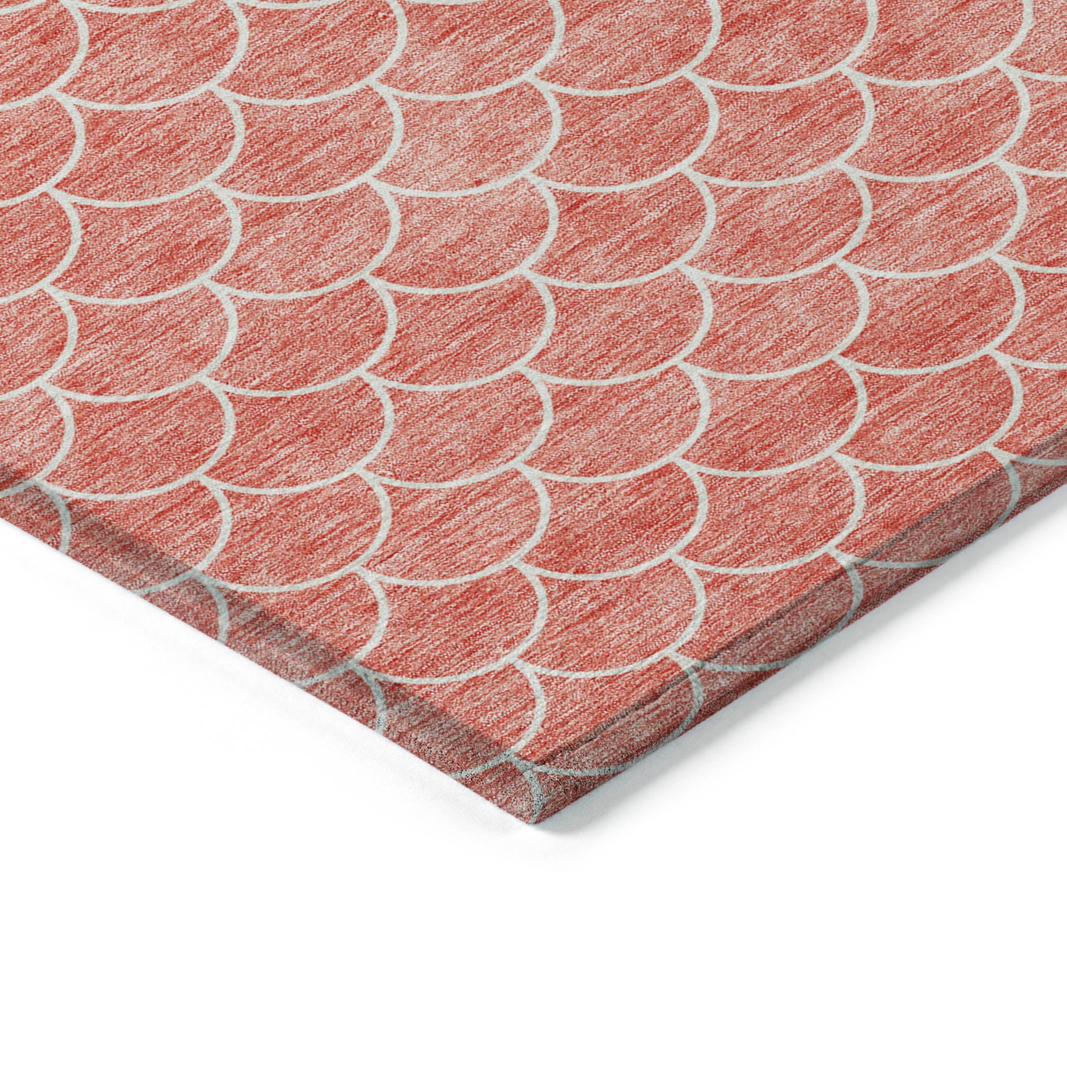 Elevate your home's style with the Chantille ACN933 Salmon area rug. This sophisticated rug boasts a small scale-like pattern, creating a chic transitional geometric design that adds a touch of elegance to any room. Designed for both indoor and outdoor use, this rug is UV stabilized to maintain its beauty in any environment.