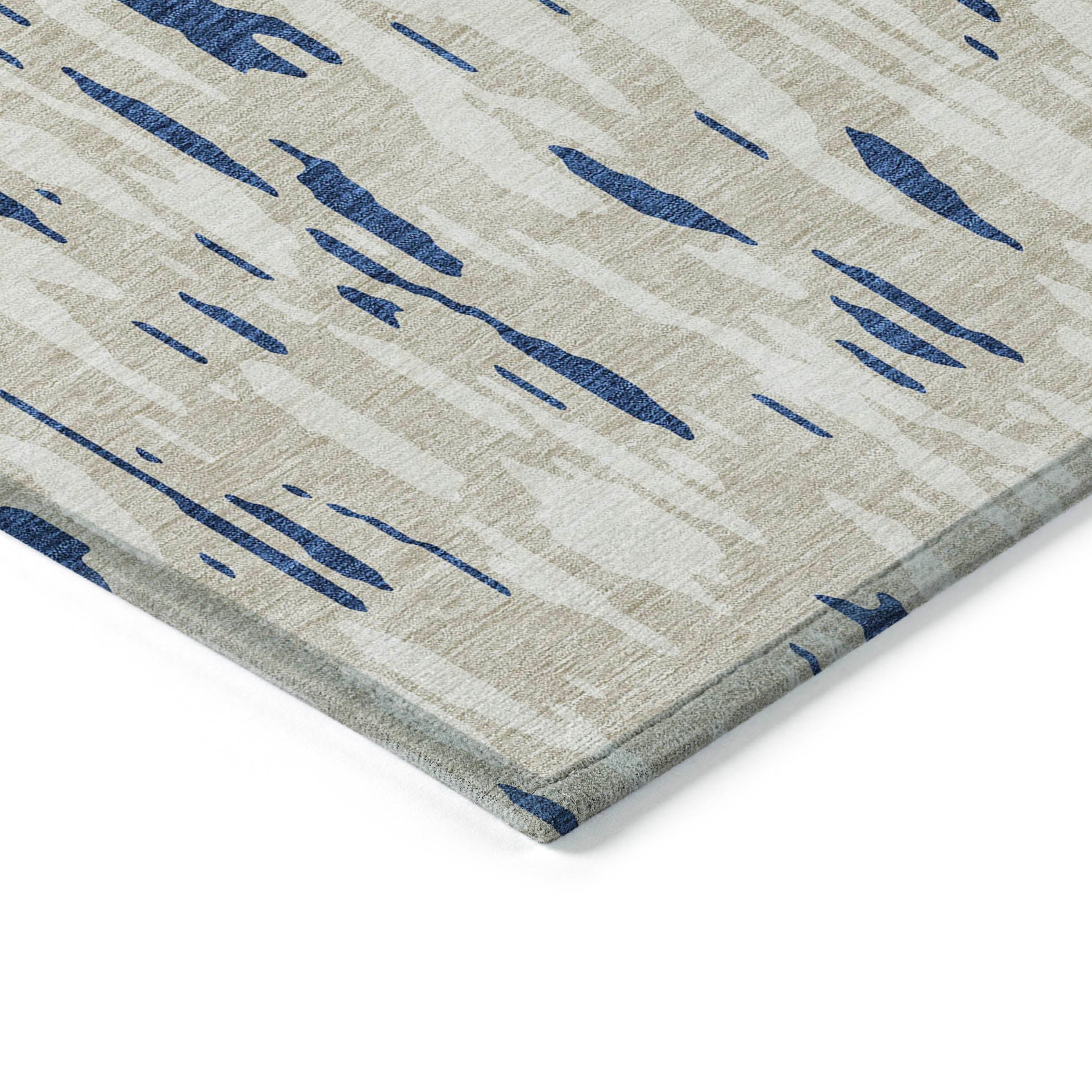 Elevate the ambiance of your living space with the Chantille ACN945 Navy area rug. This transitional rug boasts vertical drip-like motifs that create a captivating abstract effect, bringing a touch of modern artistry to your floors.