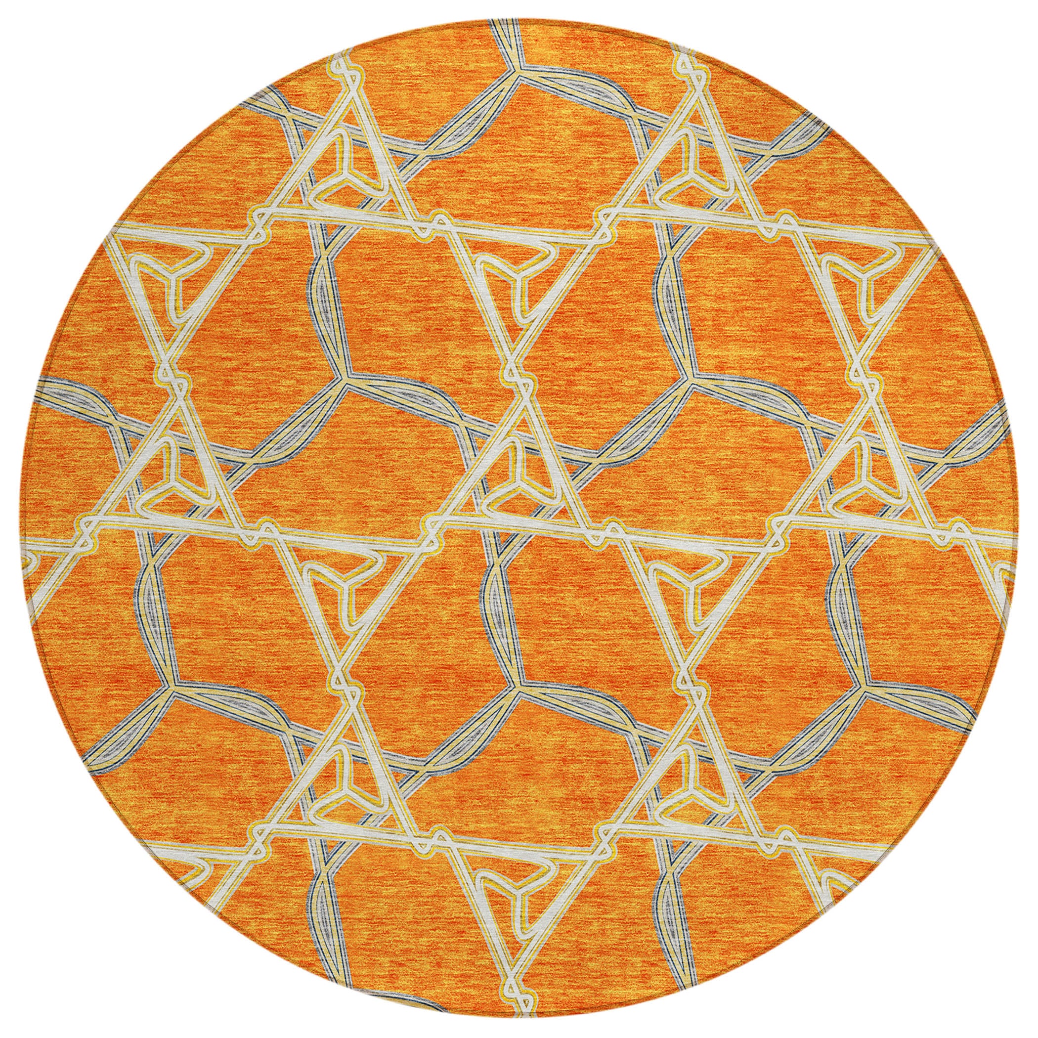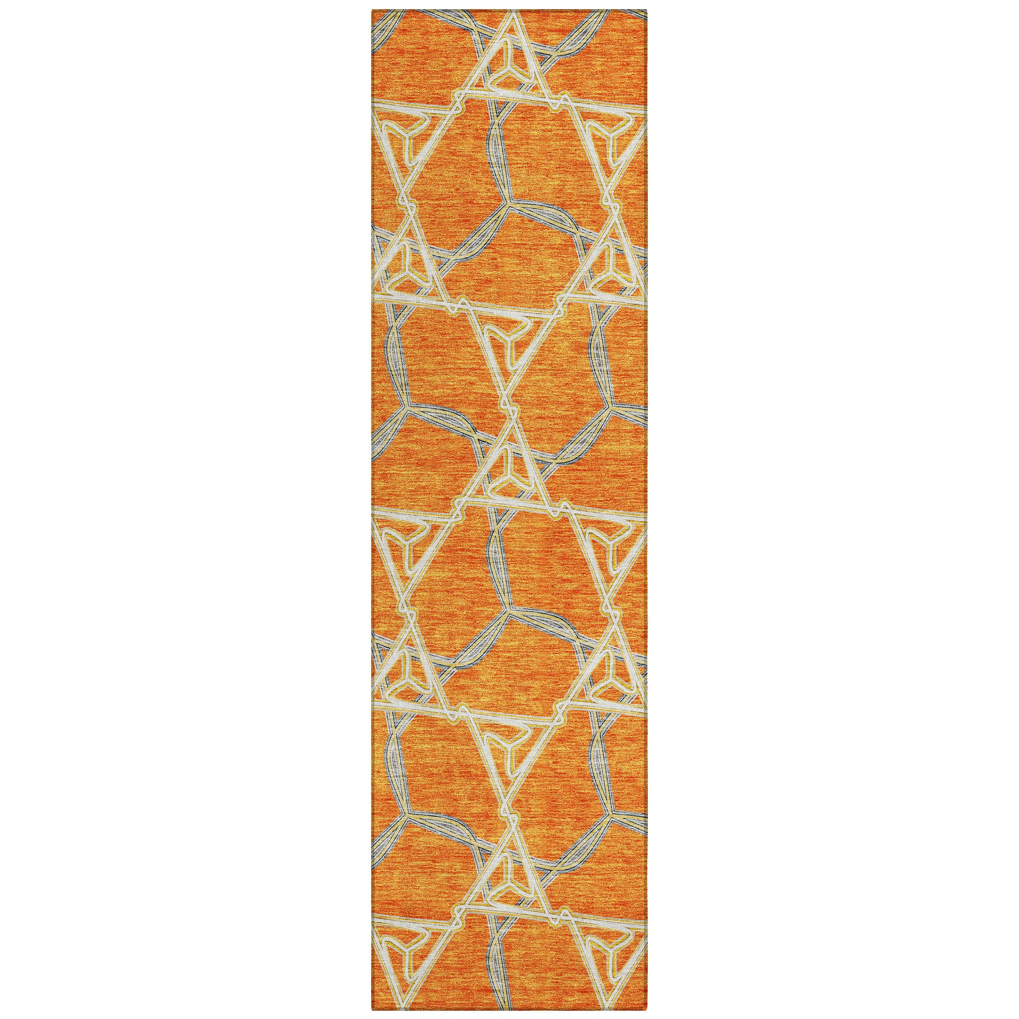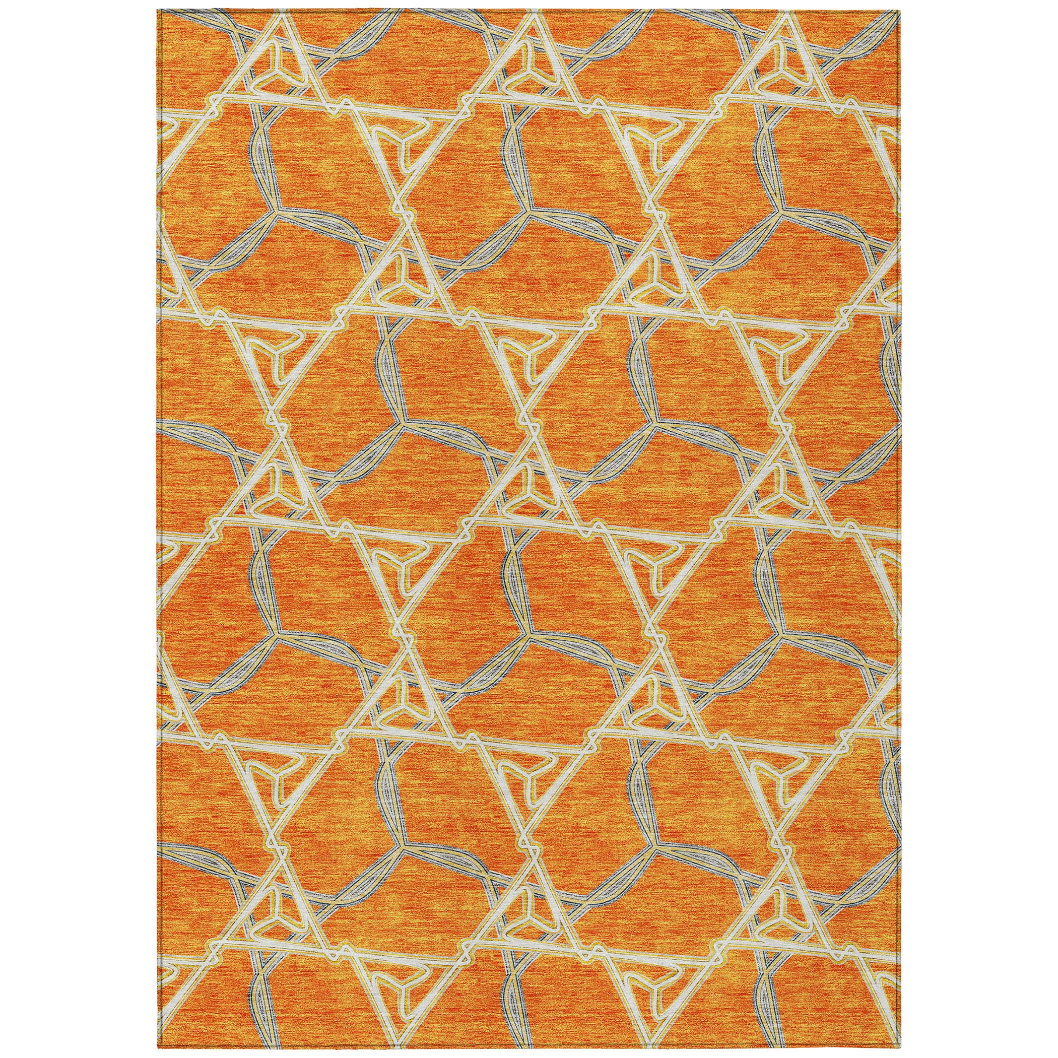 Chantille ACN959 Orange area rug, a perfect blend of style and durability. With its chainlike lines, this rug brings depth and complexity to any space, infusing a touch of transitional elegance with a geometric twist. The design is not only visually appealing but also practical, featuring UV stabilization for versatile use indoors or outdoors. Its ultra-thin construction makes it easy to place in any room effortlessly.